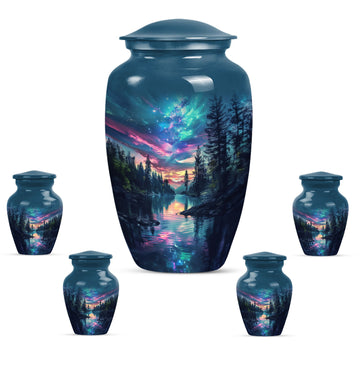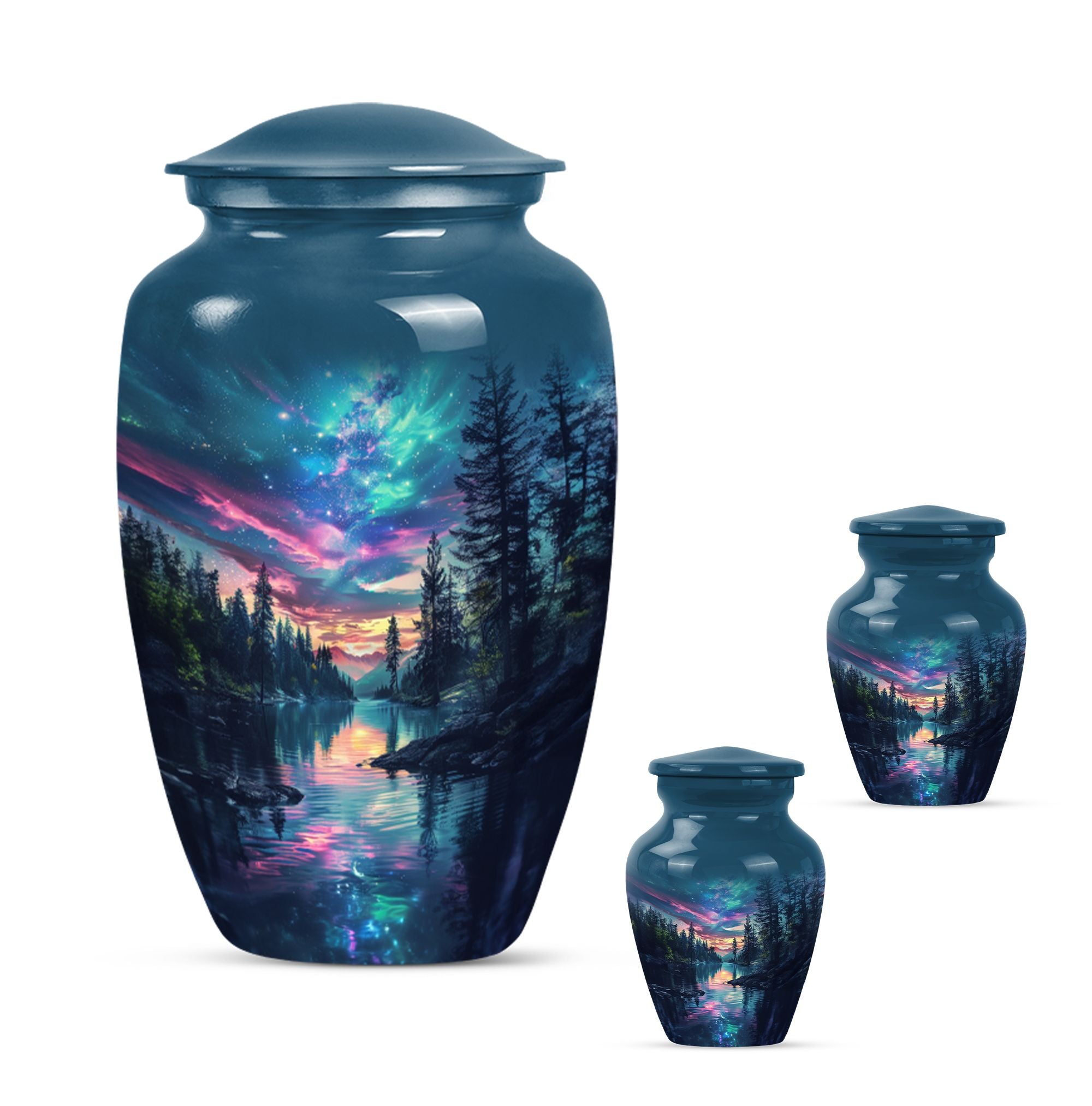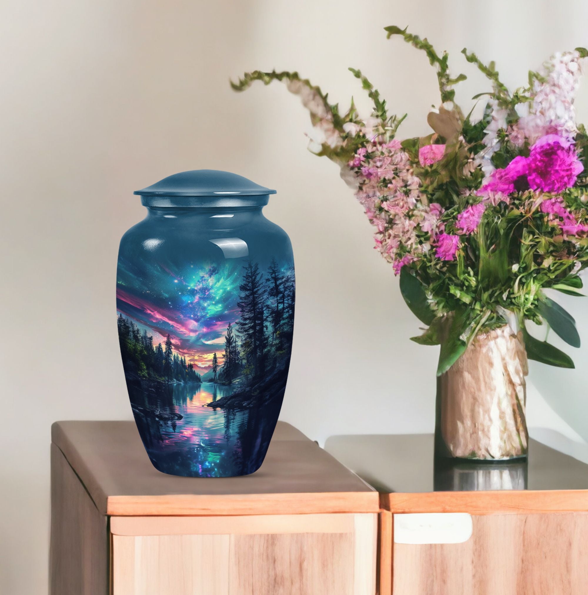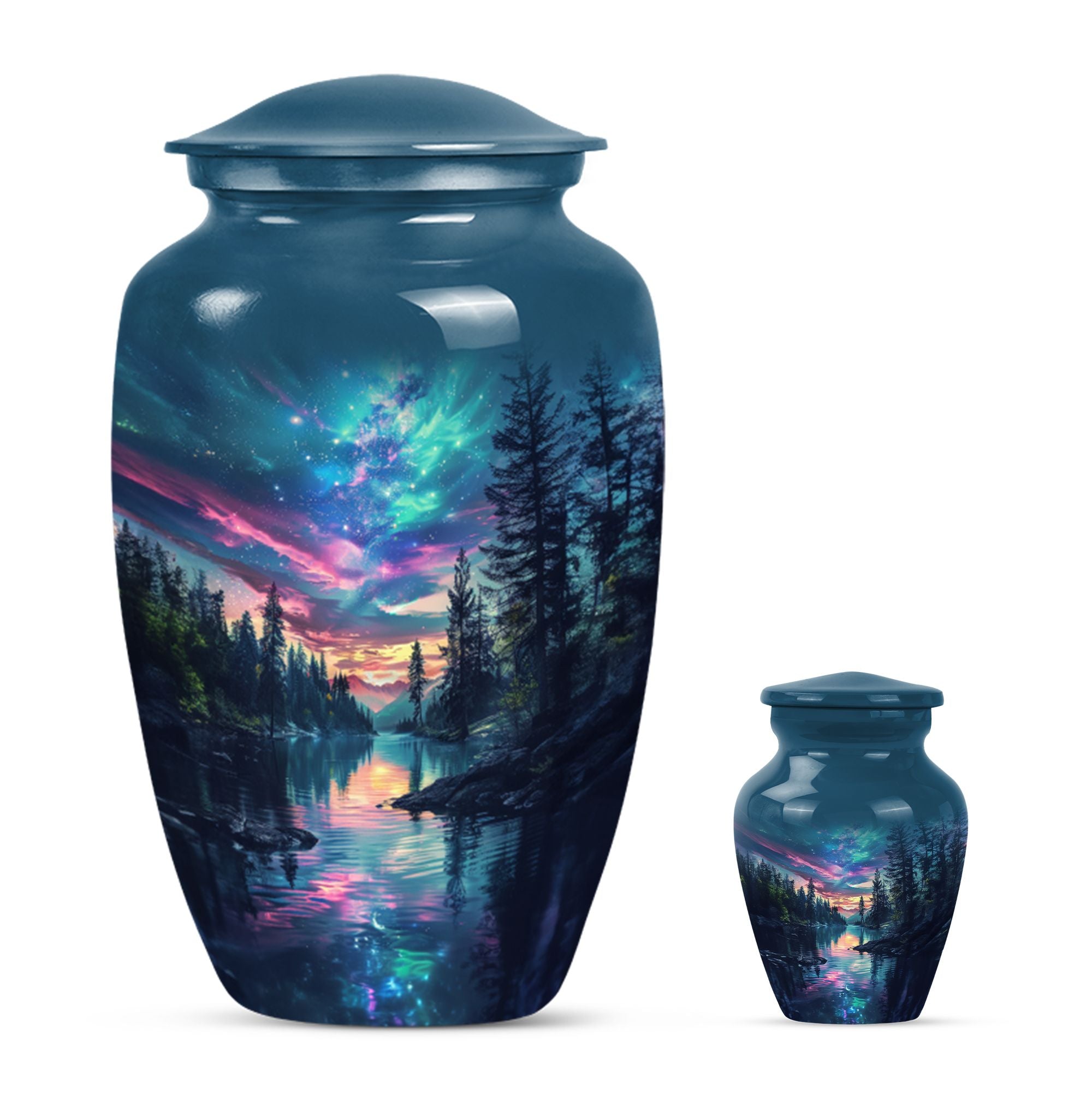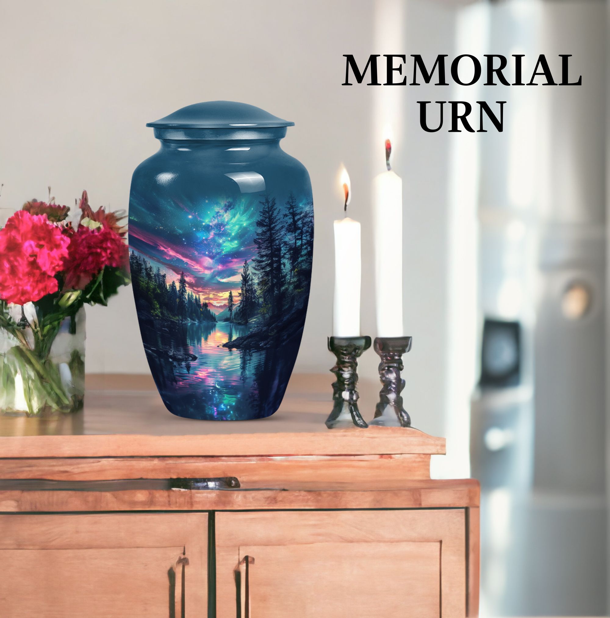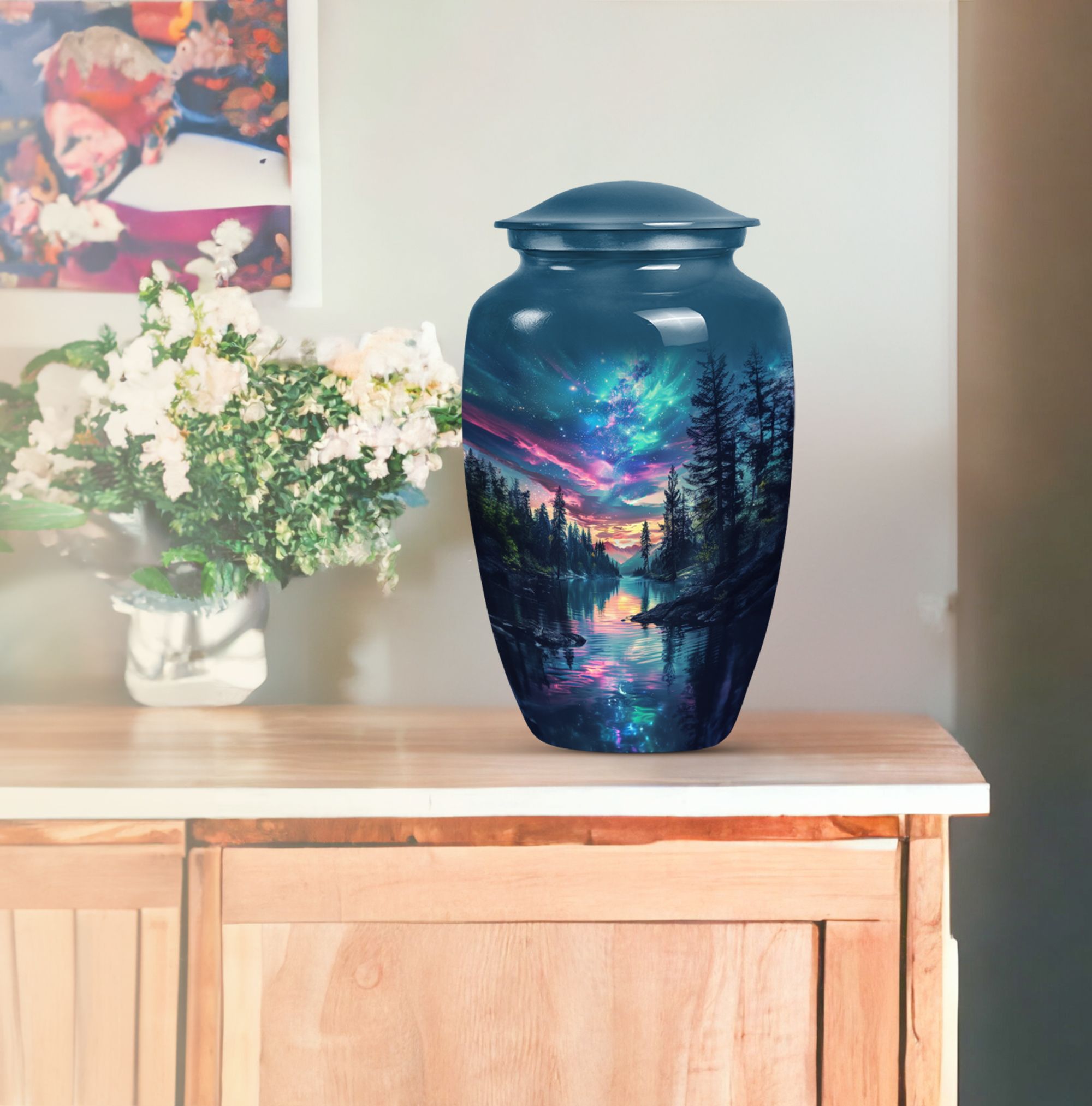 The Aurora Borealis Forest Cremation Urn is a stunning memorial, inspired by the beauty of the northern lights and the serenity of nature. This aurora borealis urn reflects peace, remembrance, and eternal love, making it a meaningful choice for families honoring their loved ones.