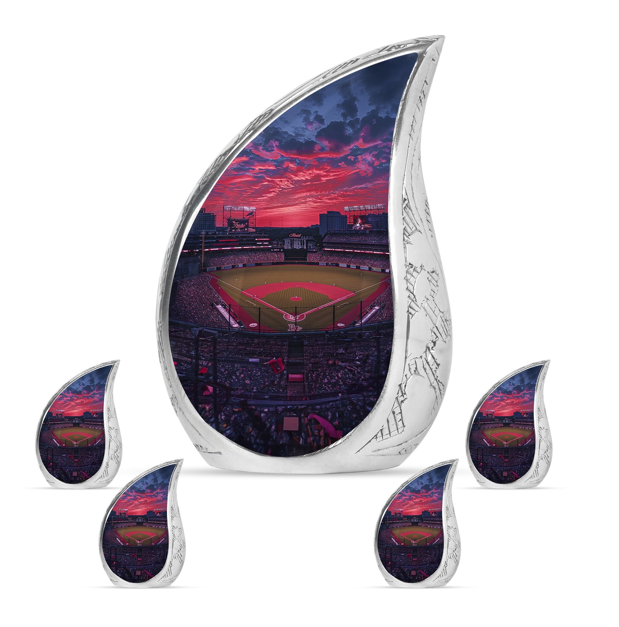 Crafted from high-quality aluminium, this urn combines durability with a detailed baseball theme. Its secure screw-top lid ensures peace of mind, while its compact size makes it ideal among keepsake urns for families who wish to share memories. Perfect for use as mini urns for human ashes, this piece also serves beautifully as a decorative memorial in the home.