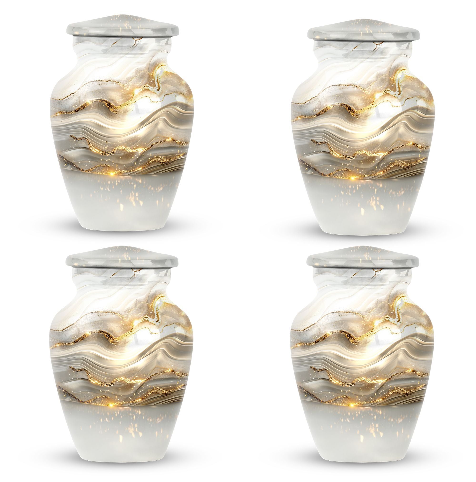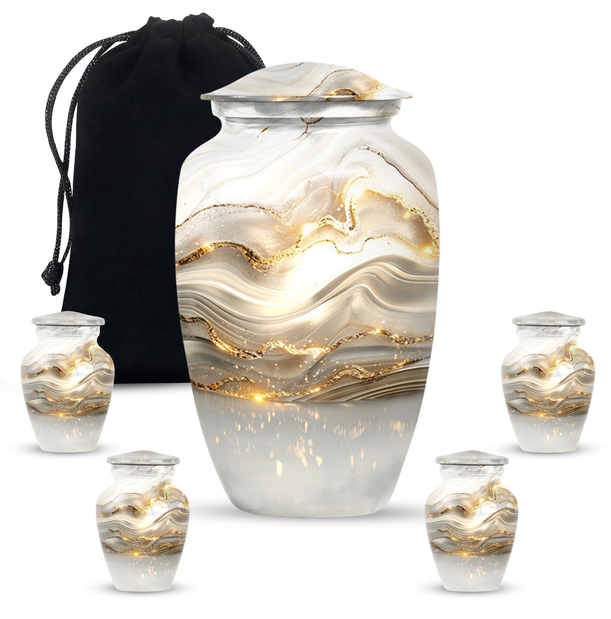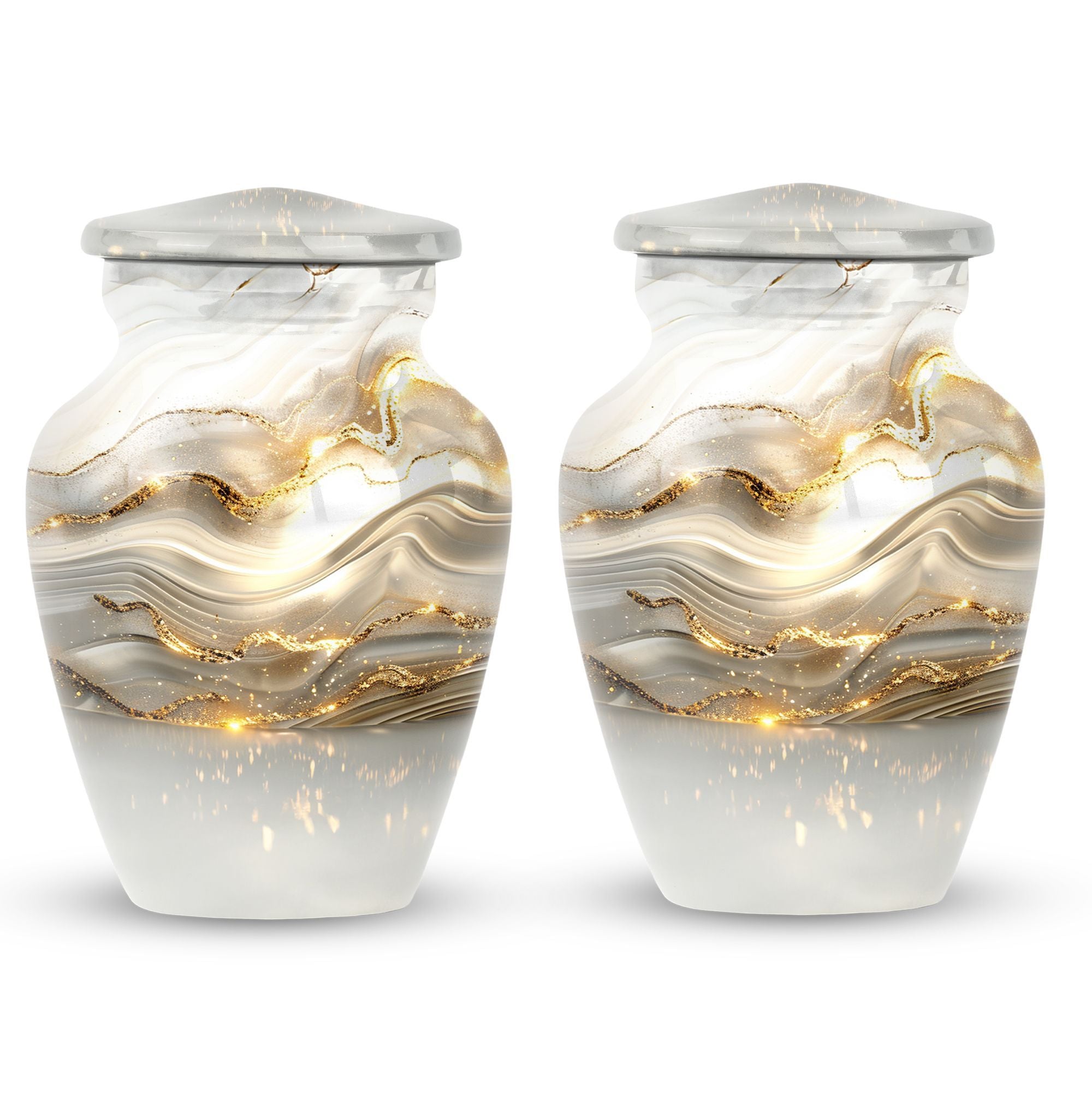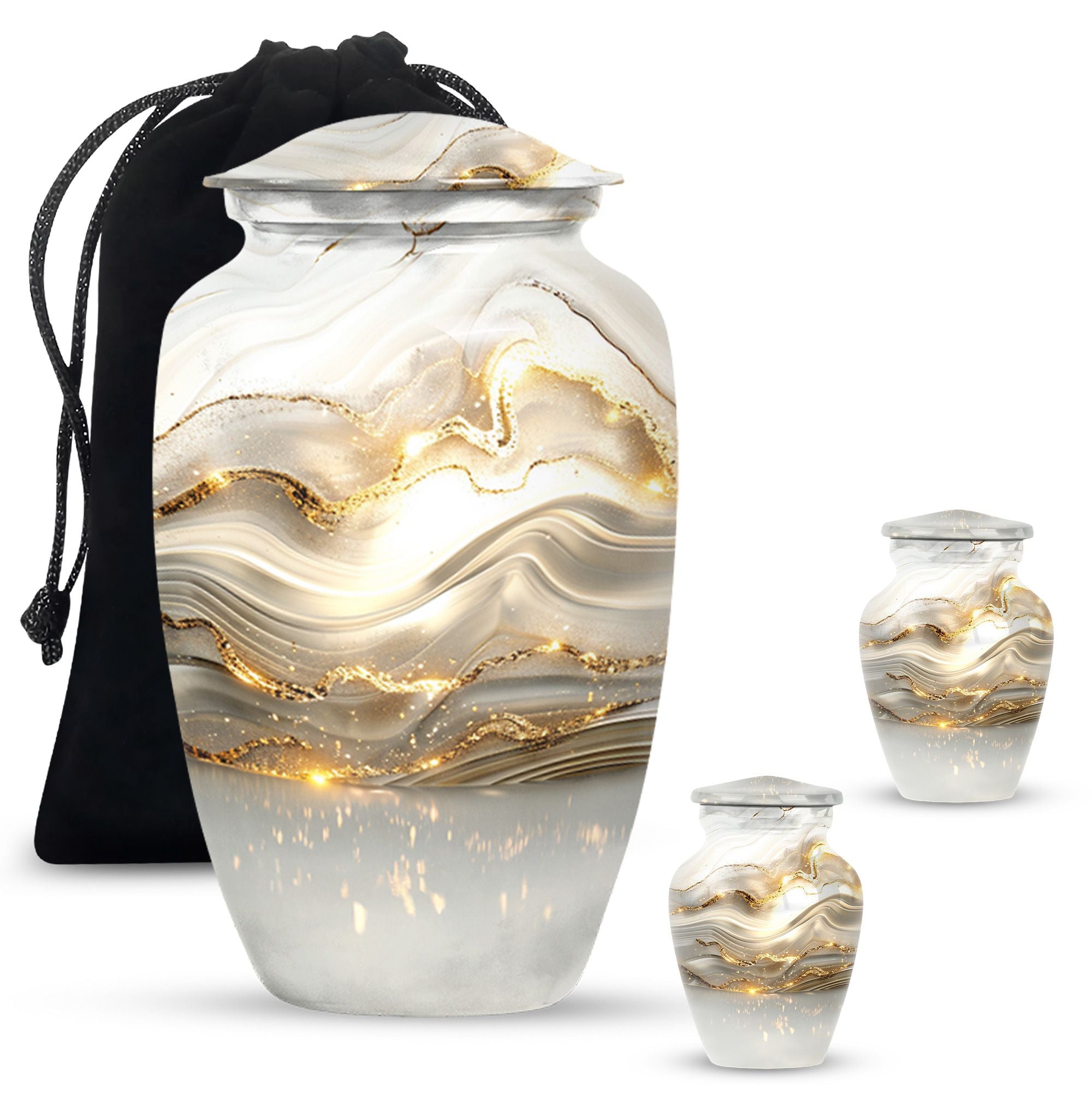 Discover the peace that comes with a beautifully curated resting place for your loved ones, with the 'Colourful Swirl Urn.' Crafted with exquisite care, this large aluminium 'cremation urn' is not just a vessel, but an expression of enduring love and respect. It stands at 10 inches, a substantial size demonstrating its purpose to house adult human ashes, with a capacity of up to 200 cubic inches. With an abstract theme that sets a tranquil tone, it weighs a solid 3.3 pounds, a testament to its robust build. The package includes a soft velvet pouch, perfect for storing the precious contents. Personalize it further by engraving names onto the body of the urn, a meaningful touch that enhances its sentimental value. Ideal for a 'funeral urn' or as a memorial tribute, this 'Colourful Swirl Urn' brings comfort during times of sorrow and pays homage to the departed. Its uniqueness lies not in its design, but in its ability to intertwine the practical needs of a 'cremation urn' with the emotional need for a tangible memory. Perfect for a mother, with specific keywords such as 'urns for mom, funeral urns for ashes'.