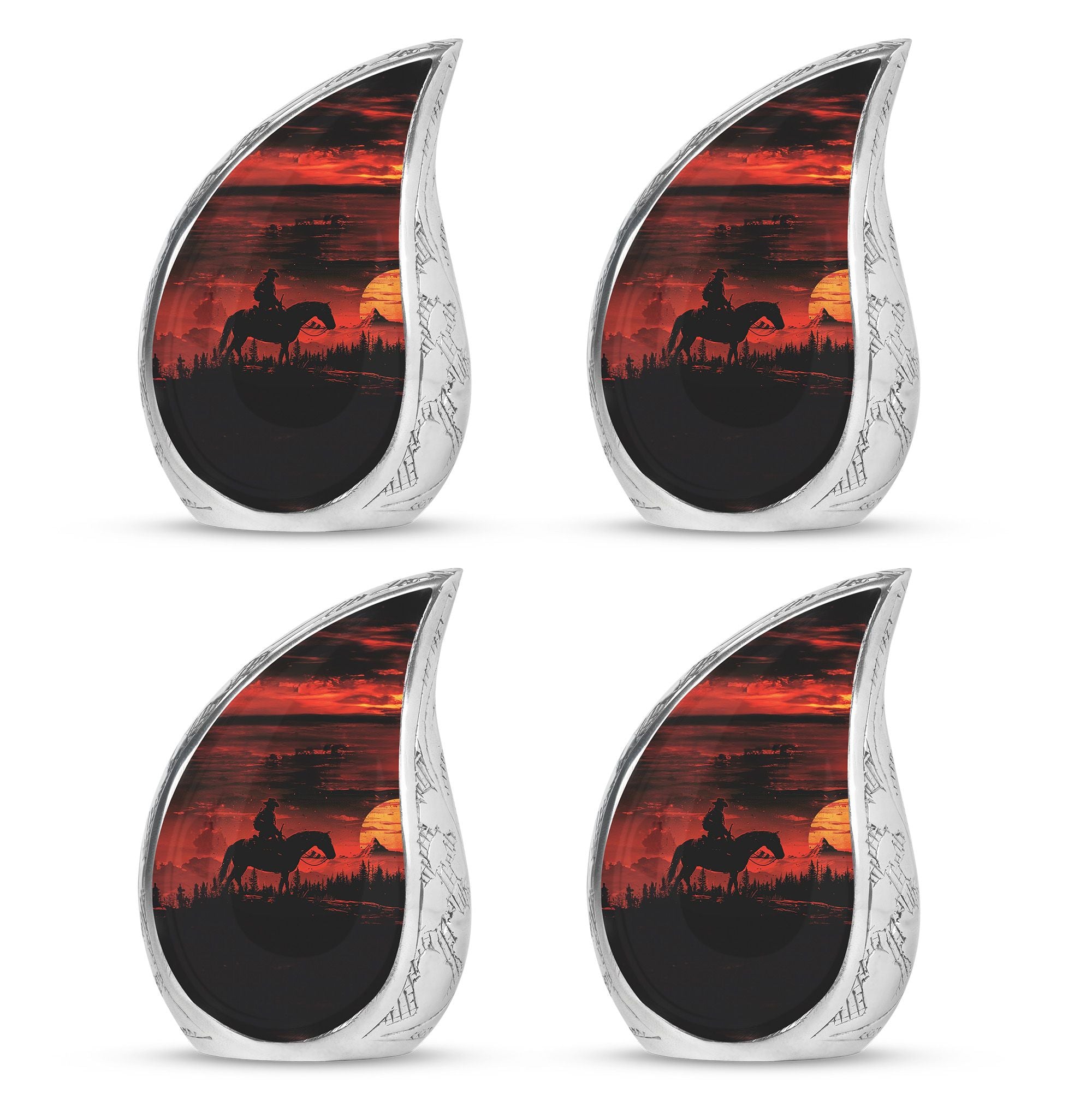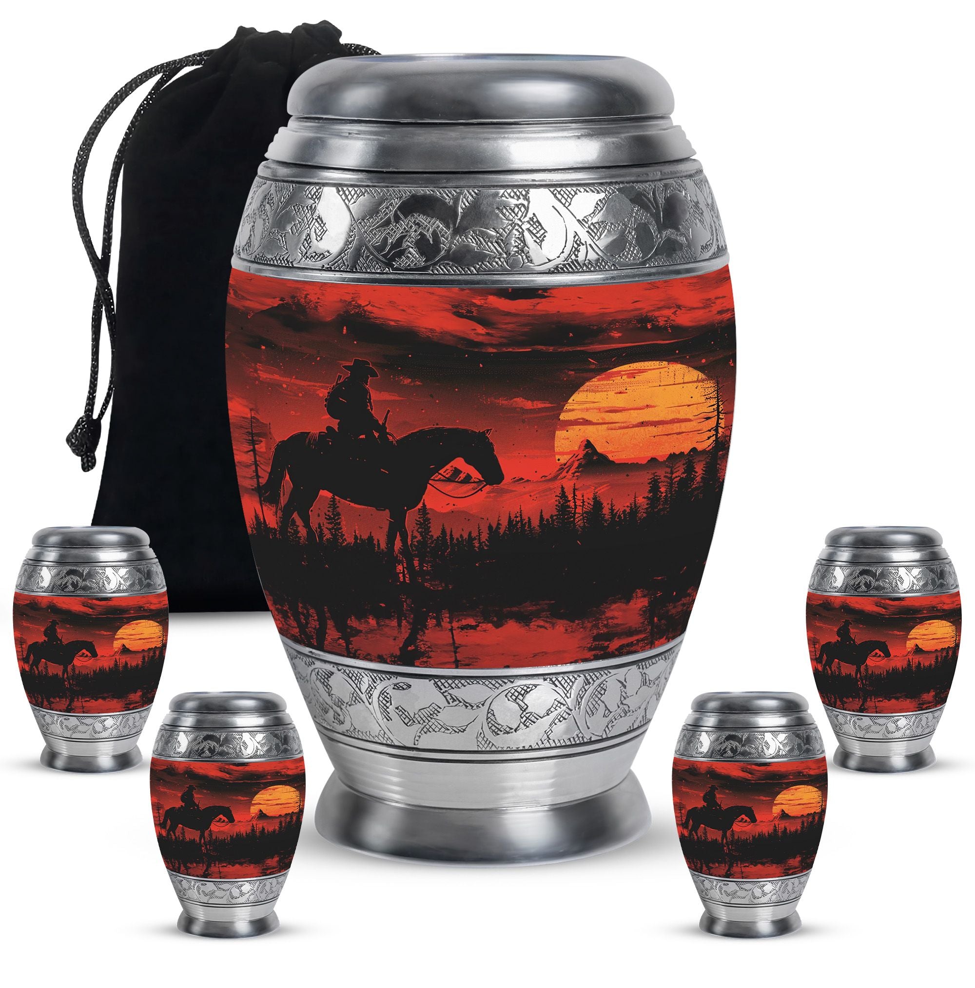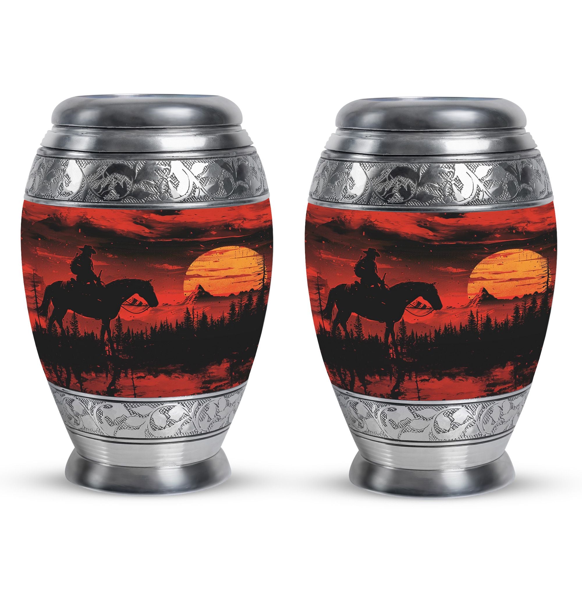Crafted from high-quality aluminum, this urn features a rustic cowboy design that reflects resilience and spirit. Its compact size makes it suitable as urns for ashes adult male small or as cremation urns for human ashes adult female. The secure screw-top lid ensures ashes are safely contained, while the detailed finish allows it to serve both as a functional urn and a touching piece of memorial décor. Families also choose it as human urns for ashes adult male or urn for adult female ashes, making it a versatile option for honoring loved ones.