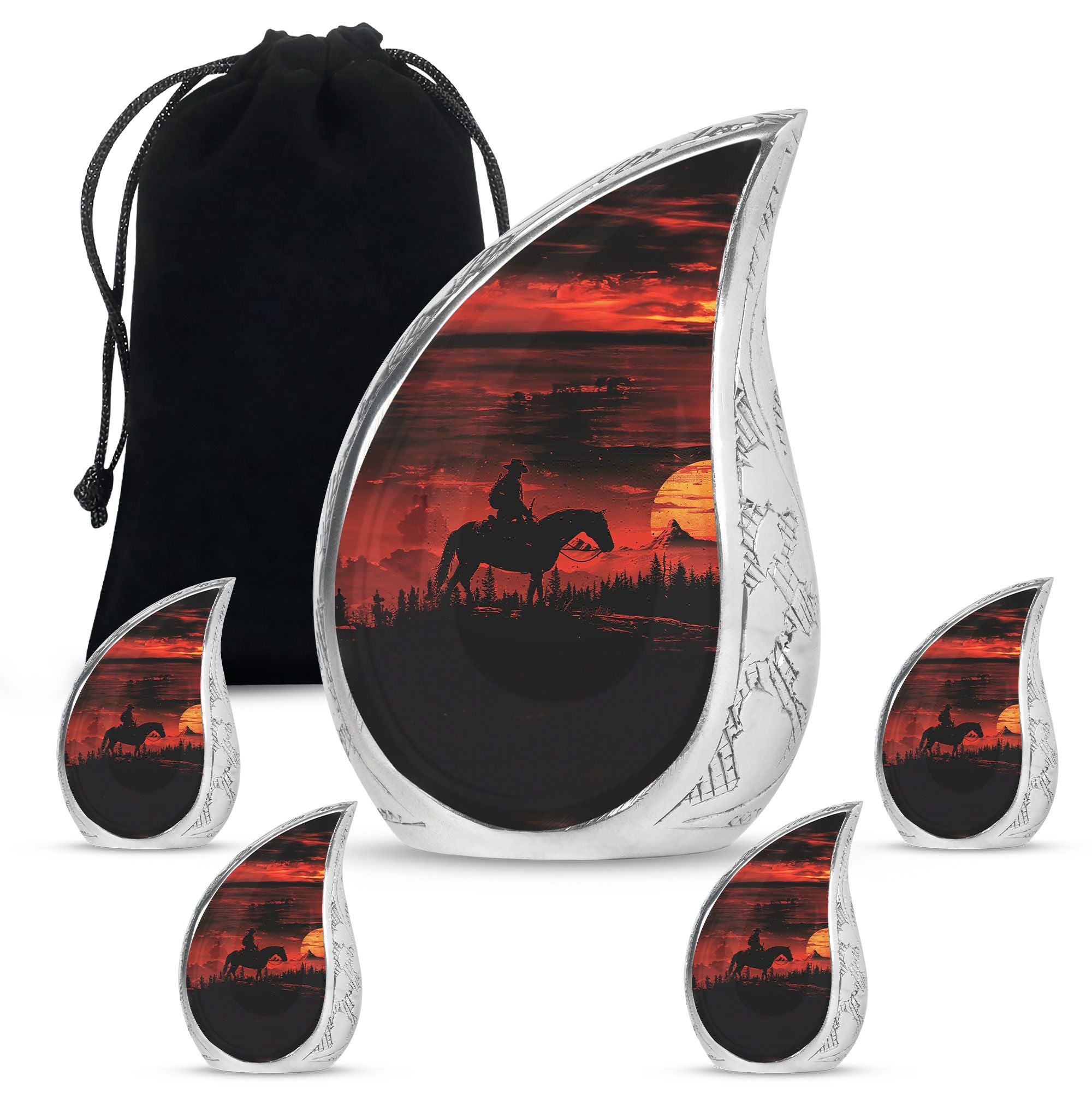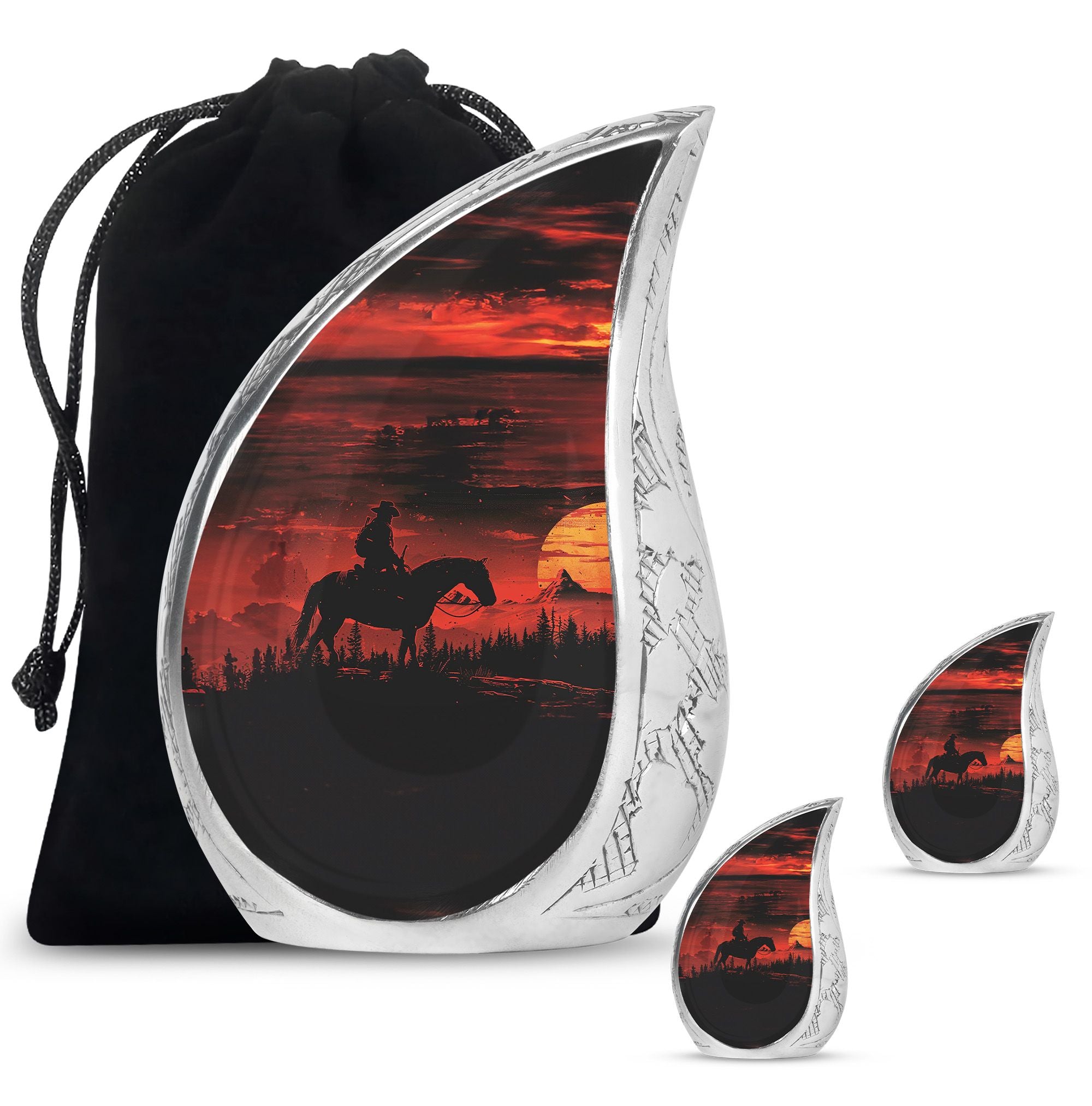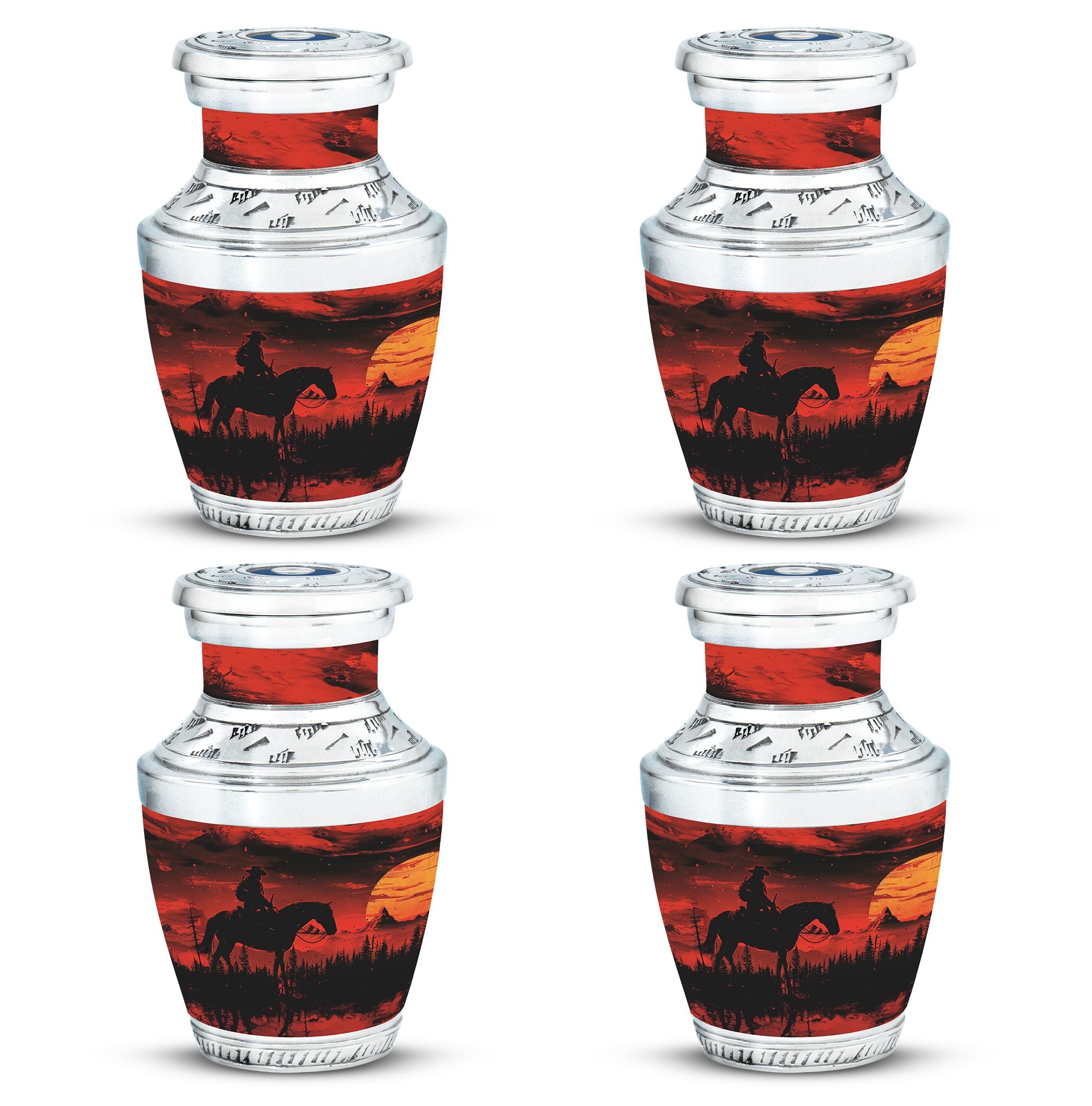 The cowboy design represents independence, courage, and an enduring legacy—qualities that remain forever in the hearts of those left behind. This small memorial urn offers both strength and comfort, making it a timeless tribute for generations.