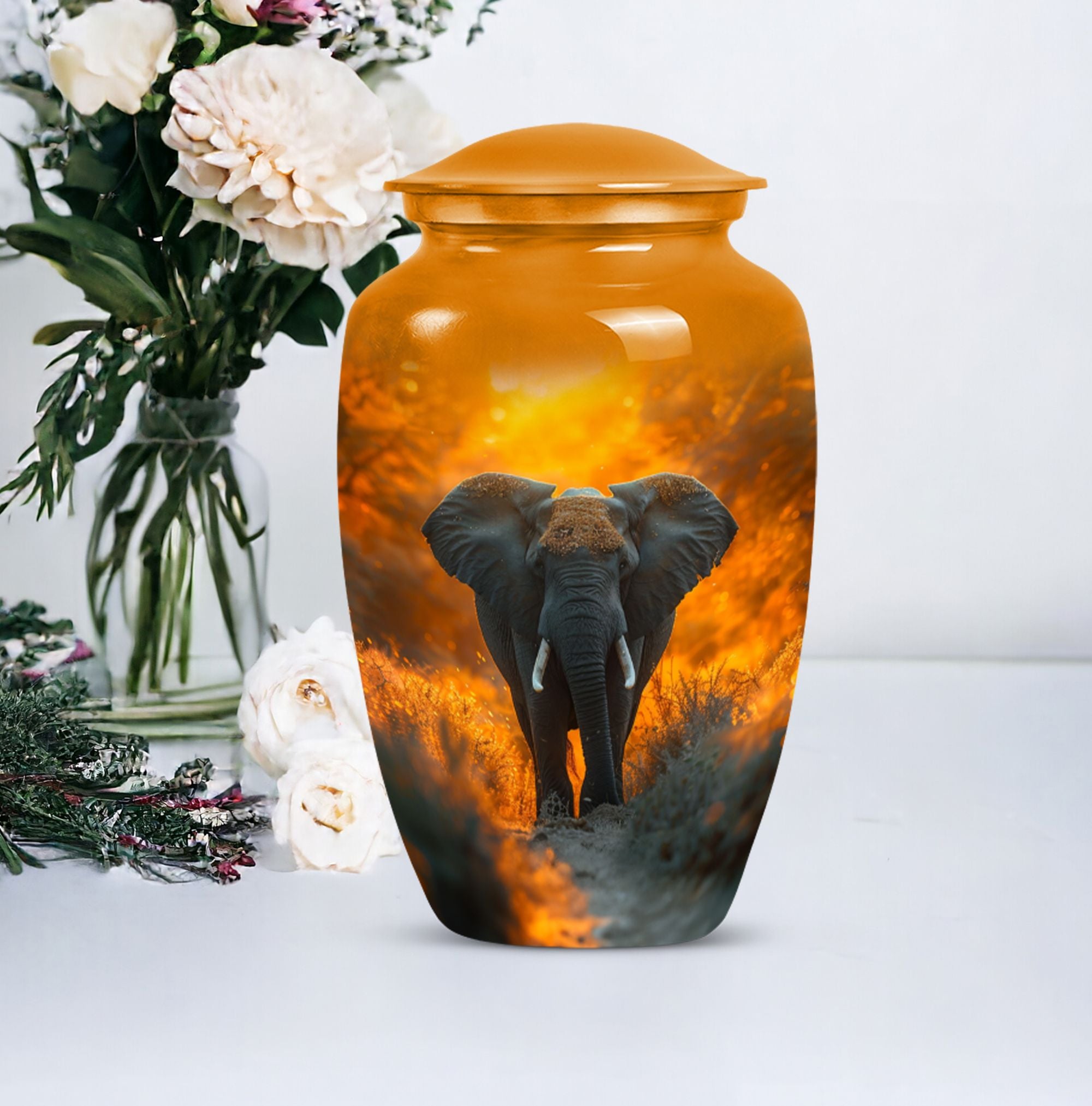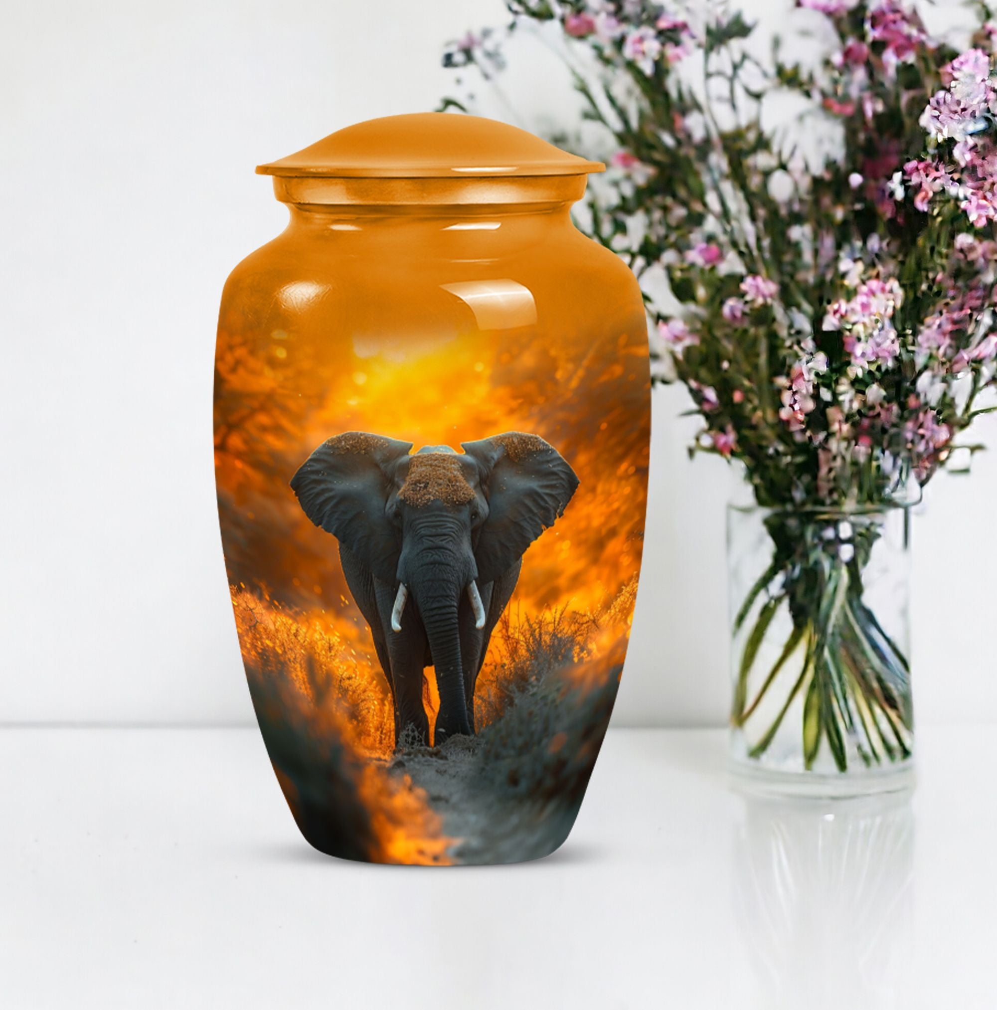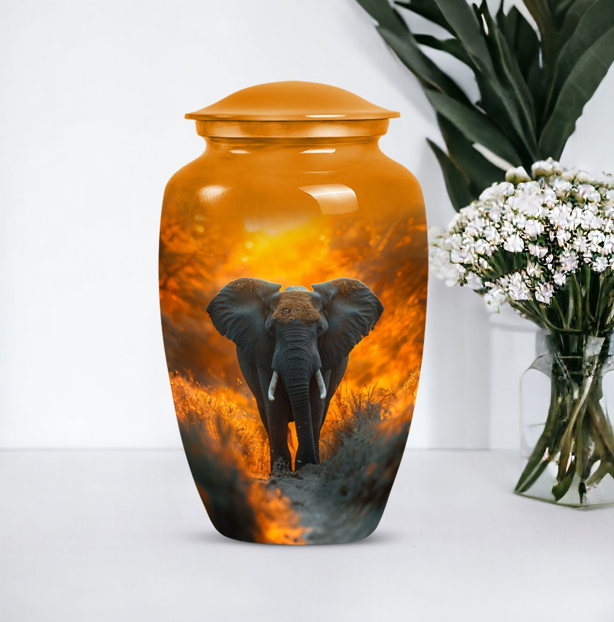 Steeped in meaning, discover our Elephant Urn, an exquisite piece within the memorial urns collection. This large lovingly-crafted 10-Inch urn, weighing 3.3 pounds, is the ideal homage to your beloved and doubles as a timeless keepsake. Captivating in its simplicity, this elegant classic urn is crafted from enduring Aluminium, ensuring it remains a pillar of strength, just as your memories do. With a capacity of 200 cubic inches, there is ample space to contain the ashes, securely housed in a sophisticated velvet pouch. Our urn can also be personalized, providing a poignant touch with engraved names adding a heartfelt sentiment. Honour their memory with our enchanting ‘Butterfly’ theme, a symbol of hope and rebirth, emanating a serene ambiance. With our funeral ashes urns, including our Large Cremation Urns for Men, find solace in knowing their presence remains a comforting constant within the home. Our meticulously crafted cremation urn serves as a beautiful tribute to your loved one, a metal urn for ashes adult male, embodying strength, and resilience in its design.