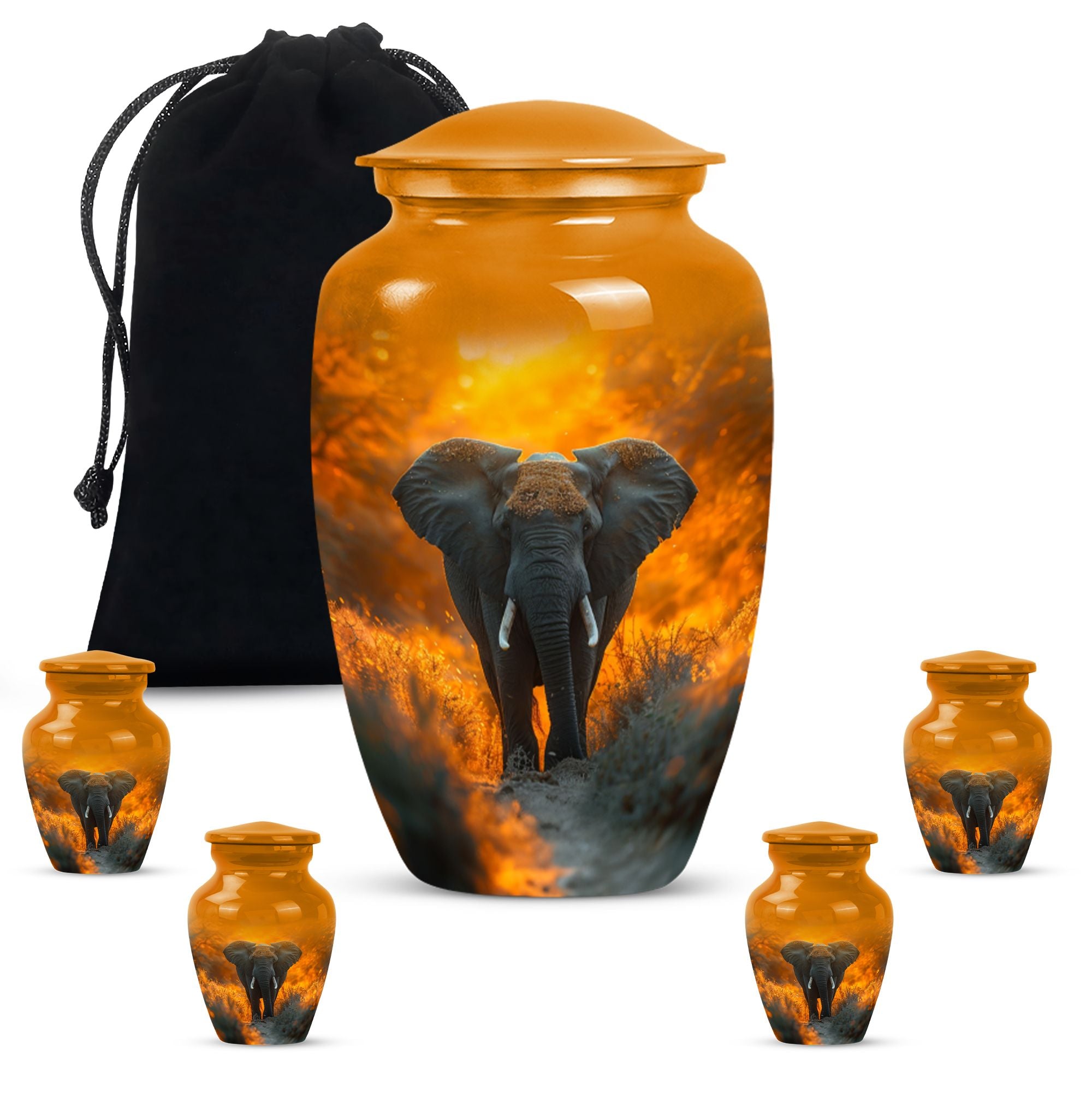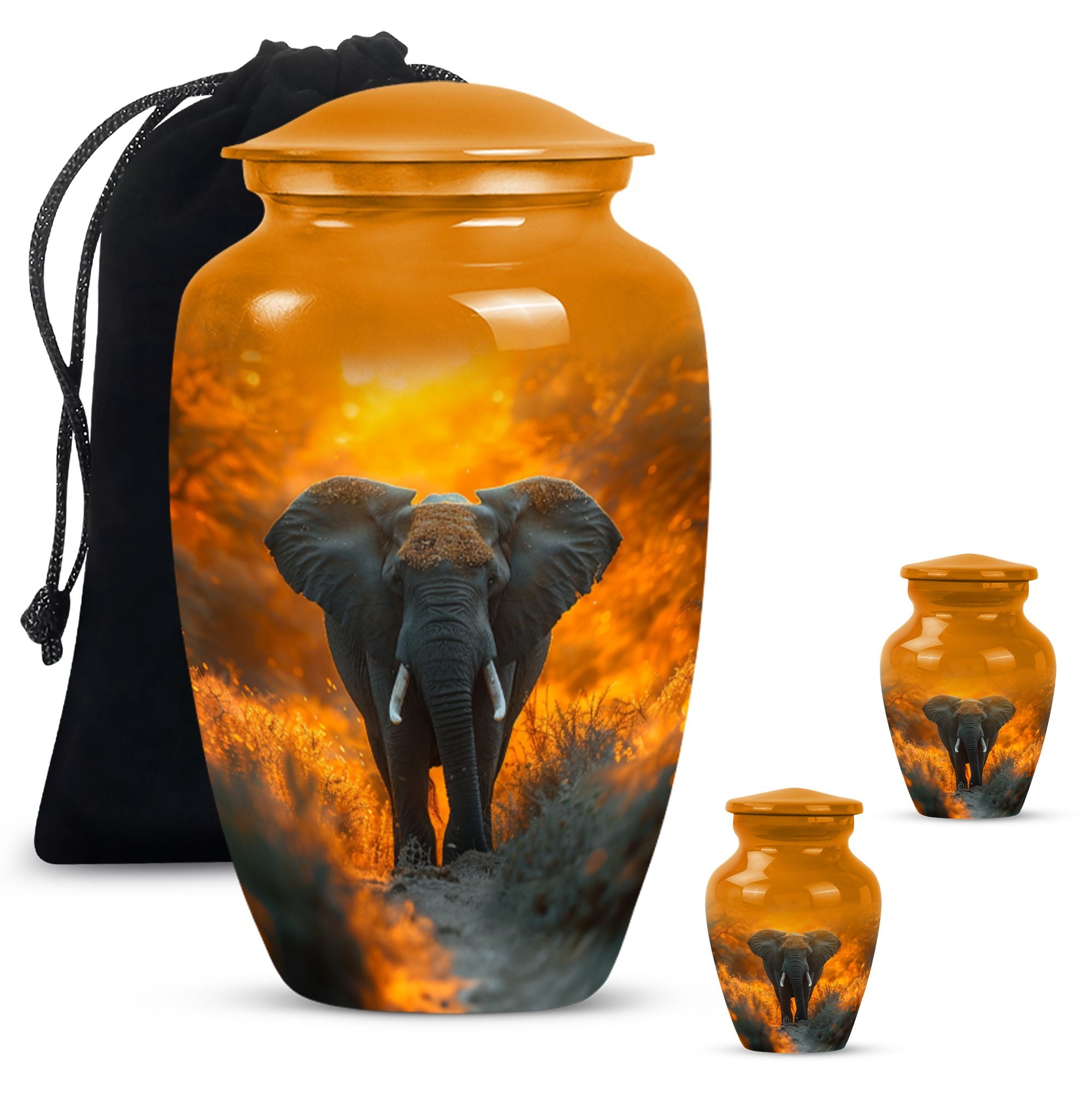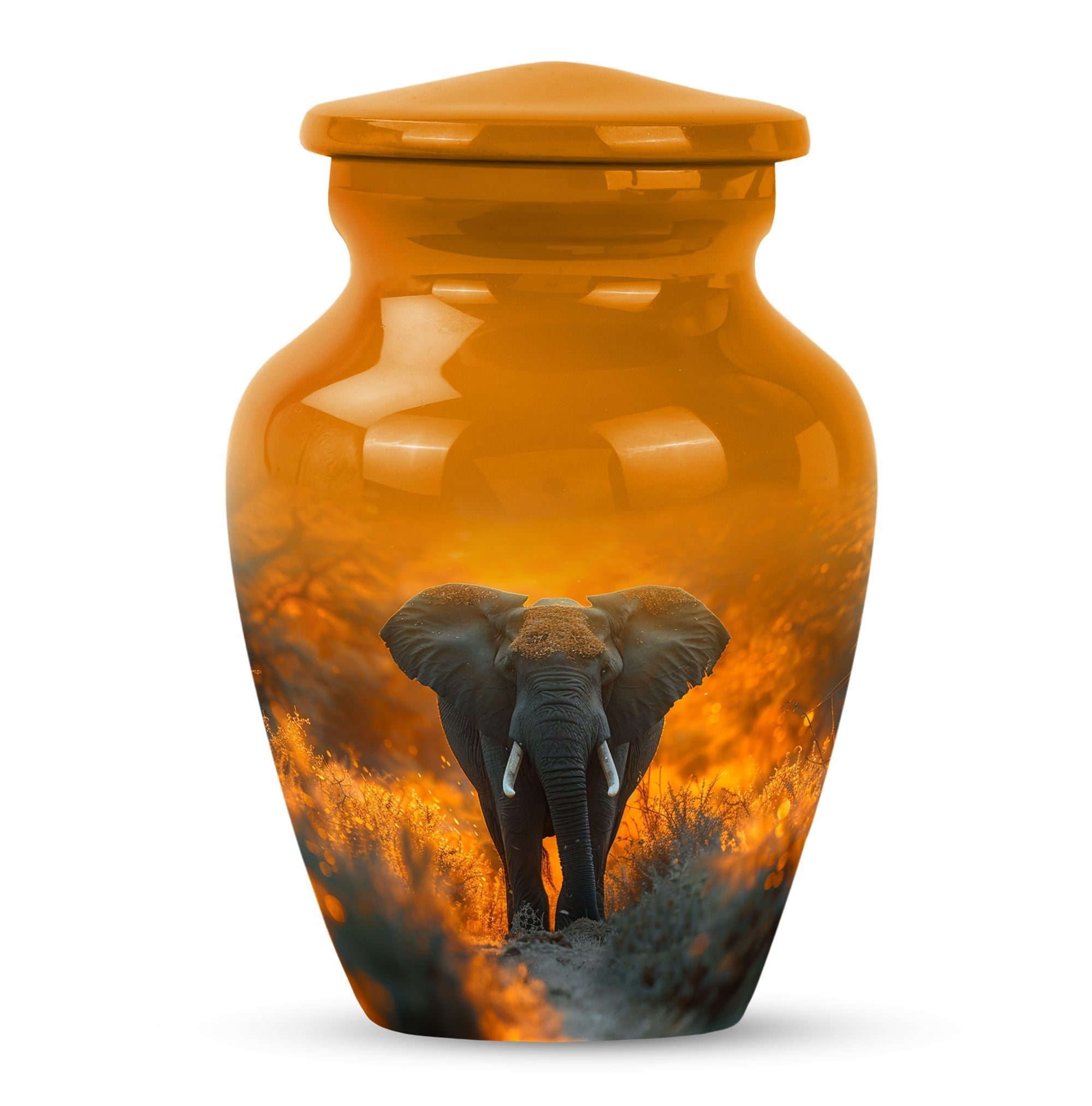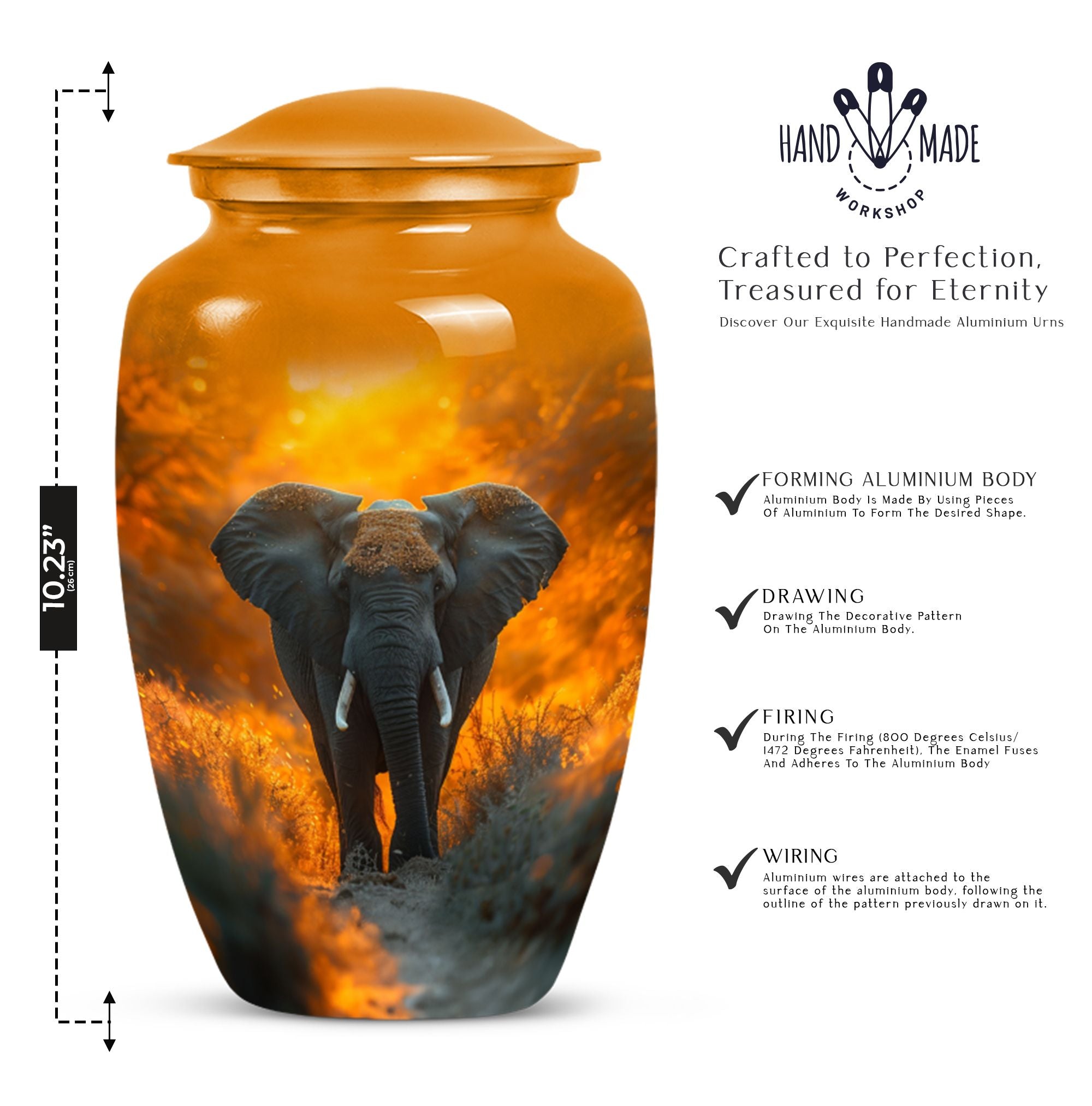 Steeped in meaning, discover our Elephant Urn, an exquisite piece within the memorial urns collection. This large lovingly-crafted 10-Inch urn, weighing 3.3 pounds, is the ideal homage to your beloved and doubles as a timeless keepsake. Captivating in its simplicity, this elegant classic urn is crafted from enduring Aluminium, ensuring it remains a pillar of strength, just as your memories do. With a capacity of 200 cubic inches, there is ample space to contain the ashes, securely housed in a sophisticated velvet pouch. Our urn can also be personalized, providing a poignant touch with engraved names adding a heartfelt sentiment. Honour their memory with our enchanting ‘Butterfly’ theme, a symbol of hope and rebirth, emanating a serene ambiance. With our funeral ashes urns, including our Large Cremation Urns for Men, find solace in knowing their presence remains a comforting constant within the home. Our meticulously crafted cremation urn serves as a beautiful tribute to your loved one, a metal urn for ashes adult male, embodying strength, and resilience in its design.