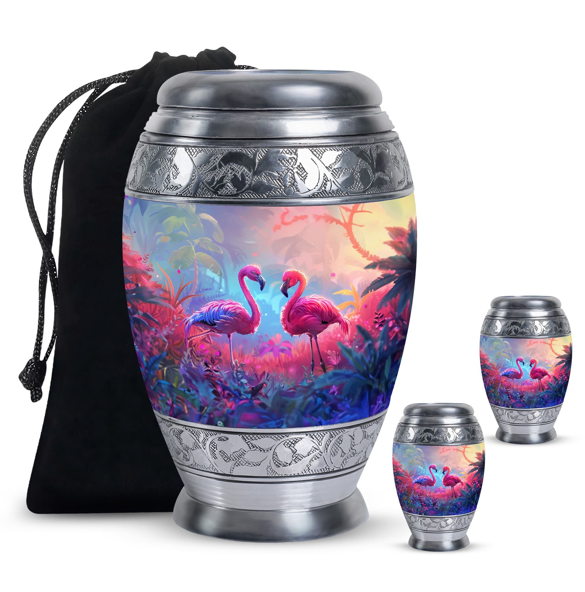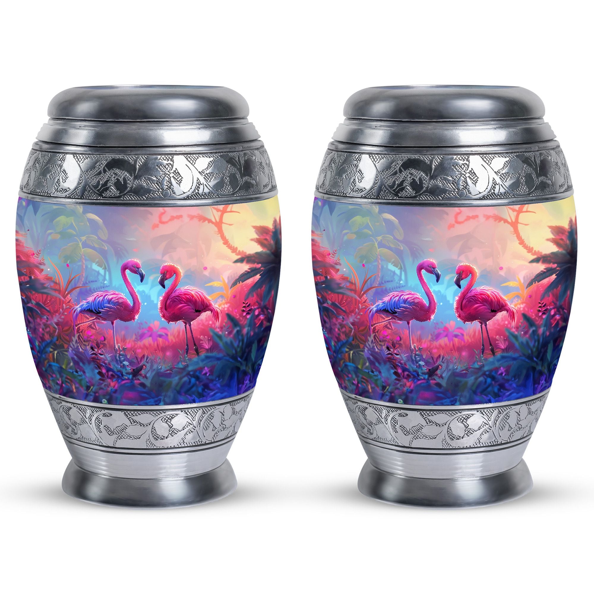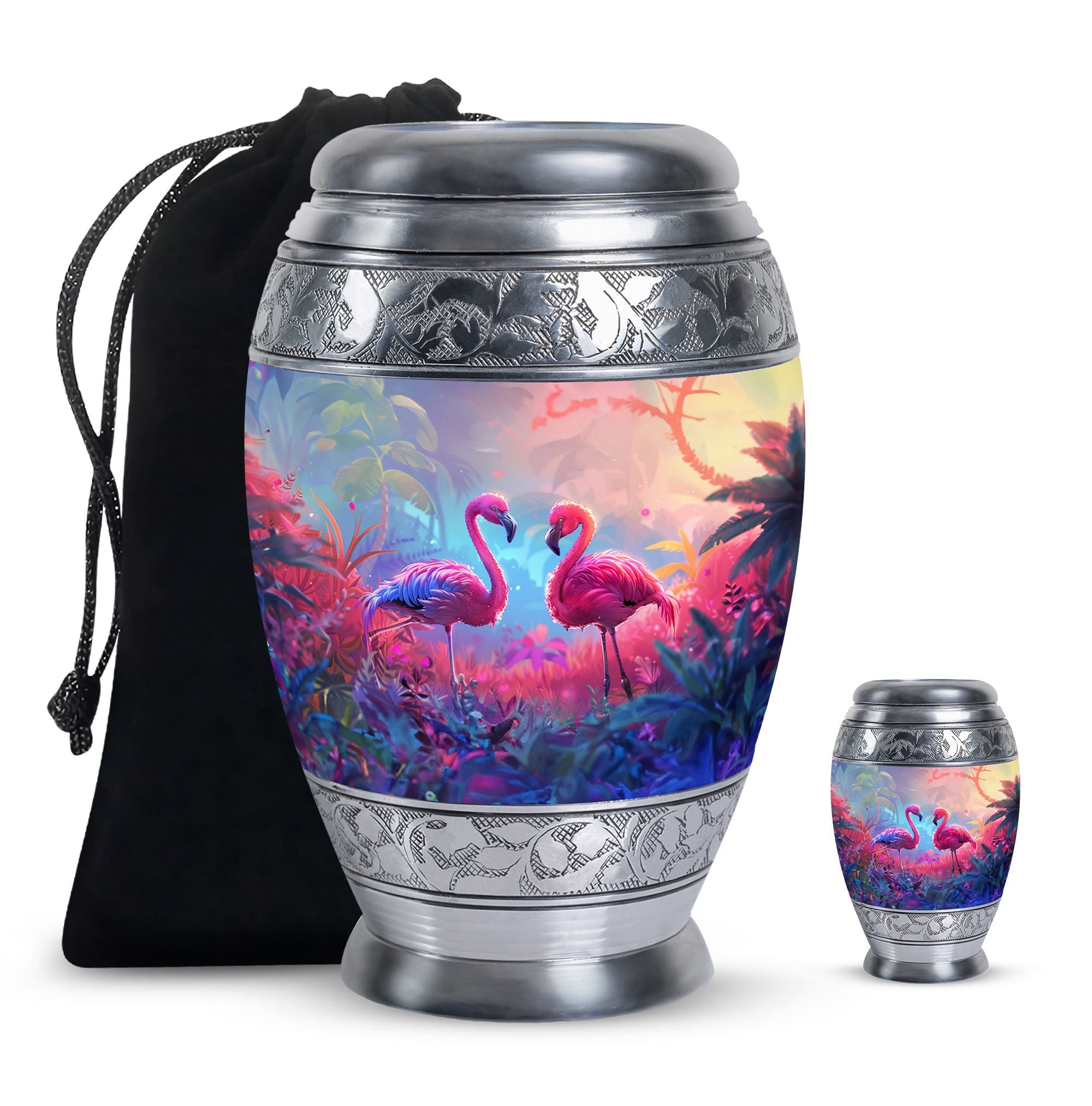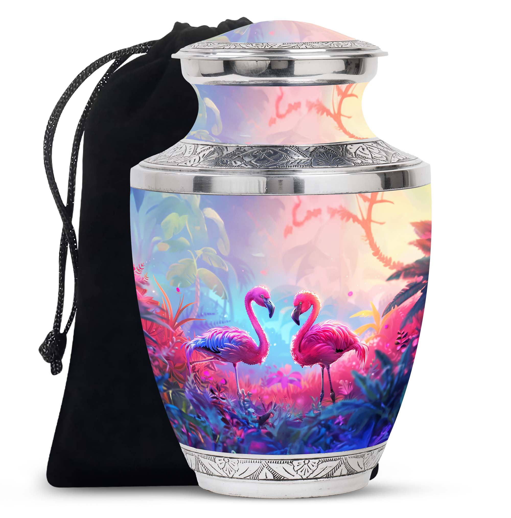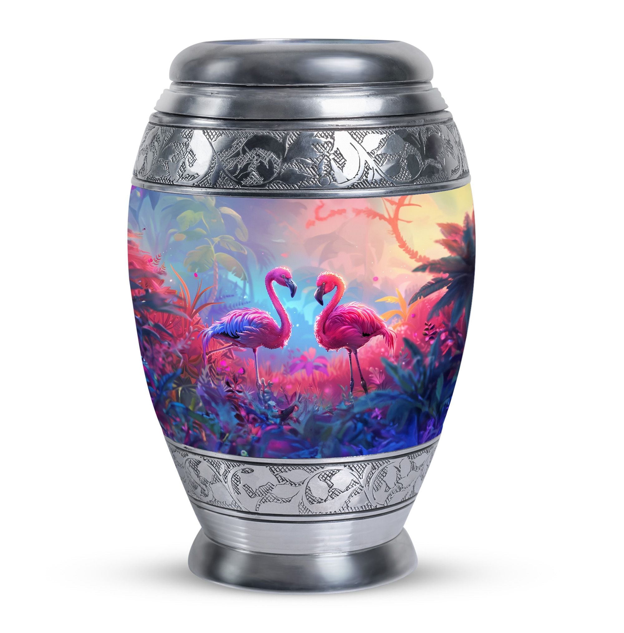 Meticulously handcrafted from durable aluminum, this cremation urn offers both elegance and resilience. The stunning pink flamingo design stands out as a symbol of hope and peace. Its secure screw-top lid ensures the ashes remain safe, while the polished finish radiates light and love. Suitable as a cremation urn women or cremation urn men, this piece serves equally well as a burial urn men or urn for human ashes adult men. Among the finest funeral urns women and funeral urns men, it offers a timeless tribute that blends art with emotion.