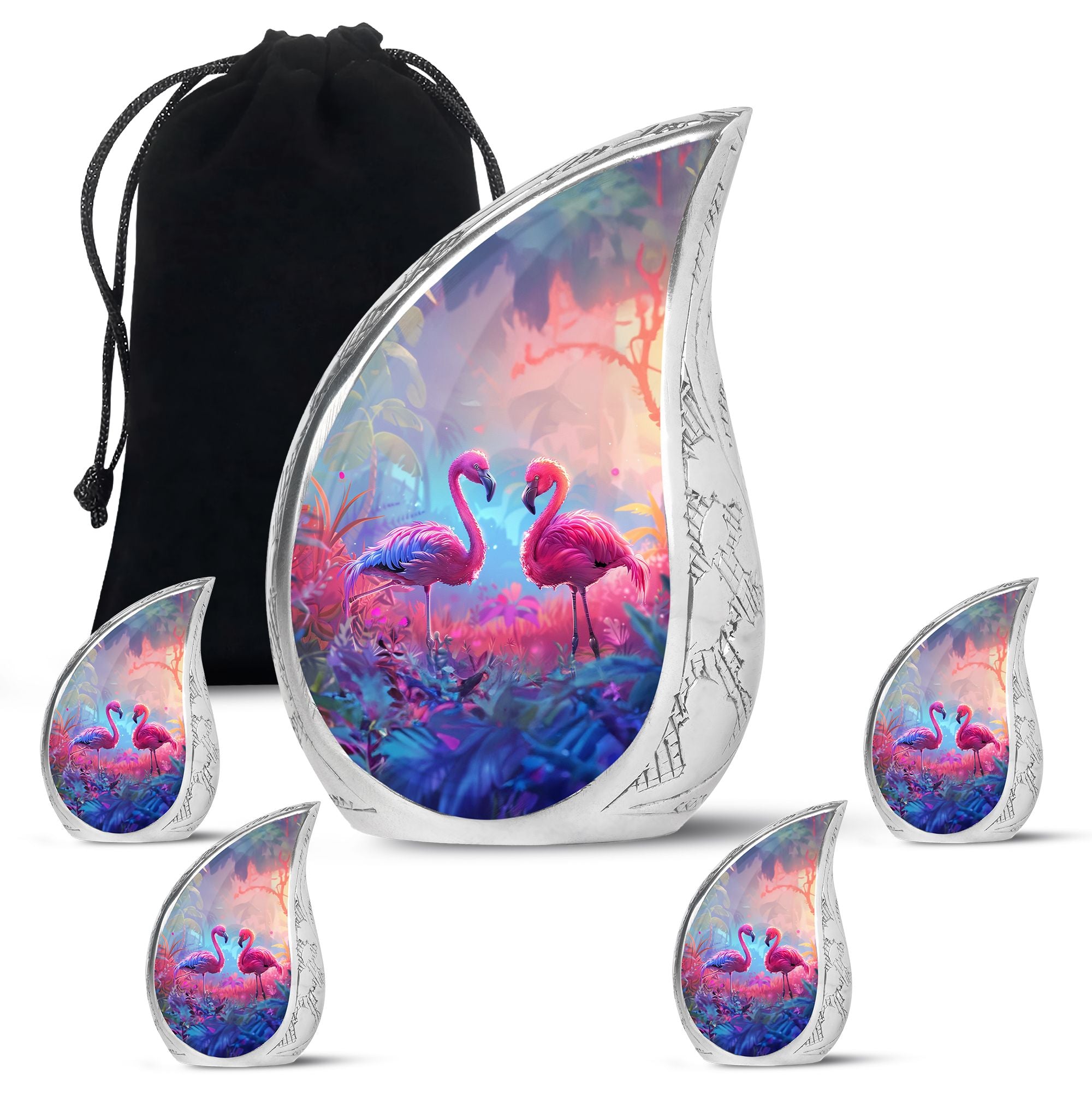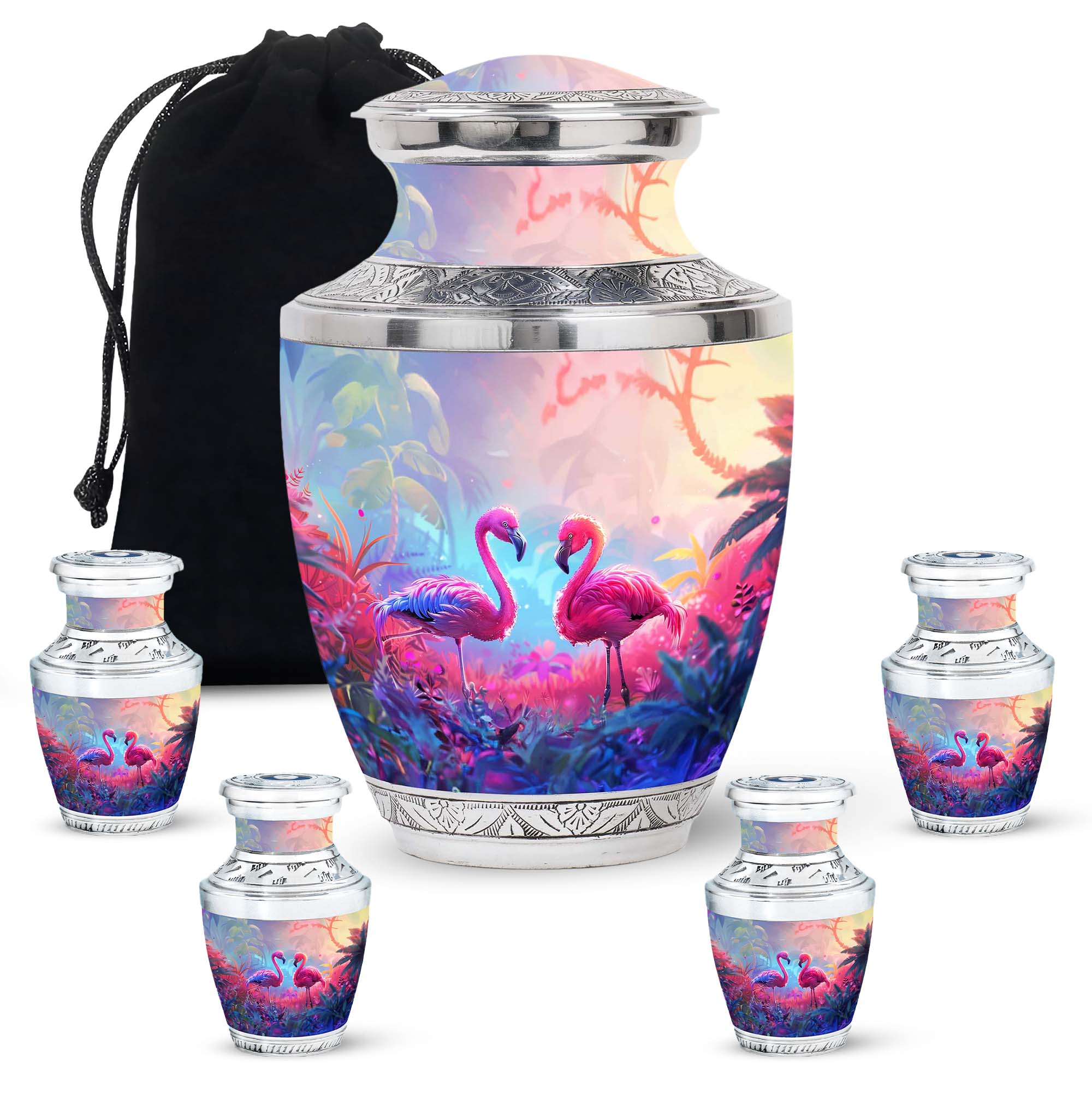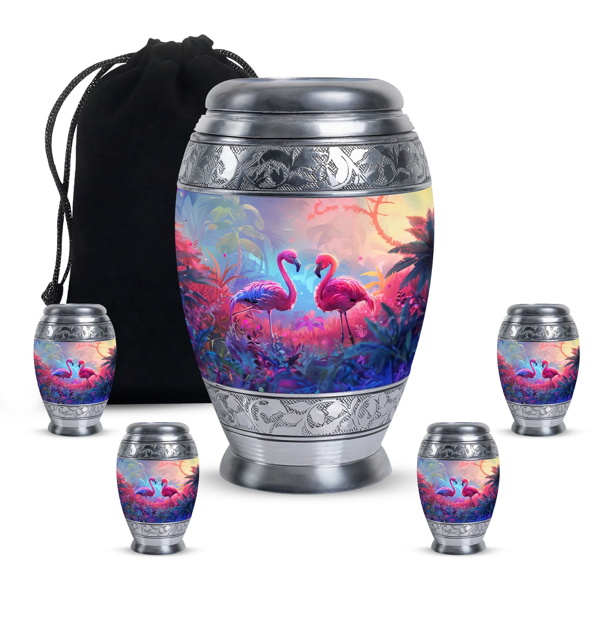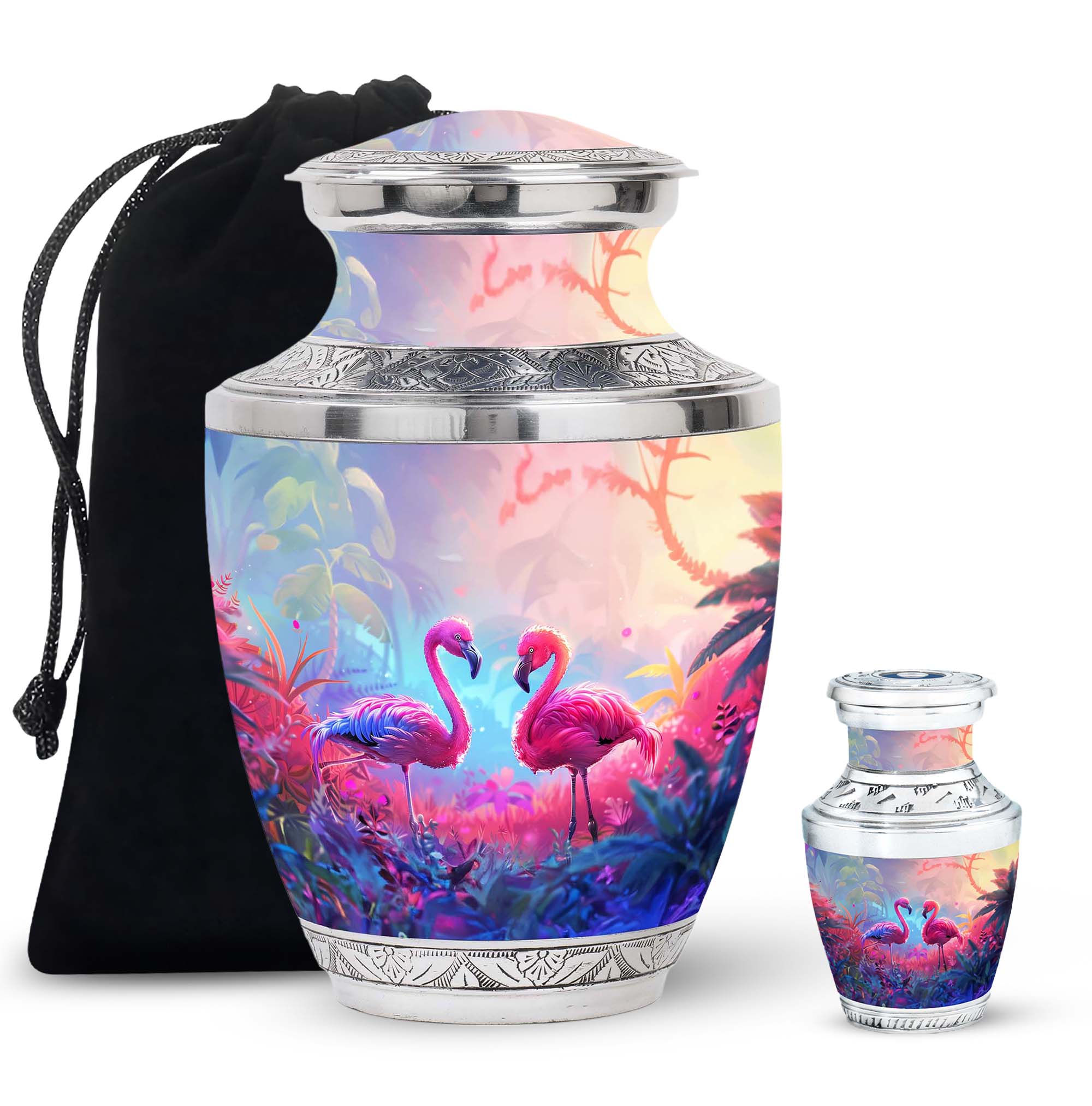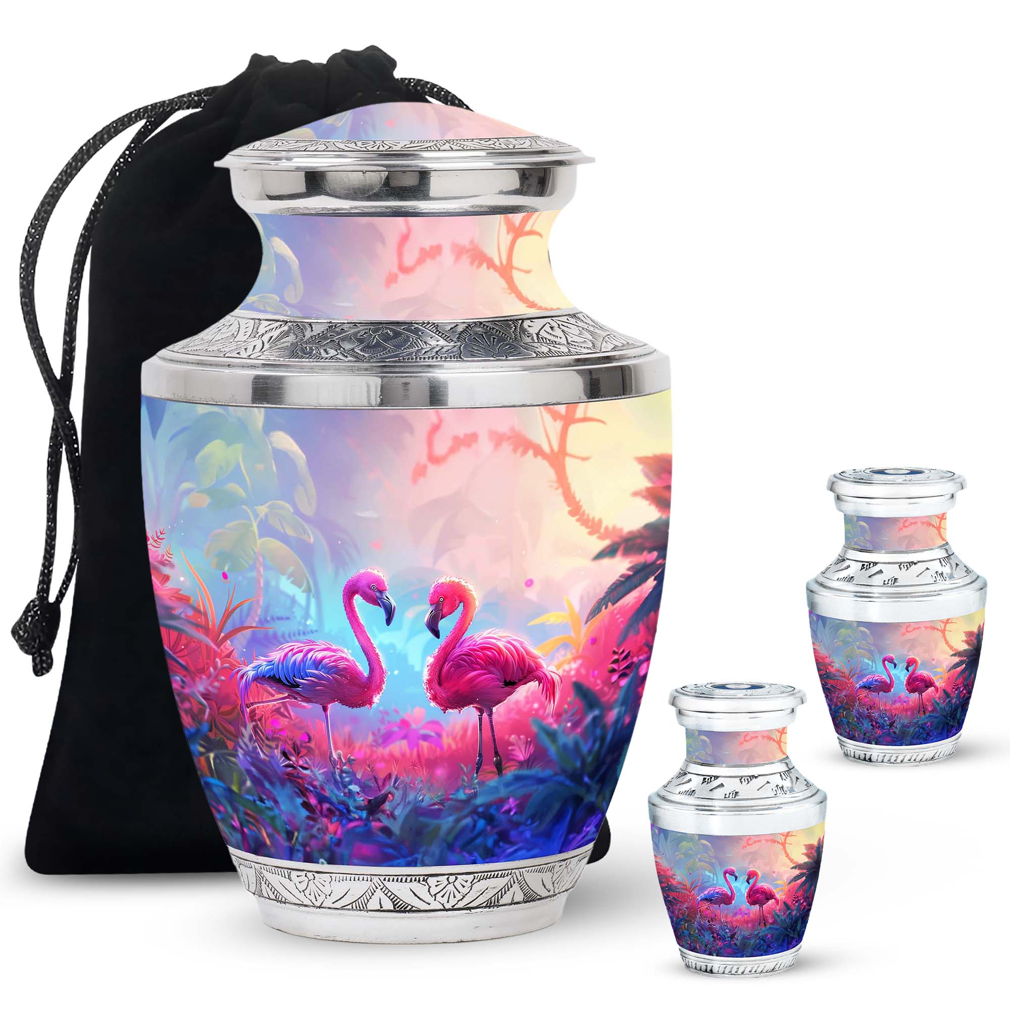 Meticulously handcrafted from durable aluminum, this cremation urn offers both elegance and resilience. The stunning pink flamingo design stands out as a symbol of hope and peace. Its secure screw-top lid ensures the ashes remain safe, while the polished finish radiates light and love. Suitable as a cremation urn women or cremation urn men, this piece serves equally well as a burial urn men or urn for human ashes adult men. Among the finest funeral urns women and funeral urns men, it offers a timeless tribute that blends art with emotion.
