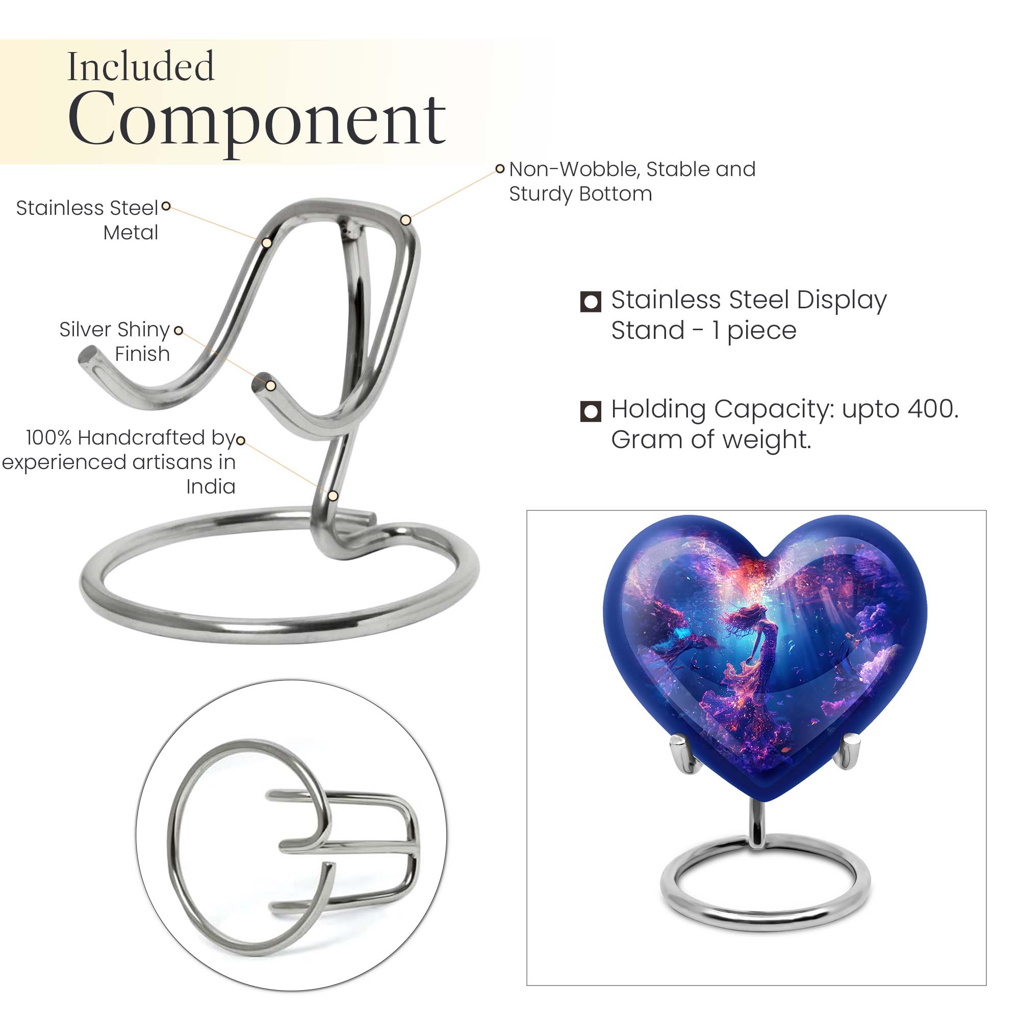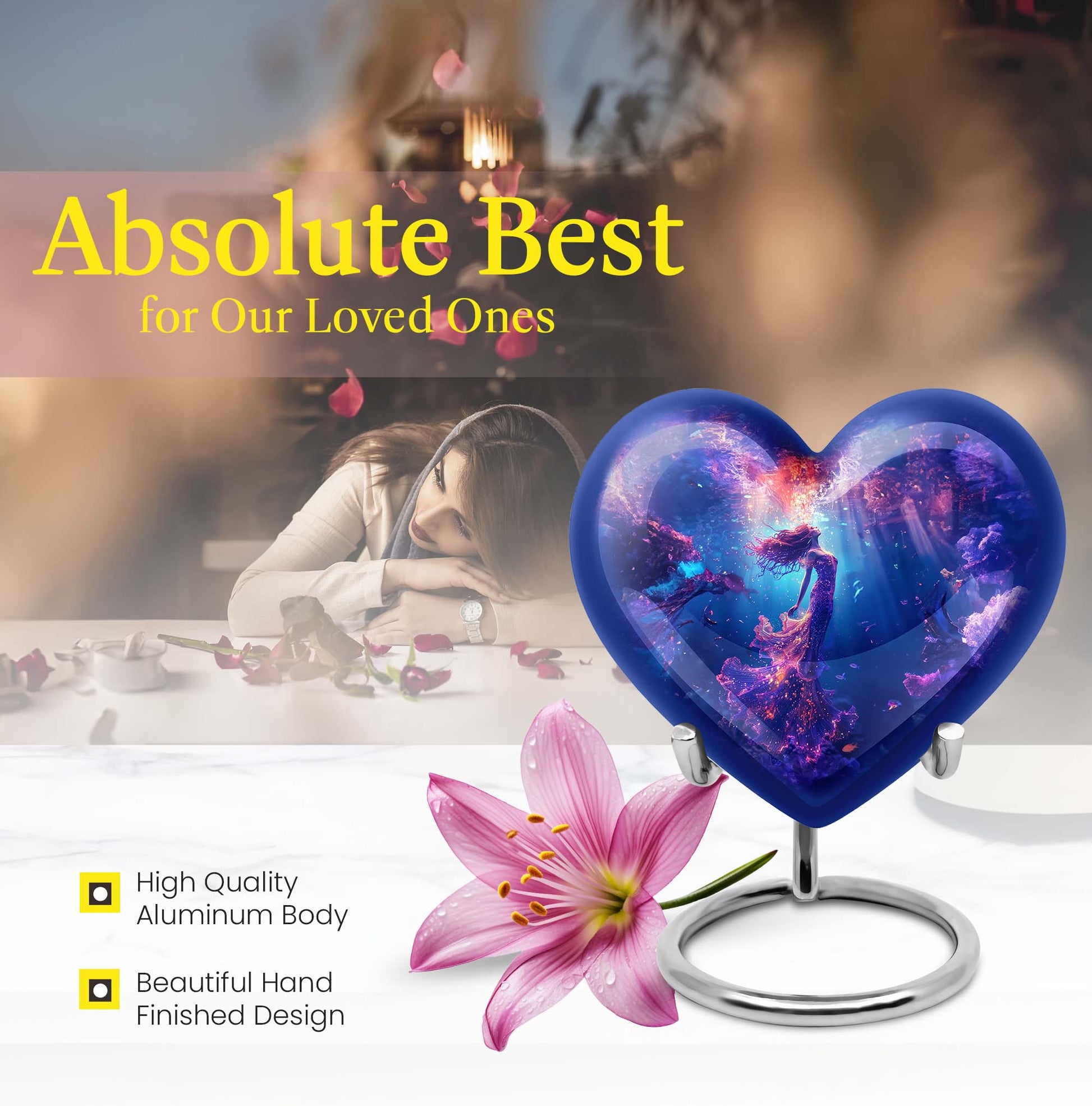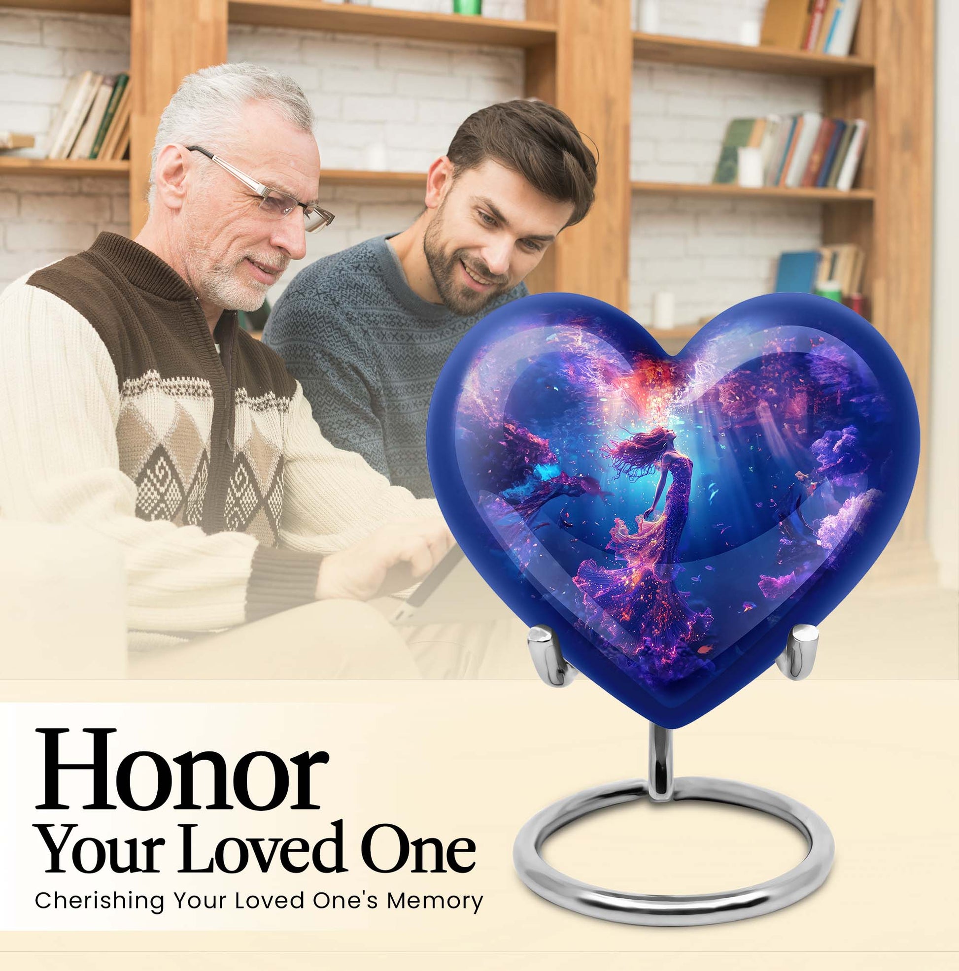 Carry the spirit of your loved one close to your heart with our custom 10-inch Mermaid Urn, an essential part of modern burial large urn for ashes for women. Each crafted Heart Urn stands 10 inches tall and weighs 3.3 pounds, offering a generous capacity of 200 cubic inches, ideal for memorial ceremonies. Our burial cremation urns for adult women pristinely cast in Aluminium are shaped to perfection. This stunning Large Urn, part of an exclusive collection of Large Urns, is graced by a butterfly-theme that adds a touch of elegance and remembrance. To make it even more special, personalize with engraved names. Included with this cremation urn is a handy velvet pouch, perfect for secure containment of ashes. Browsing for memorial gifts, cremation urn men, or large double cremation urn for two adults? Look no further. Embrace the beauty and symbolism of our Heart Urn, a poignant choice for preserving cherished memories.