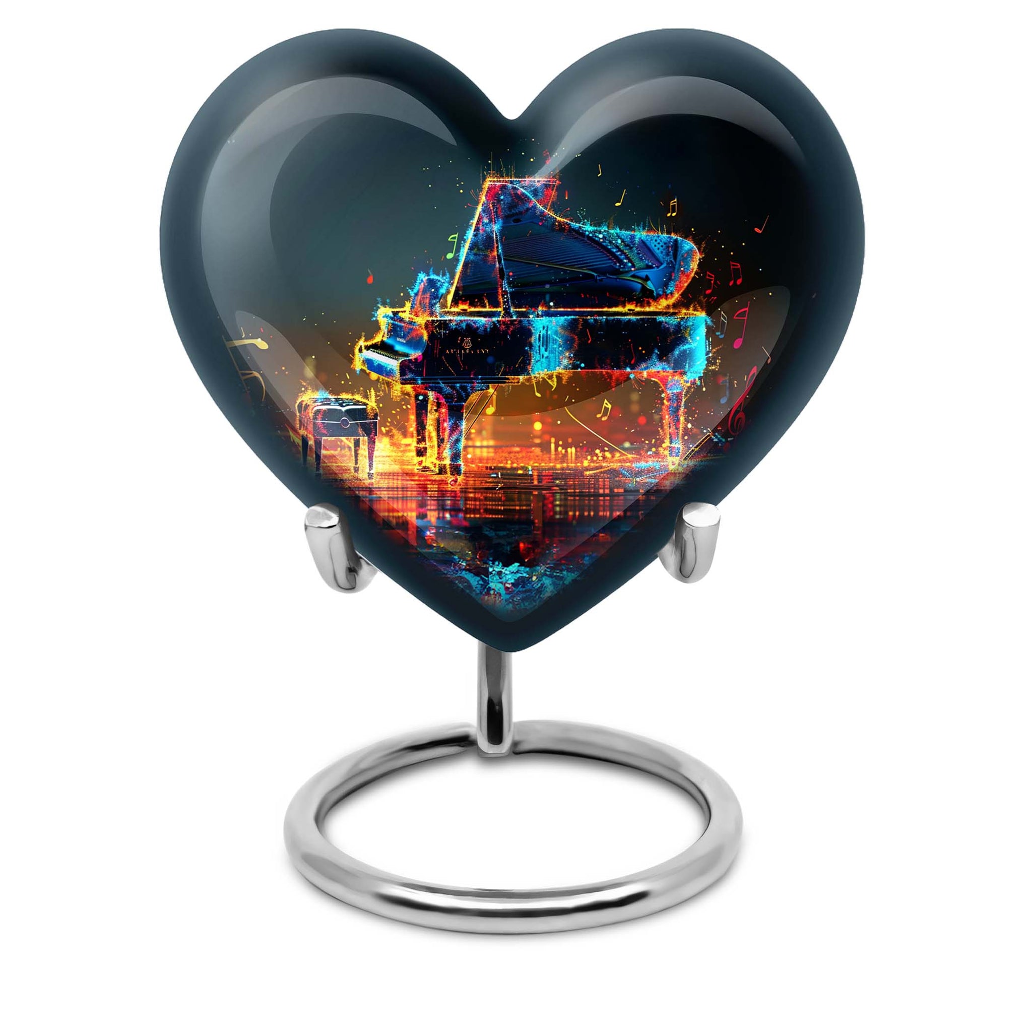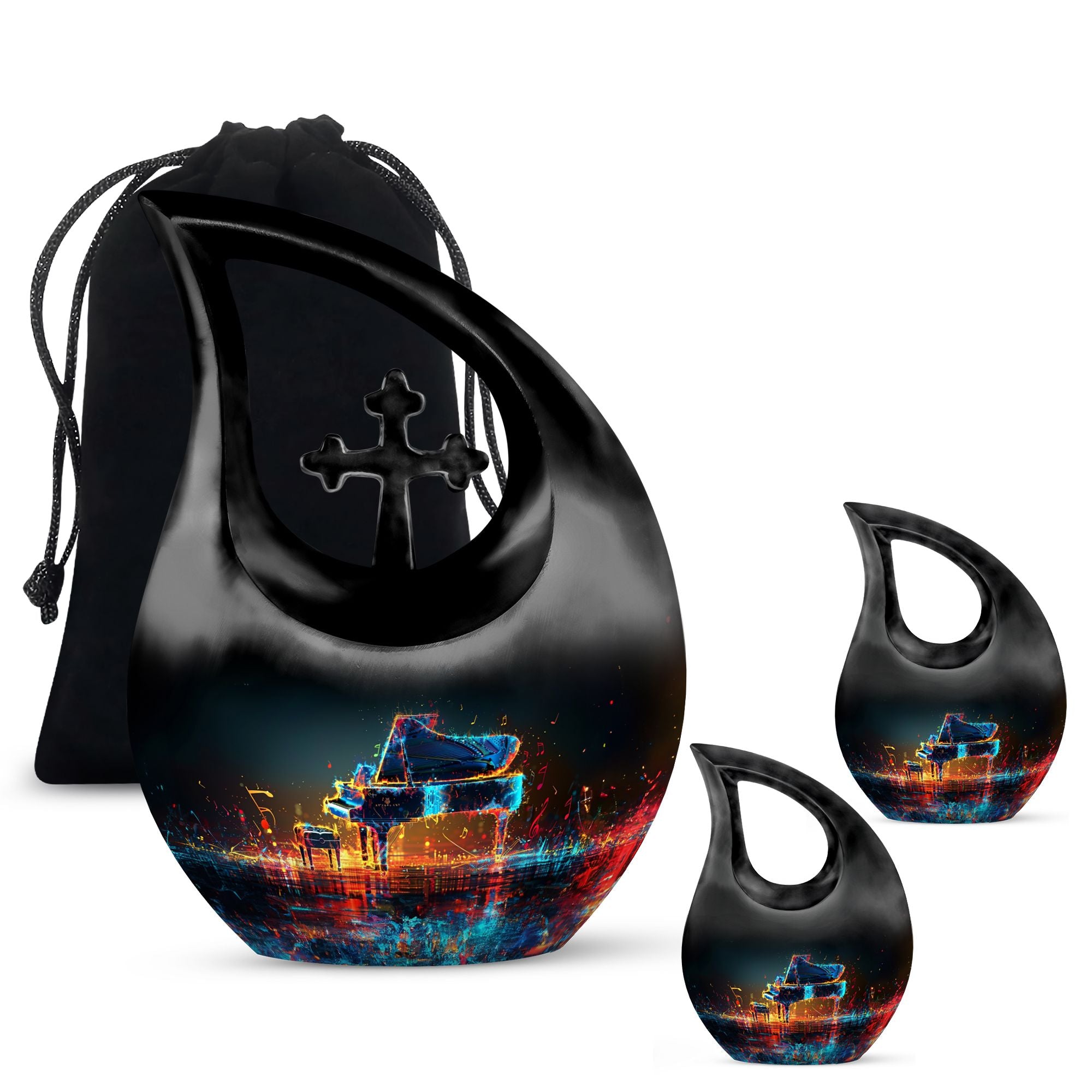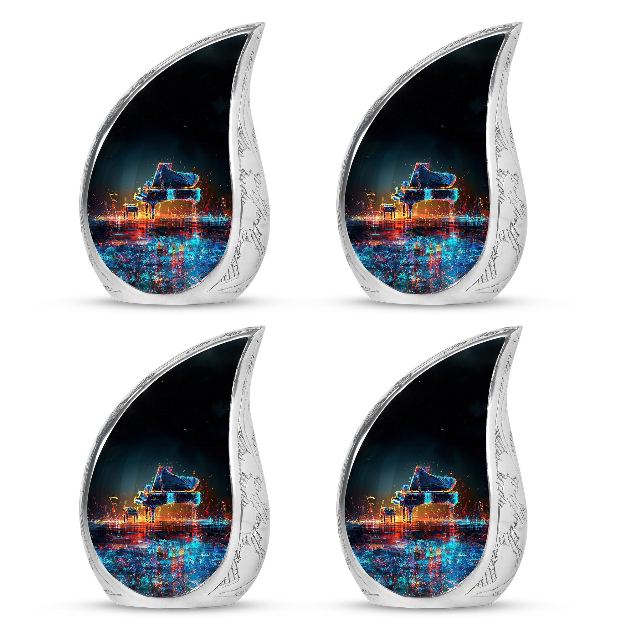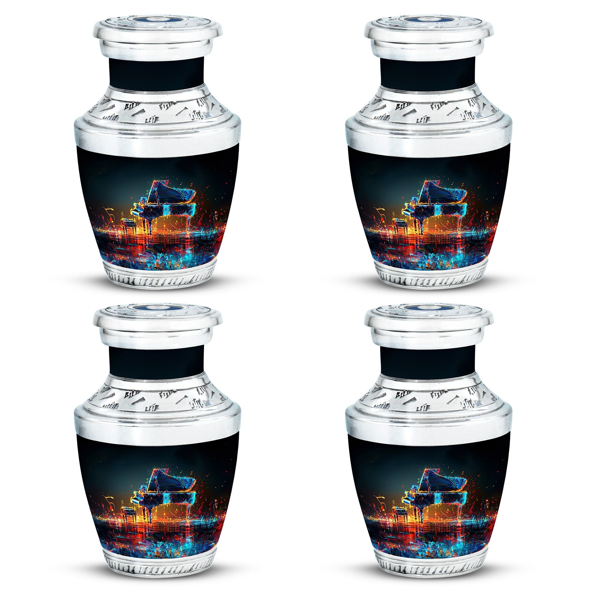 Crafted from high-quality aluminum, the urn features a vibrant, colorful piano-inspired design and a secure screw-top lid for safe storage. Its elegant artistry and durable construction make it suitable as cremation urns for human ashes adult female, urn for human ashes for men, or urns for cremation ashes female. Mini options are available as mini urn for ashes adult male or small urns for adult male, ensuring keepsake versatility.
