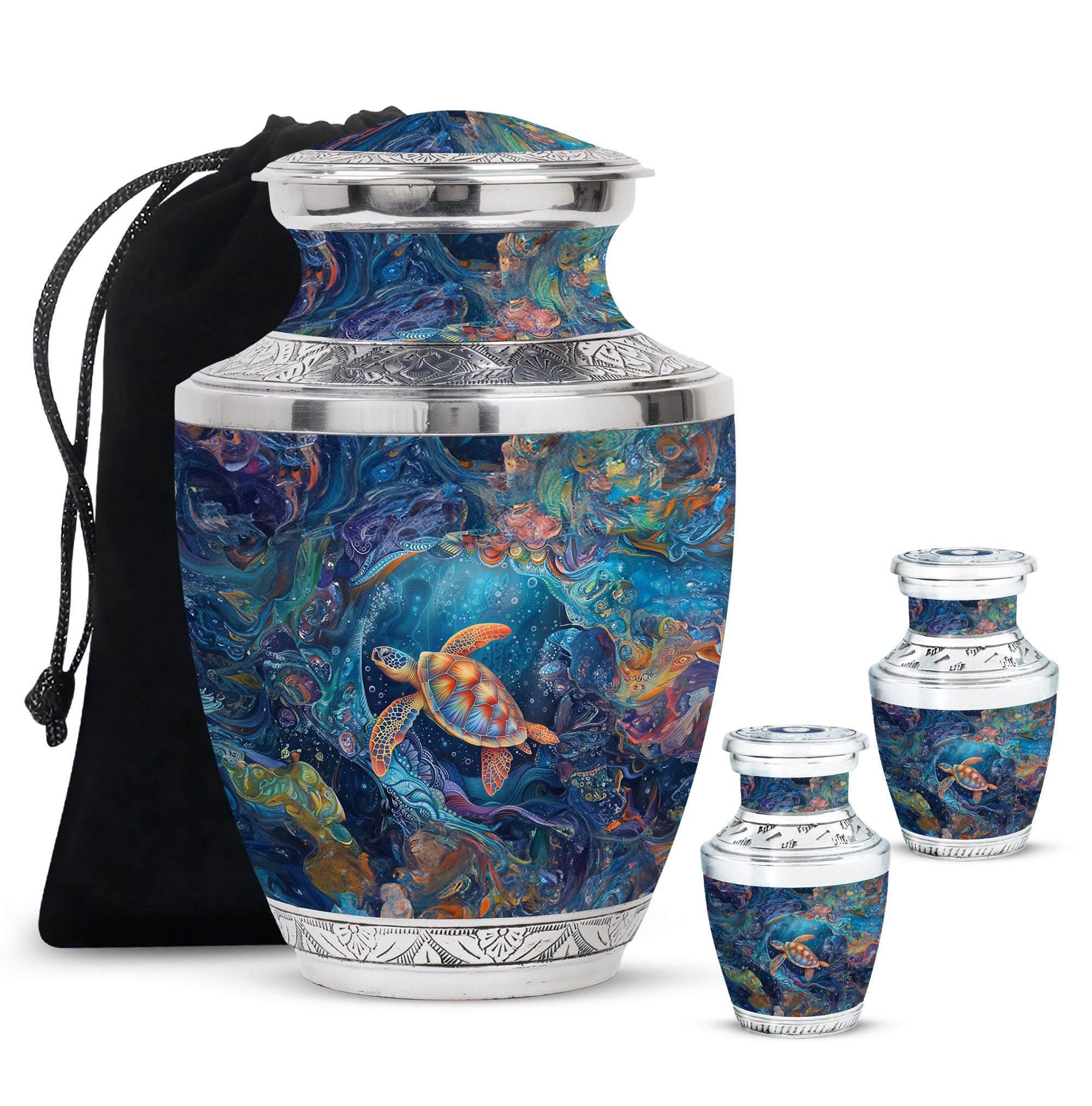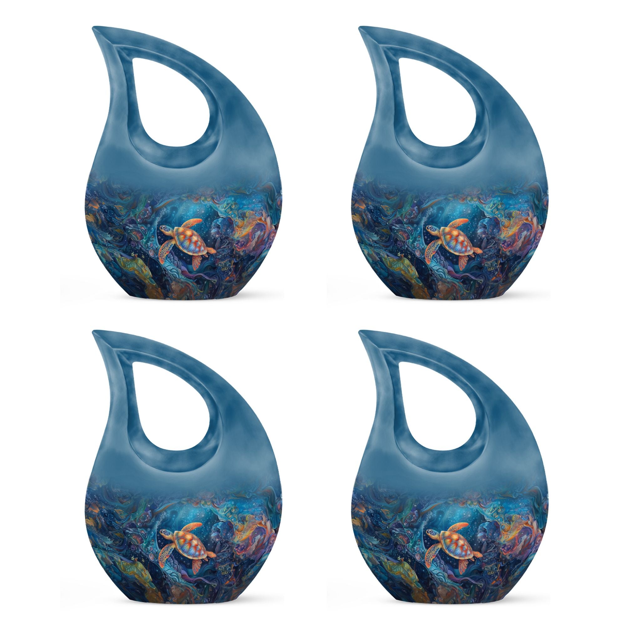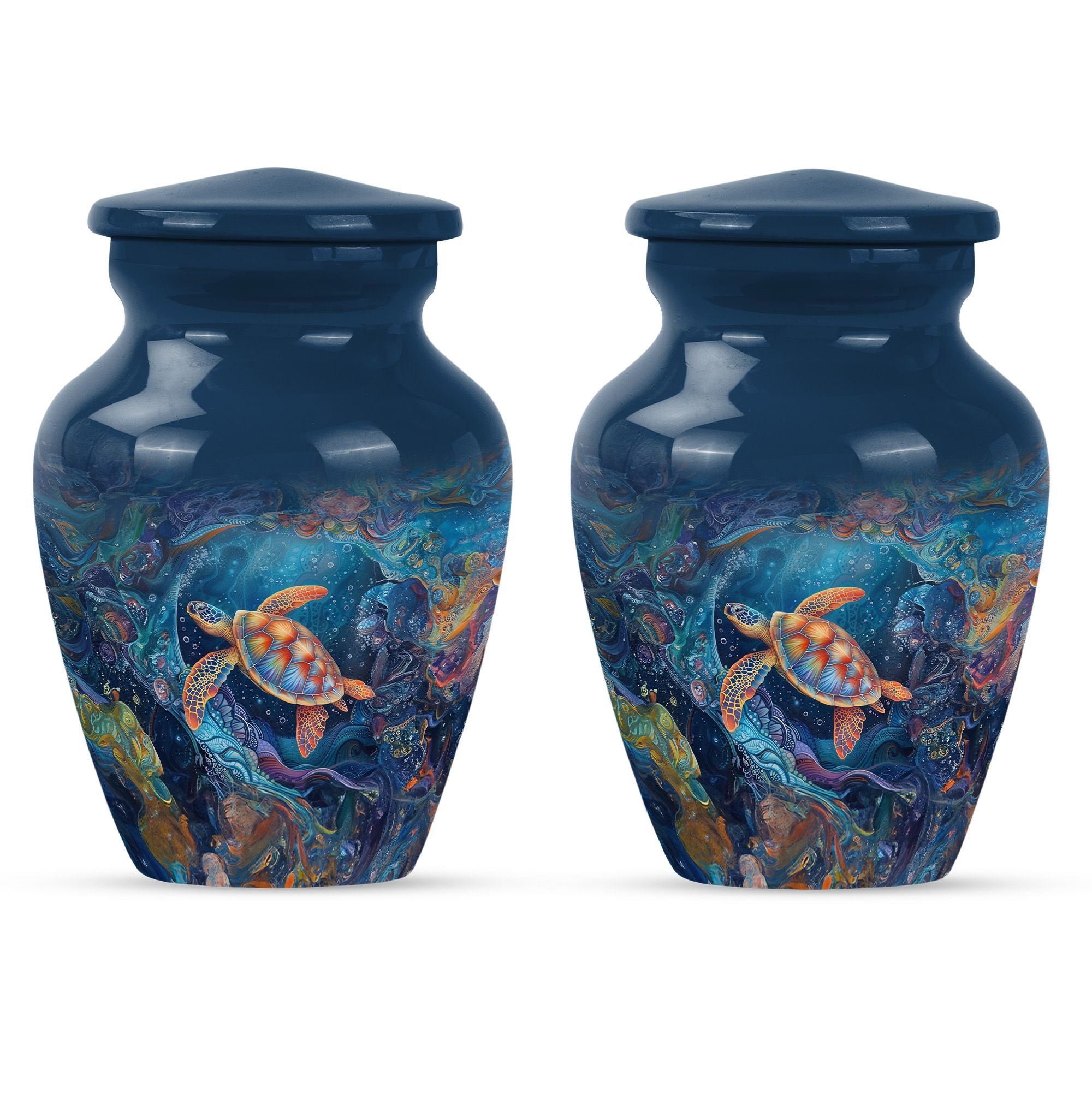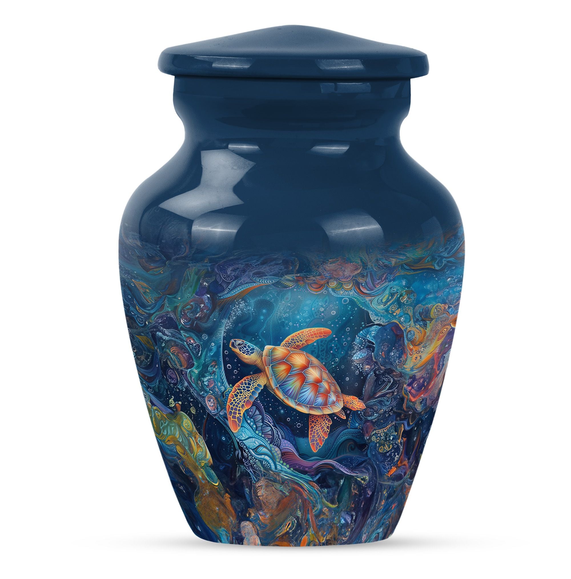 The Turtle Cremation Large Urns for Human Ashes represent tranquility, eternity, and the peaceful flow of underwater life. Designed as a mesmerizing urn, its ocean-inspired artistry provides a comforting way to celebrate your loved one’s life with dignity.