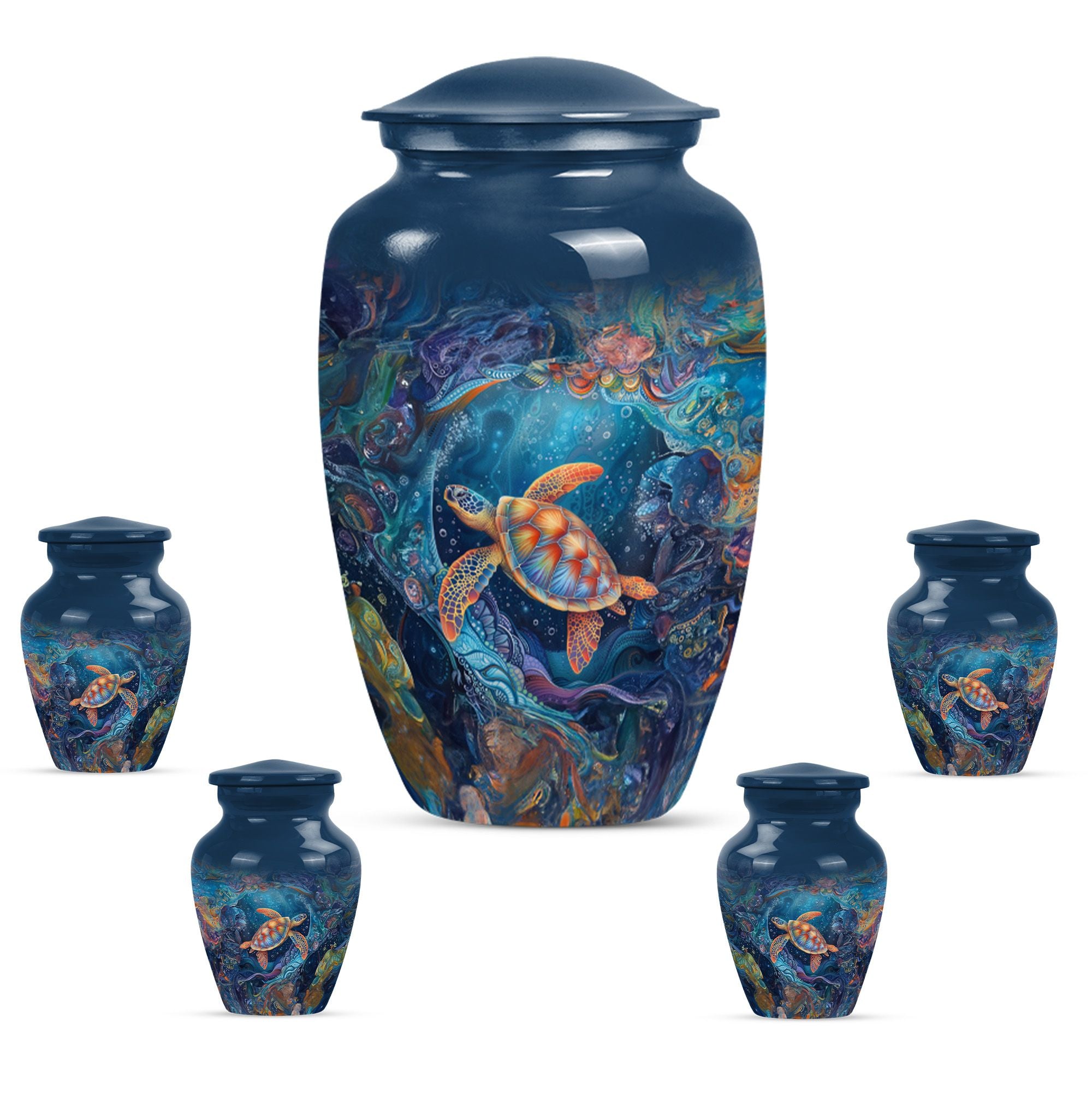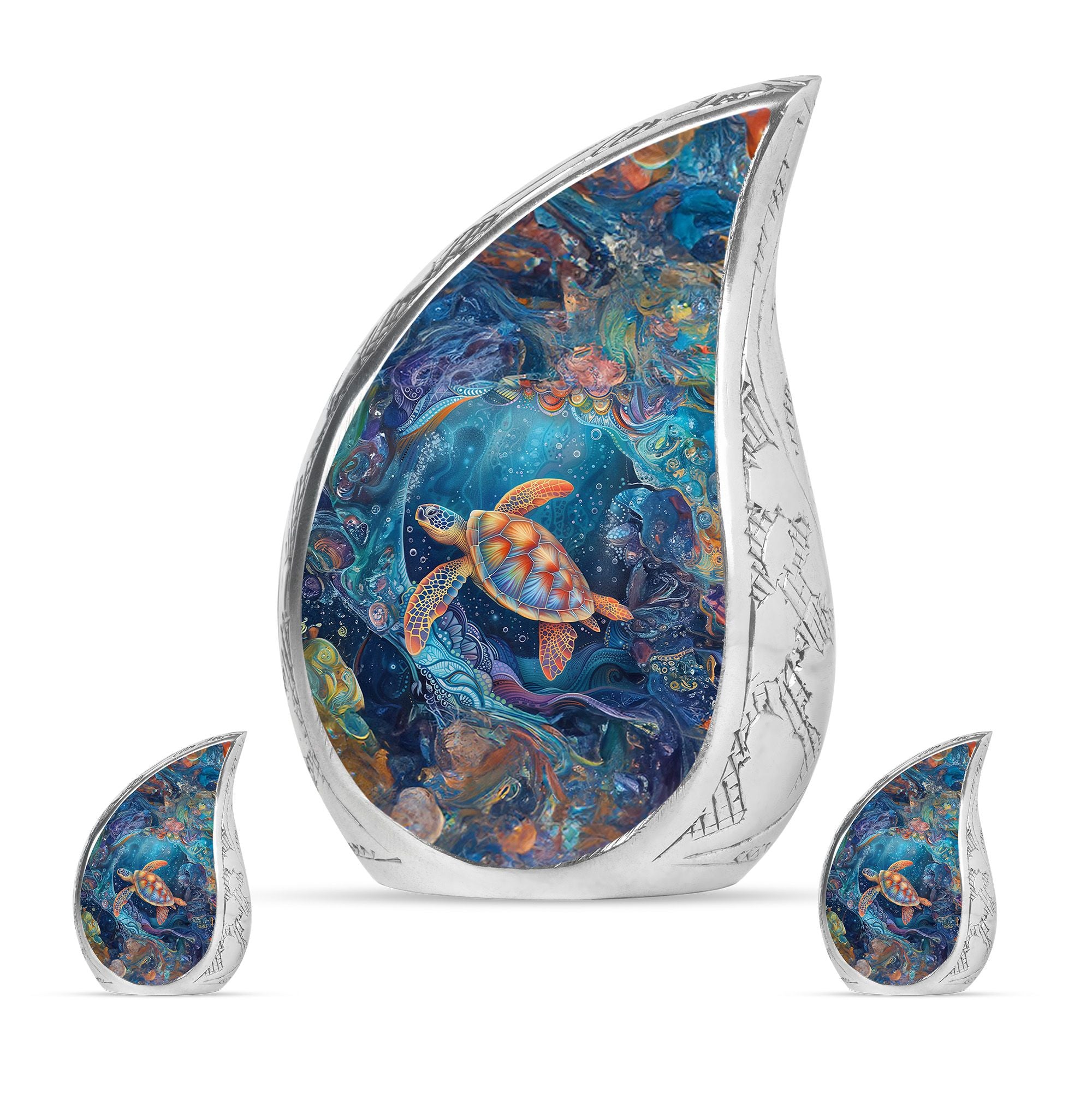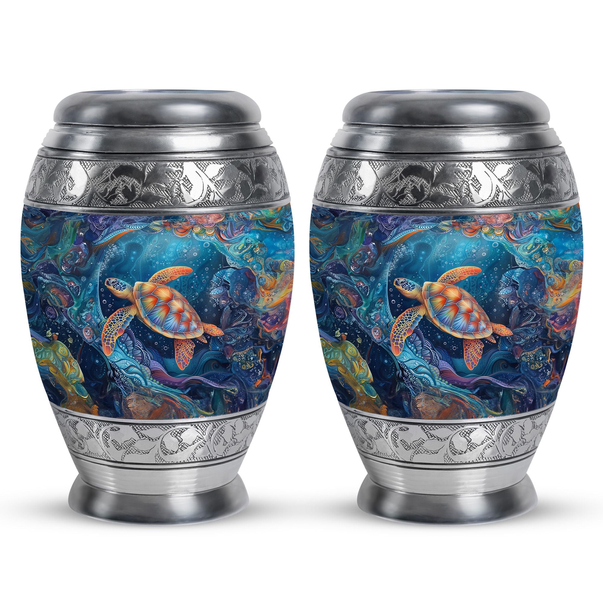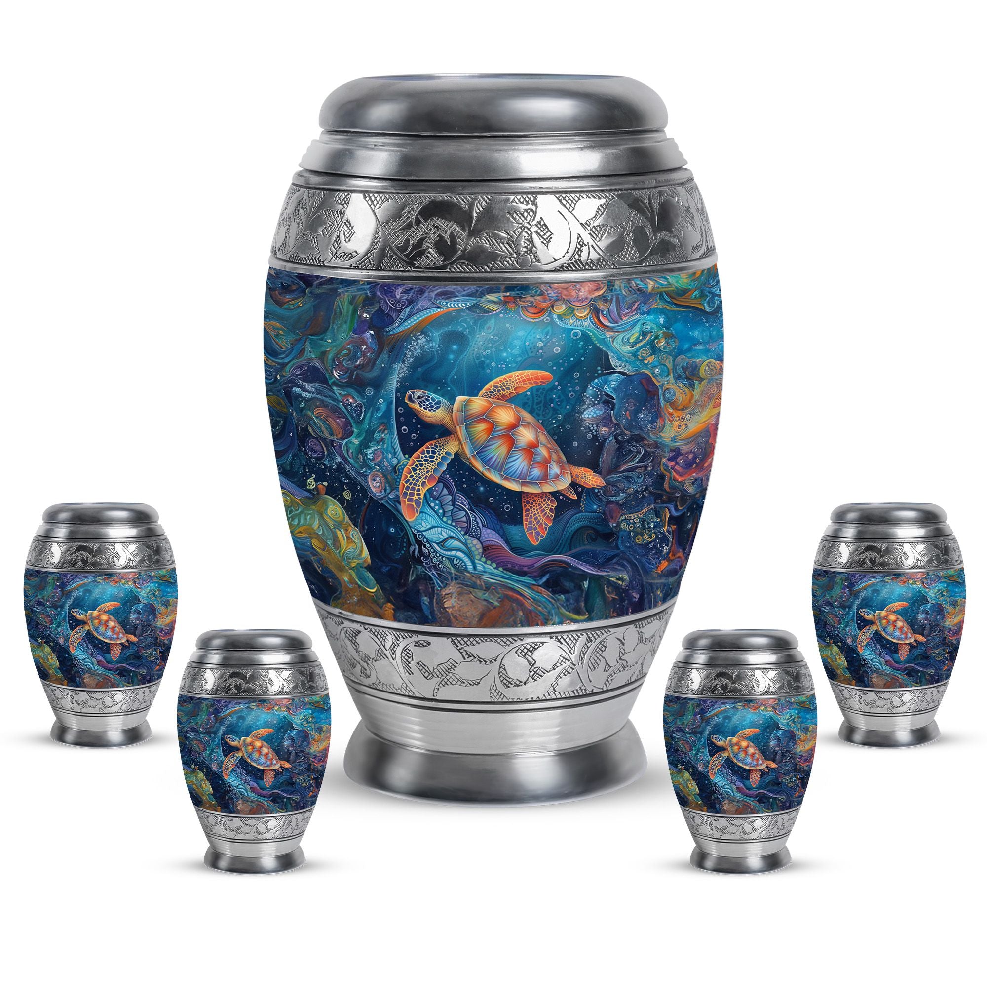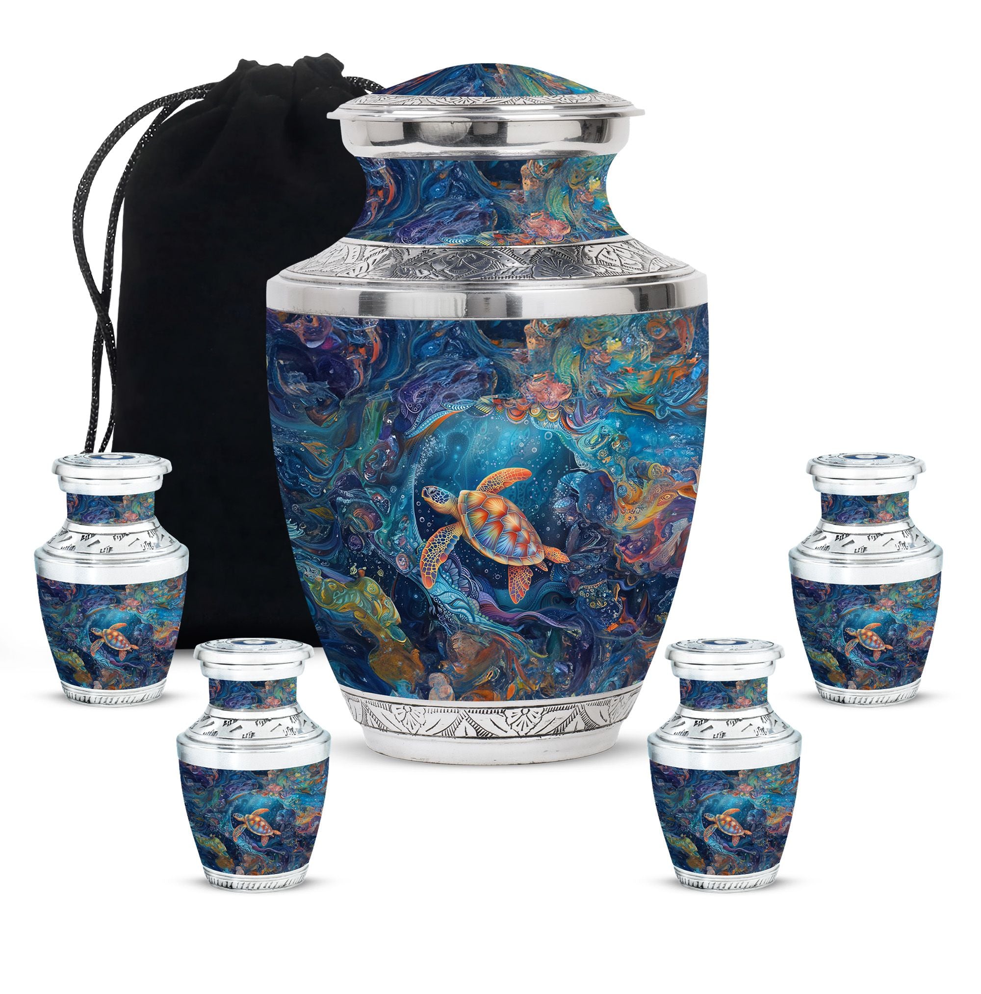 The Turtle Cremation Large Urns for Human Ashes represent tranquility, eternity, and the peaceful flow of underwater life. Designed as a mesmerizing urn, its ocean-inspired artistry provides a comforting way to celebrate your loved one’s life with dignity.