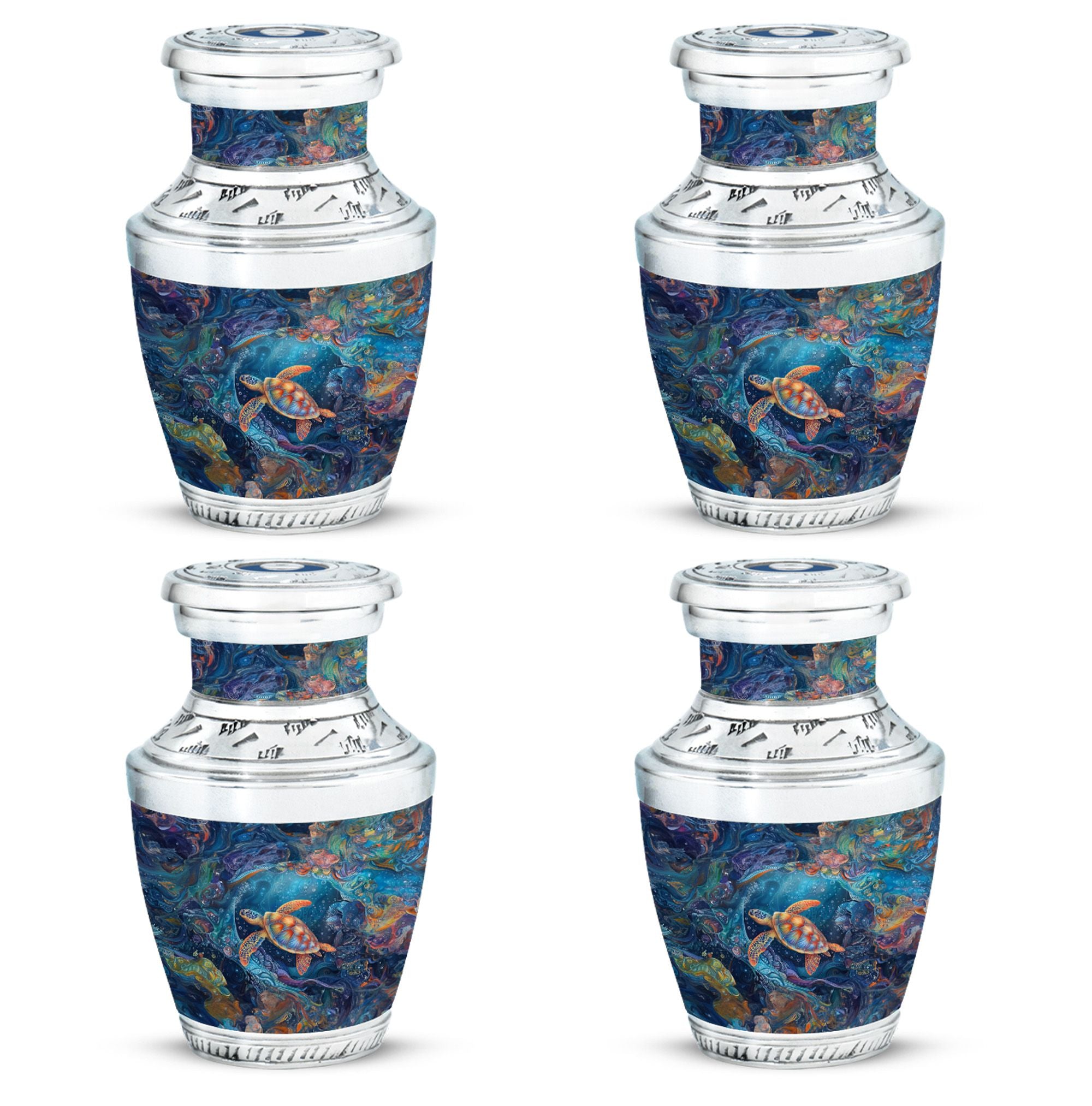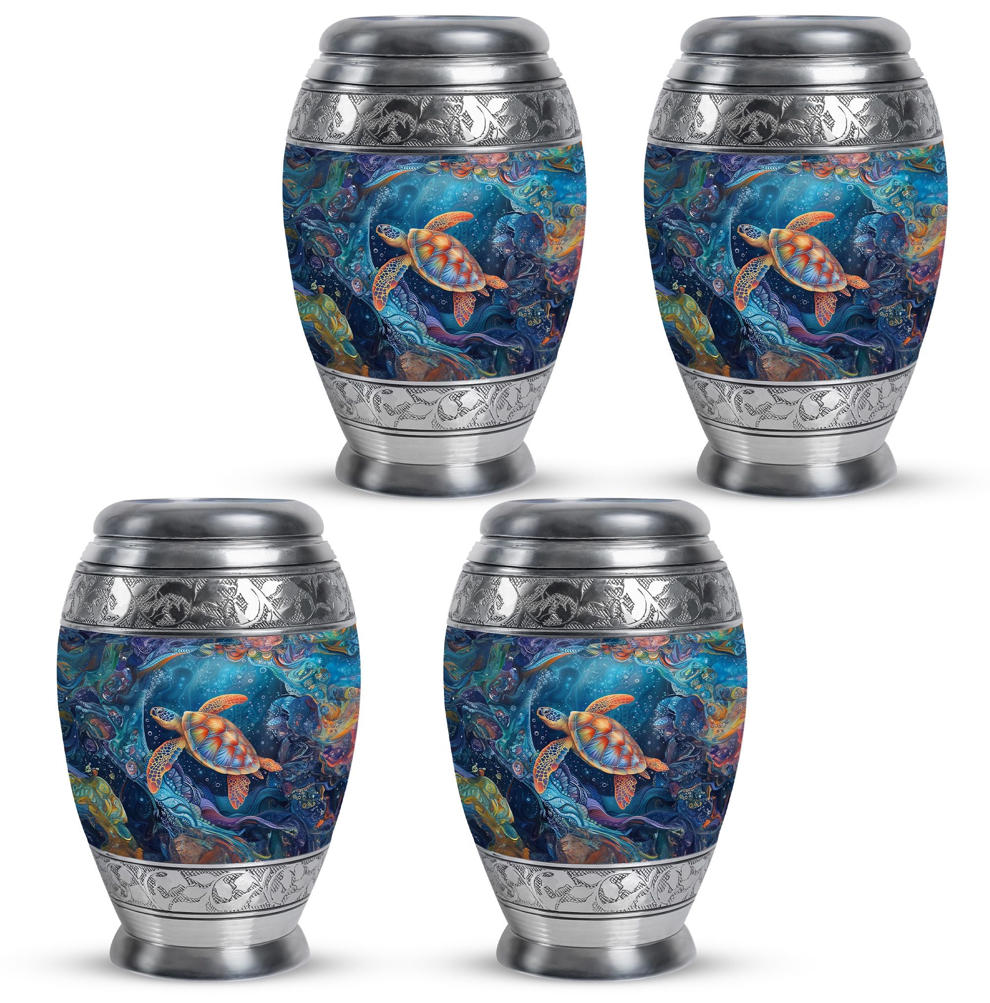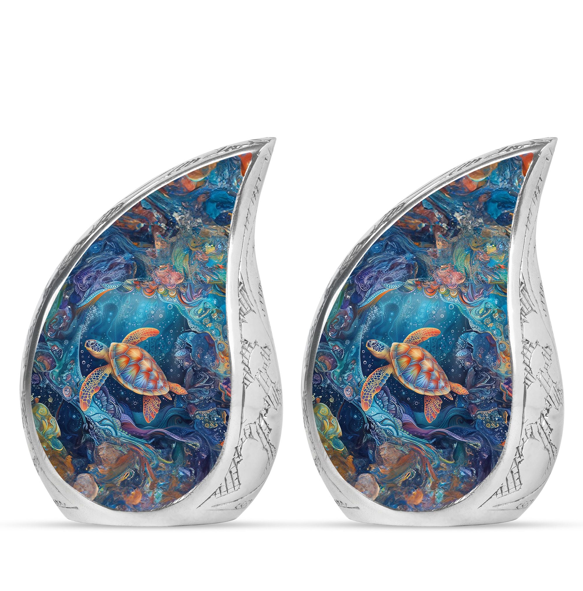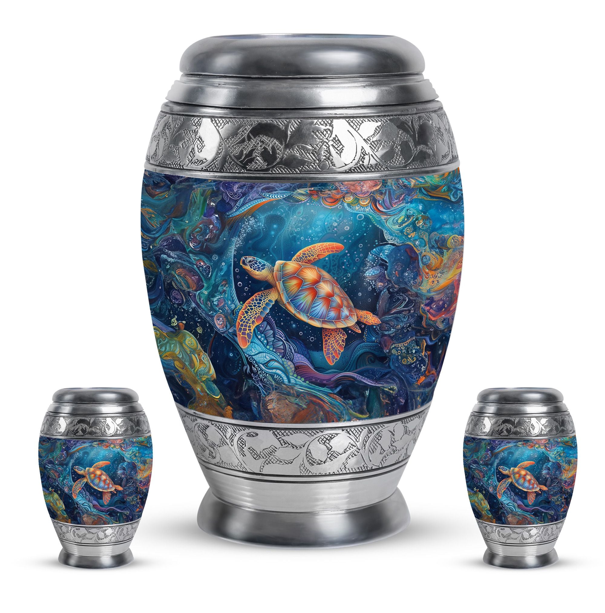 The Turtle Cremation Large Urns for Human Ashes represent tranquility, eternity, and the peaceful flow of underwater life. Designed as a mesmerizing urn, its ocean-inspired artistry provides a comforting way to celebrate your loved one’s life with dignity.