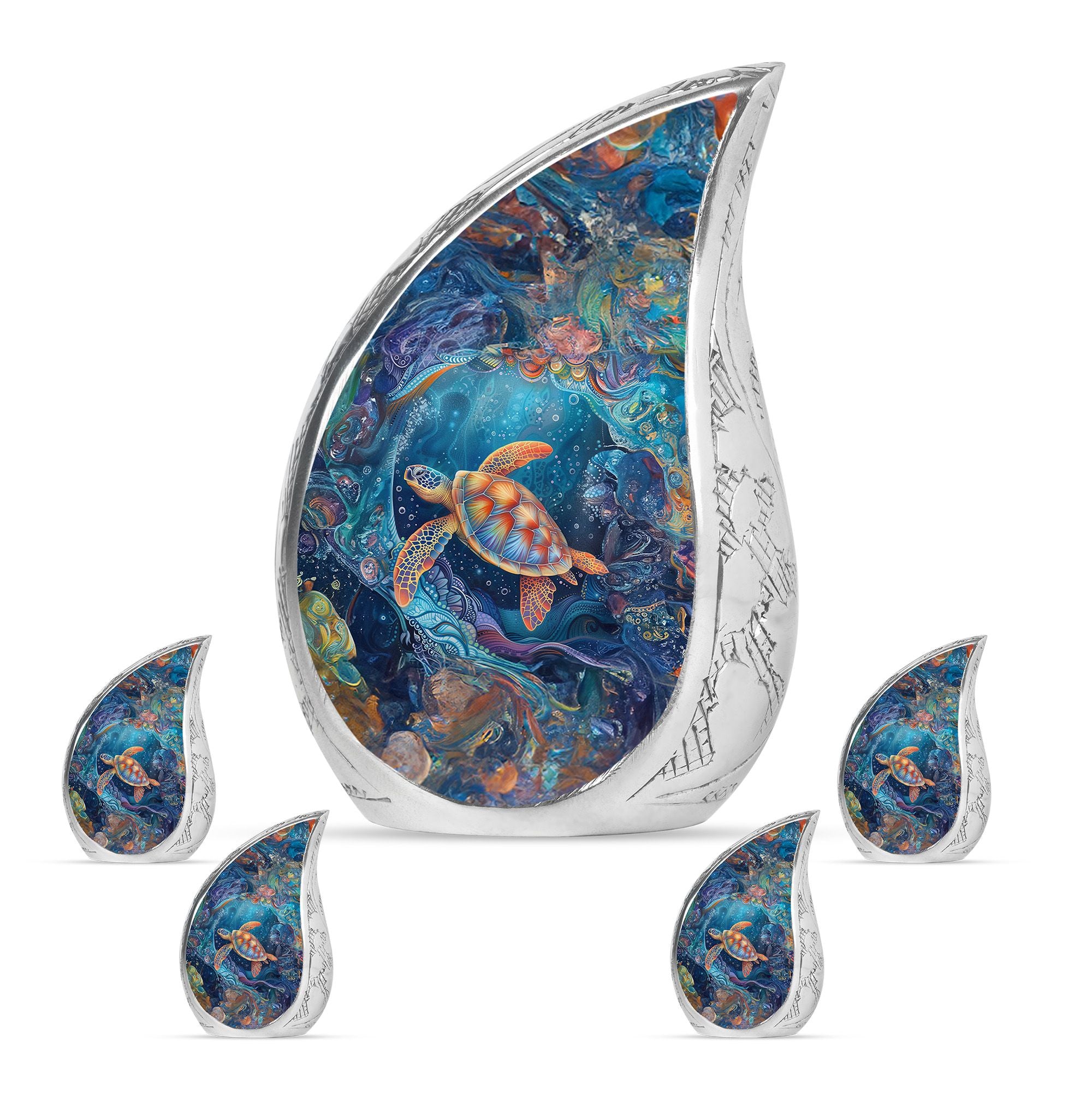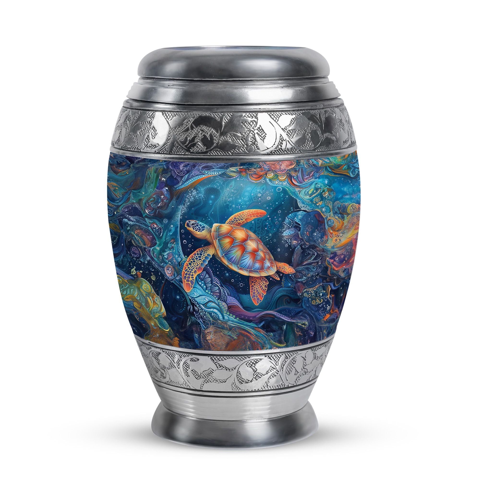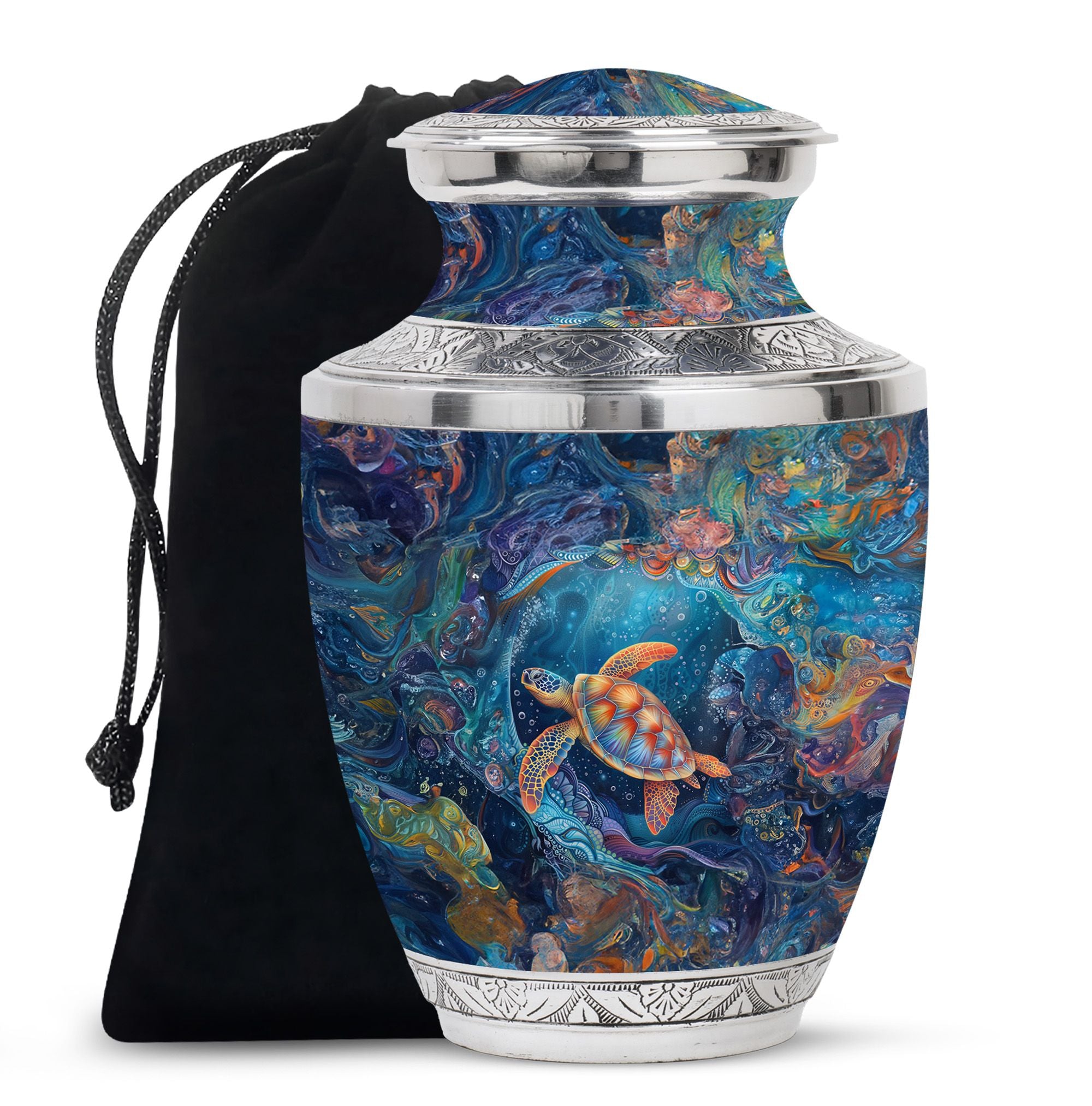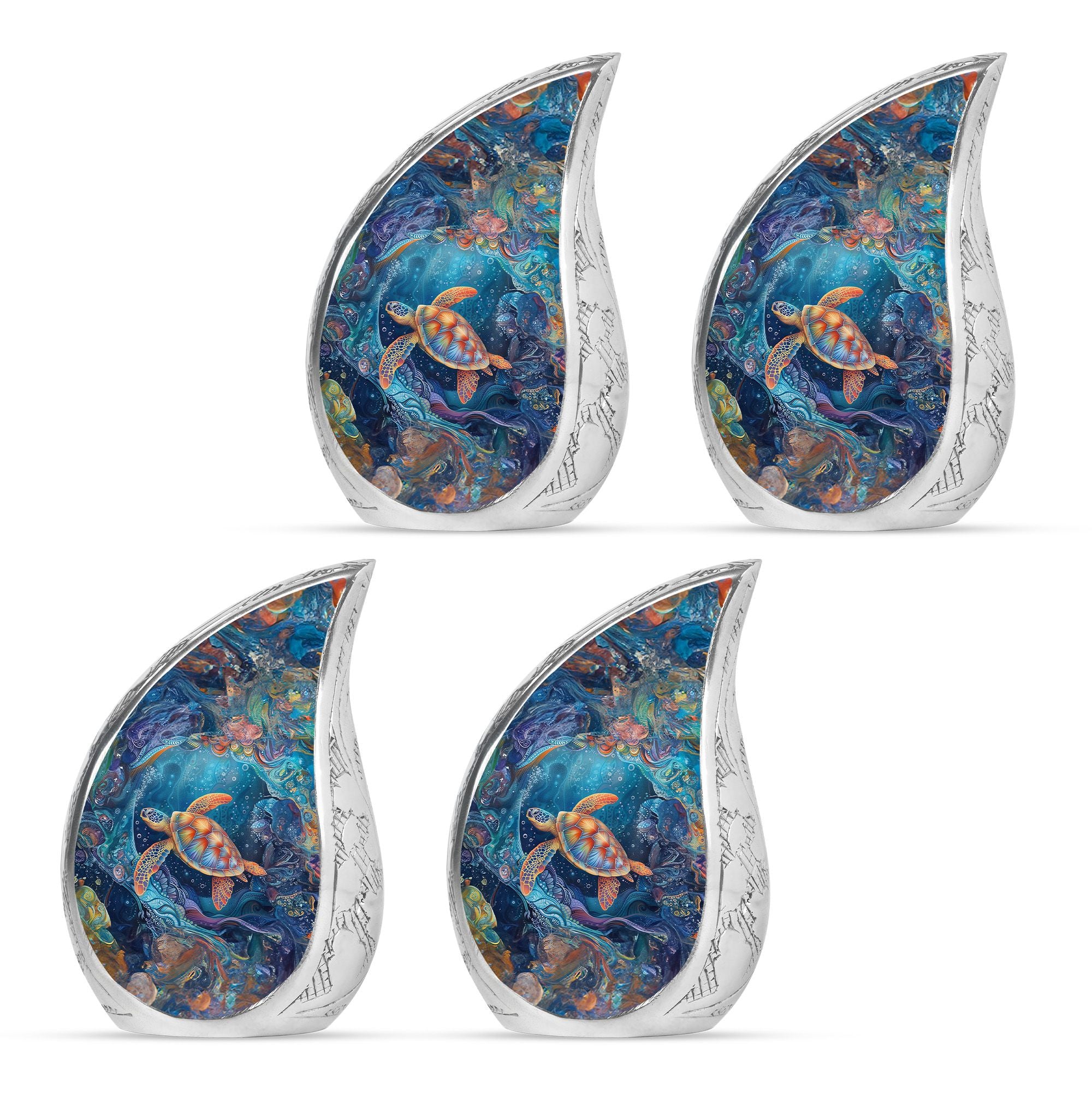 With its serene ocean design, this turtle urn offers solace as a unique tribute among urns women human ashes, ashes keepsake for men, or urns for adults men. Its elegance and symbolism ensure every memory is preserved with love.