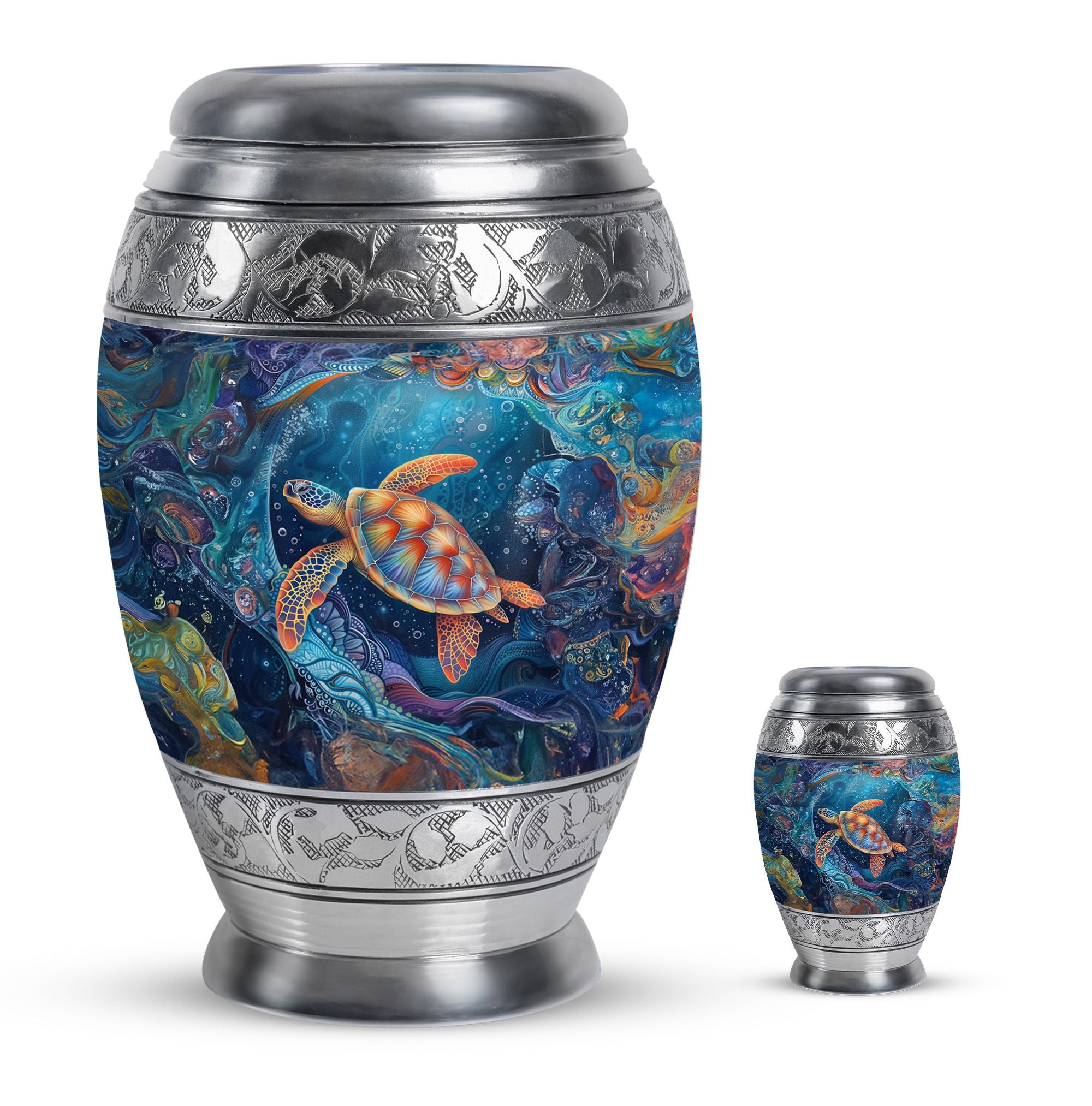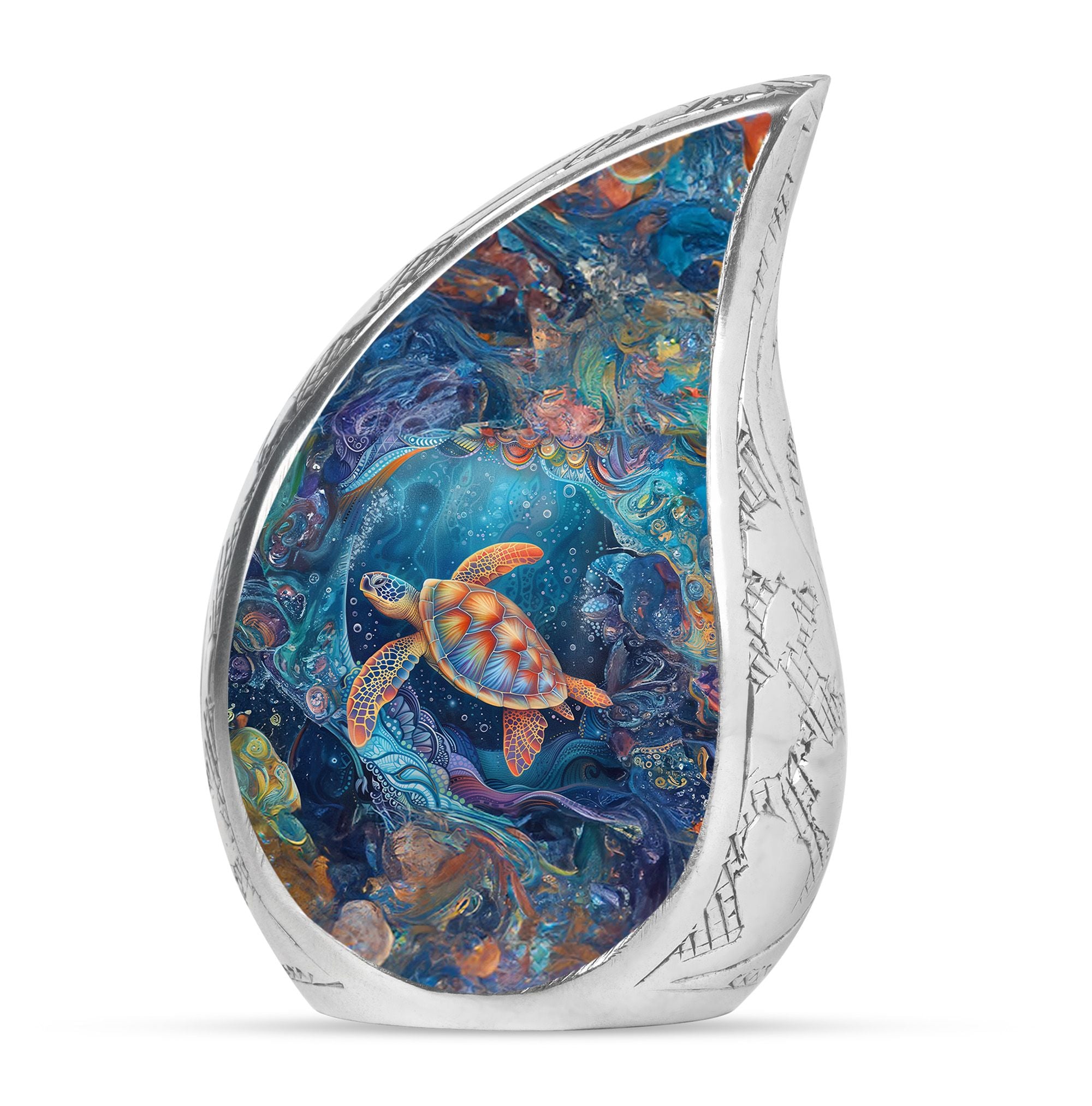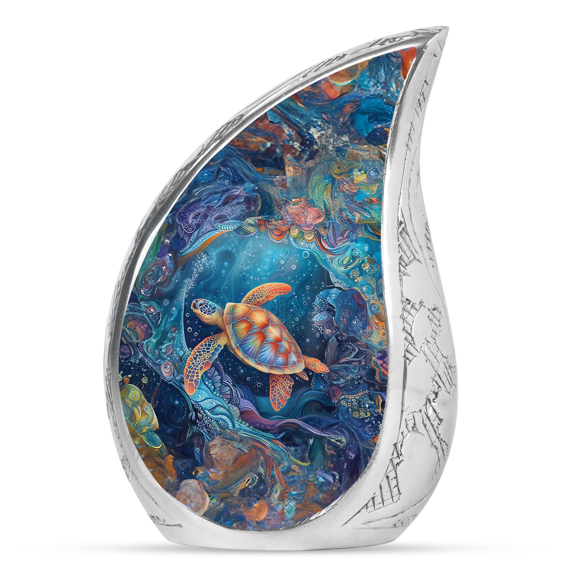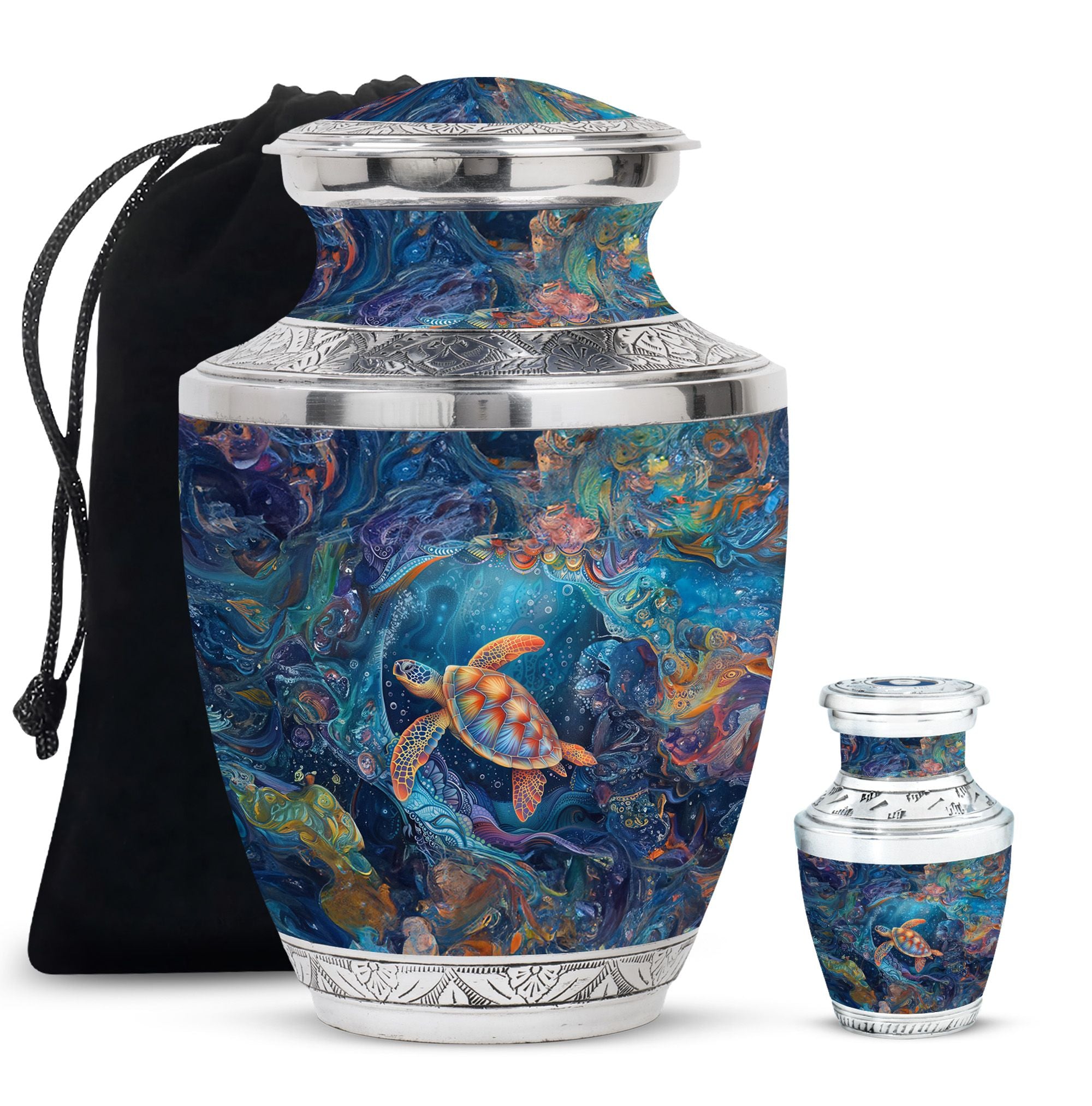 With its serene ocean design, this turtle urn offers solace as a unique tribute among urns women human ashes, ashes keepsake for men, or urns for adults men. Its elegance and symbolism ensure every memory is preserved with love.