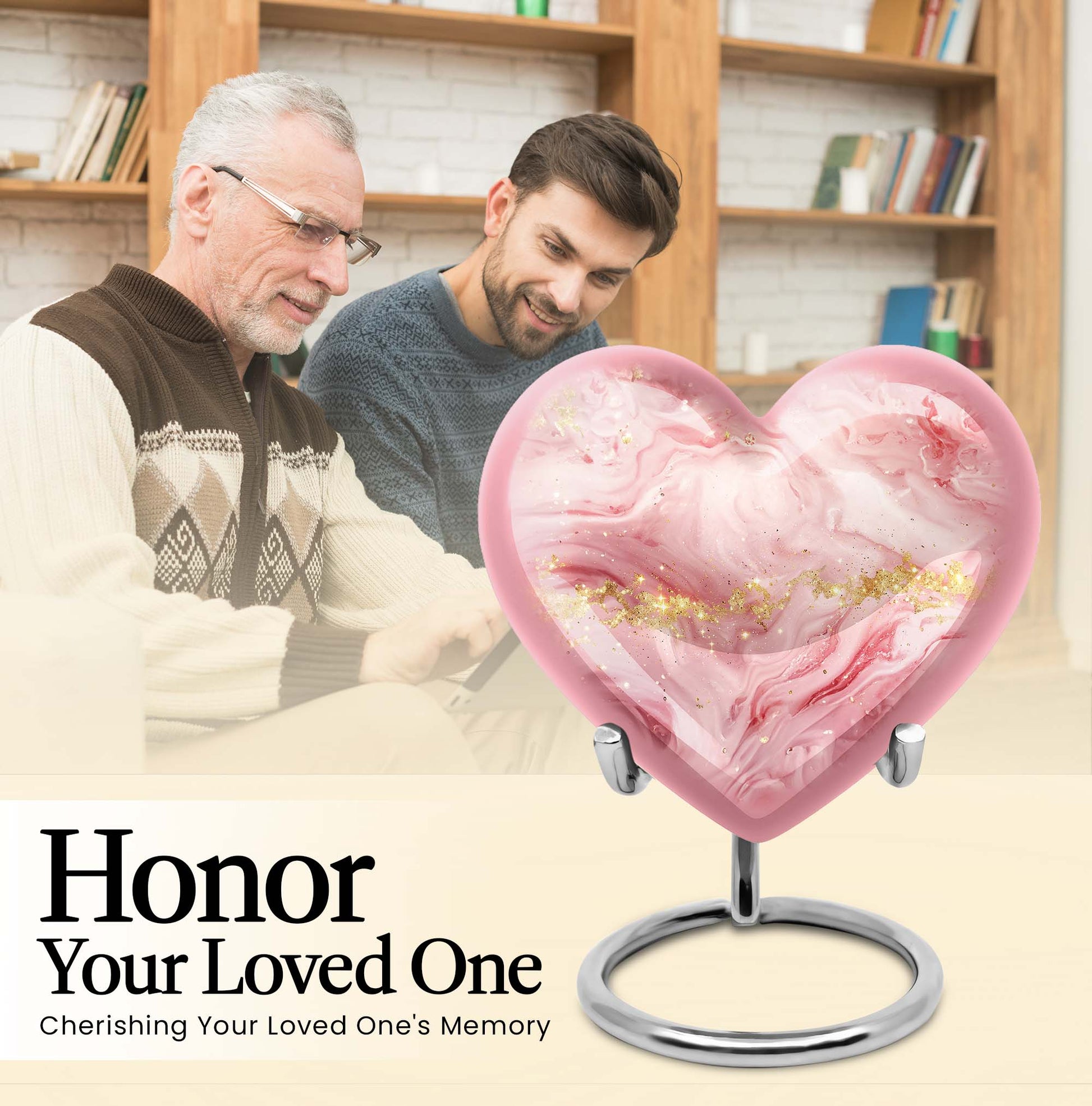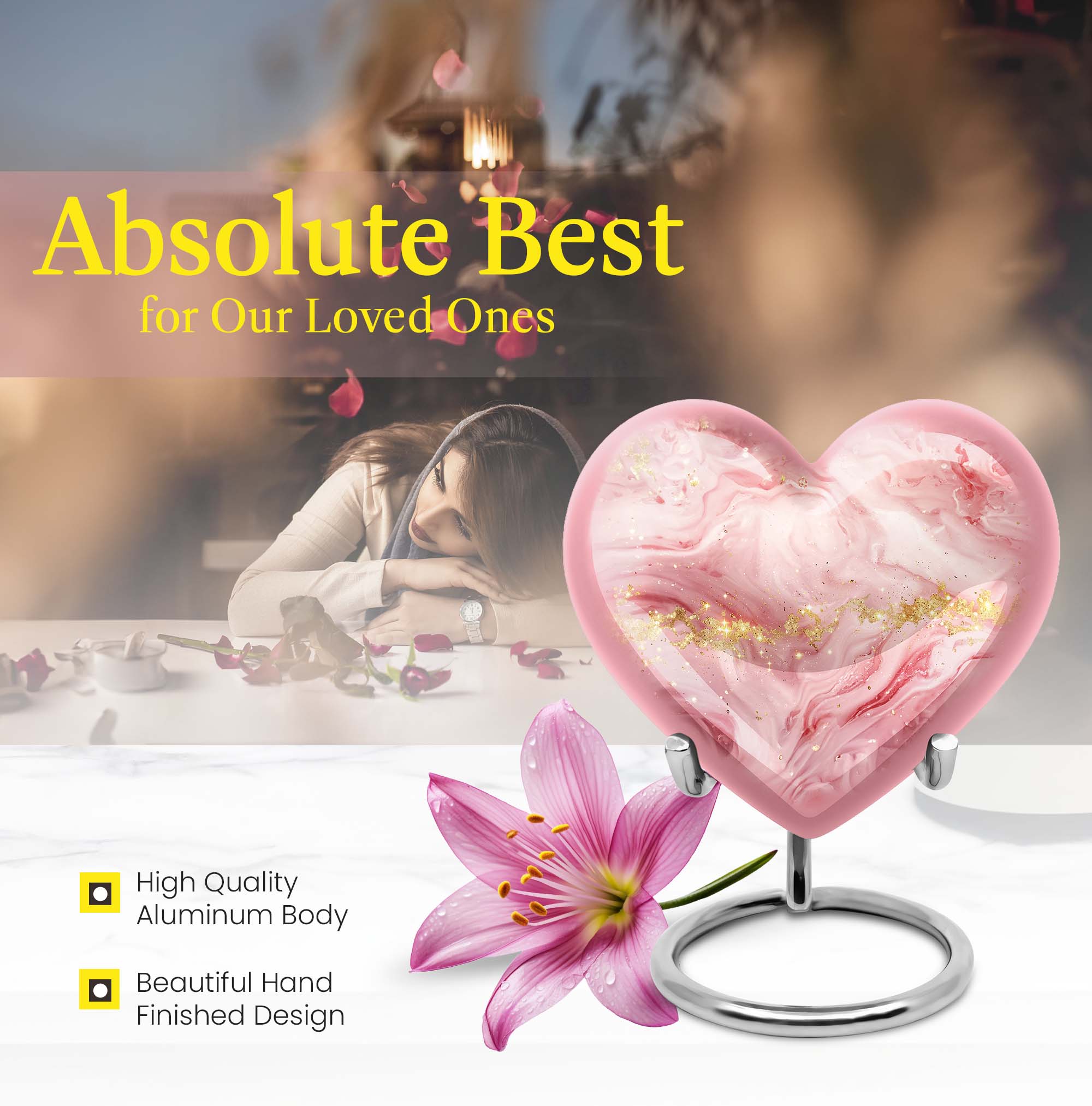 Preserve the memory of your loved ones with our 'Vibrant Swirl Urn' - a tastefully crafted cremation urn that assures both style and honor. Sized at 10-inches, the urn is spacious enough to hold around 200 cubic inches, symbolizing the imprint of cherished lives that leave behind measureless love. Fashionably crafted from durable aluminium, this 3.3 pounds urn showcases its superiority in longevity with its sturdy, corrosion-resistant properties. This hand-painted abstract themed large urn offers a Personalized touch with the availability of engraving names, affording you an opportunity to embolden the link with your beloved. Accompanying the urn is a velvet pouch designed for the containment of ashes, adding an extra layer of care. Whether searching for 'funeral urns for burial', 'cremation urn for dad' or 'adult burial cremation urns', this tasteful piece assures a unique commemoration of a priceless journey. Placing the 'Vibrant Swirl Urn' as a centerpiece during memorial ceremonies amplifies its symbolic relevance, encapsulating emotions, love, and perpetuating the essence of your loved ones.