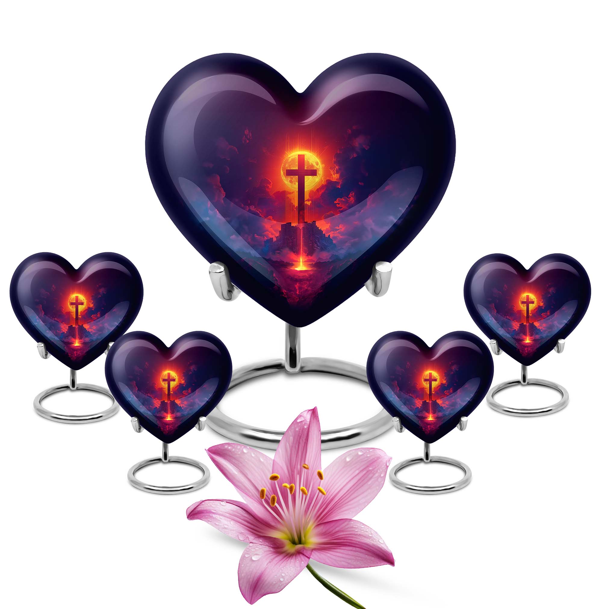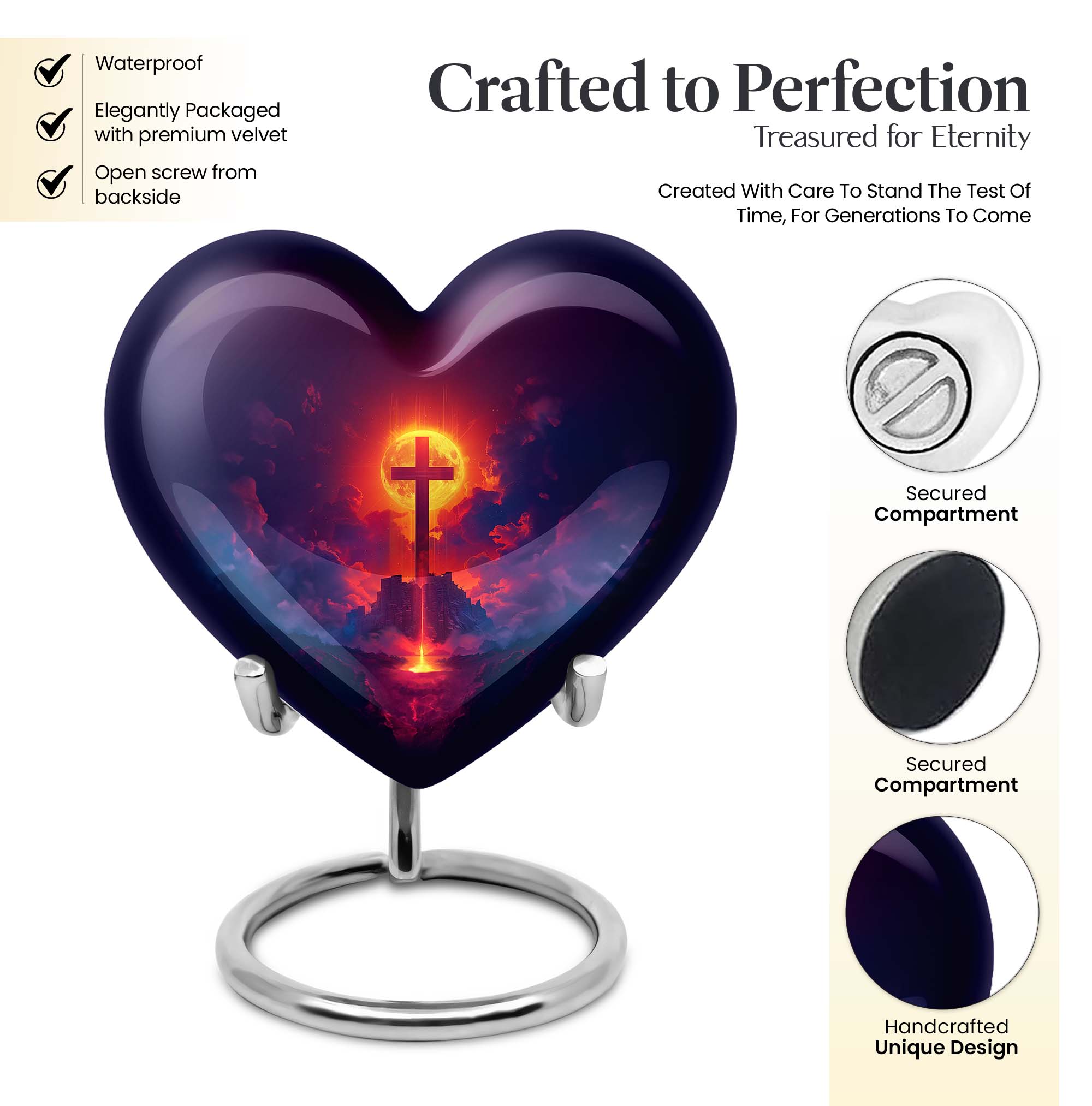 Discover a dignified, loving way to remember your loved ones with our 10-inch Heart Urn. Crafted from durable aluminium, this cross urn weighs a sturdy 3.3 pounds and carries up to 200 cubic inches of ashes - a fitting tribute for any man. The velvet pouch included provides a soft, respectful containment for the ashes. While the large size ensures it makes a decorous statement, its real charm comes from the striking Aurora Borealis theme, which lends a heavenly, peaceful aura. This cremation urn, specifically suited for funeral urn purposes, can also be personalized with engraved names for that additional touch of sentiment. Perfect for adults and seniors, this urn offers a beautiful memorial solution. Keywords that fit this product: cross Urn, funeral urn for men ashes, adult urns for ashes, Decorative Human Ashes Urns, metal urn.