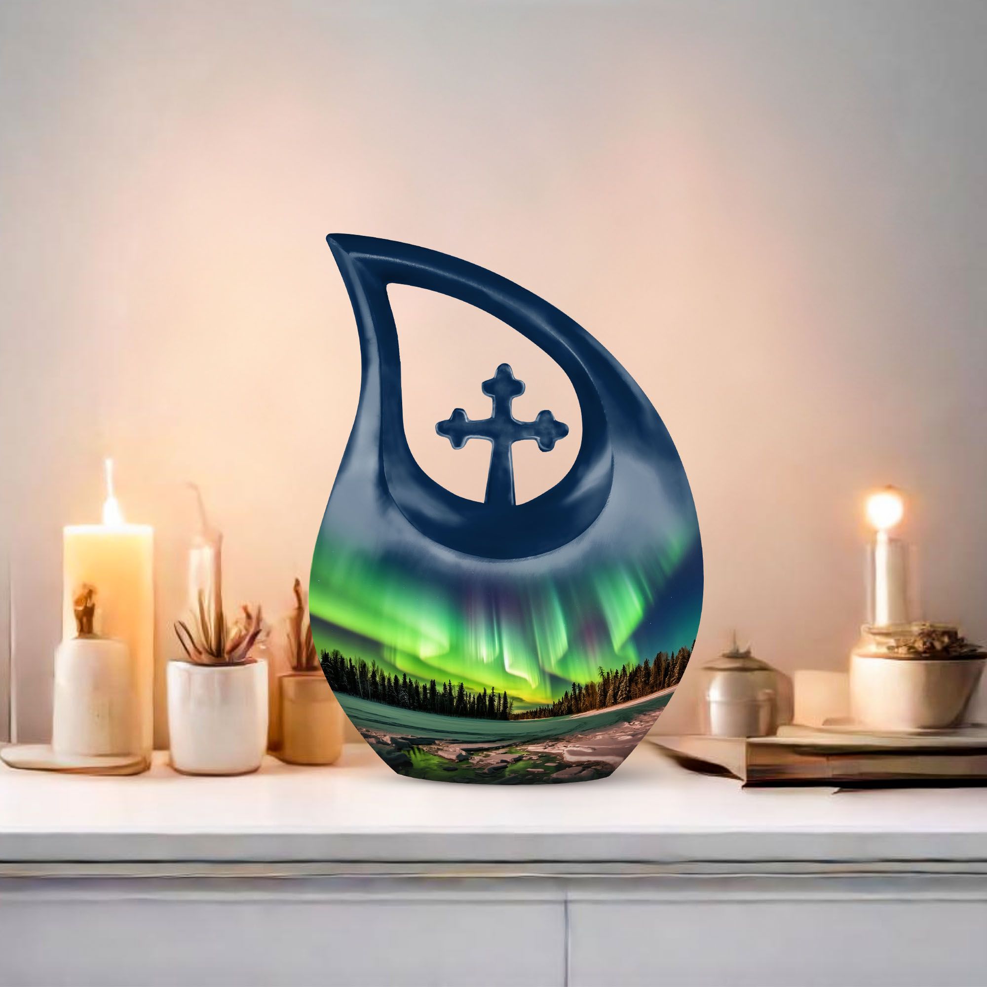 The Aurora Borealis Memorial Urn captures the breathtaking beauty of the Northern Lights, symbolizing eternal peace and the continuation of love beyond life. This exquisite piece is thoughtfully designed to help families cherish and celebrate their loved one’s memory. Perfect for those seeking urns for human ashes adult large, it serves as both a beautiful keepsake and a comforting reminder of everlasting light.