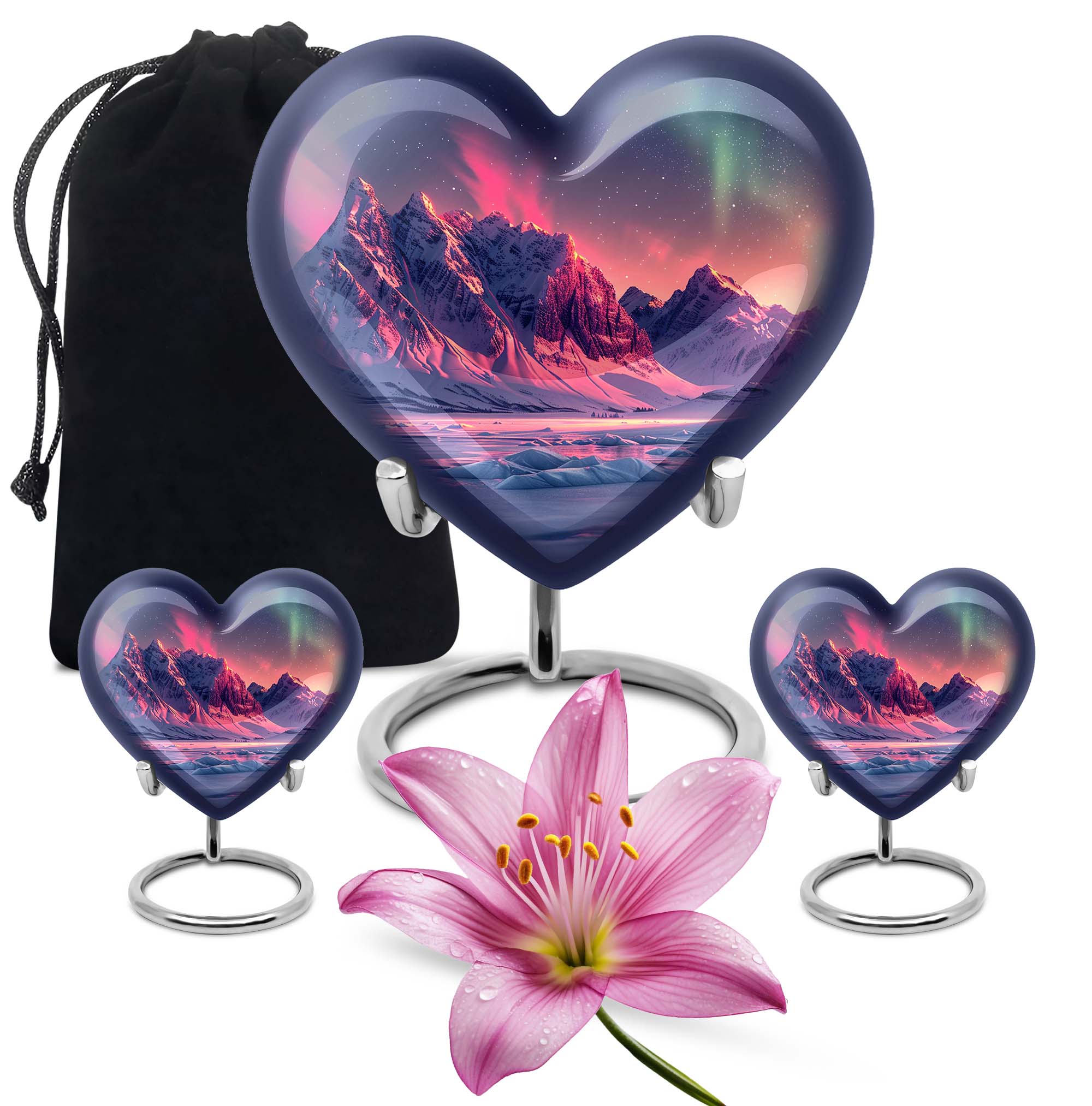 Honor the memory of your loved ones with the AURORA Urn, a unique selection amongst burial urns for human ashes adult. This elegant memorial urn is designed with a high capacity of 200 cubic inches, ensuring enough space for the containment of adult remains. Molded from supreme aluminium material for enduring durability and finished with an abstract theme, it exudes a heart-warming vibe that transcends mundane norms. This large urn stands 10 inches in height and weighs 3.3 pounds, a substantial and firm creation. Along with the AURORA Urn, the package contains a velvet pouch for secure containment of ashes. Make your memorial urn special by personalizing it with engraved names; a feature readily available on this urn. A powerful symbol for remembrance, this cremation urn fits the search terms 'cremation urns for human ashes men', 'funeral large', 'adult urn', and 'cremation urns for adults'. The AURORA Urn is an epitome of sublime symbolism and flawless construction!