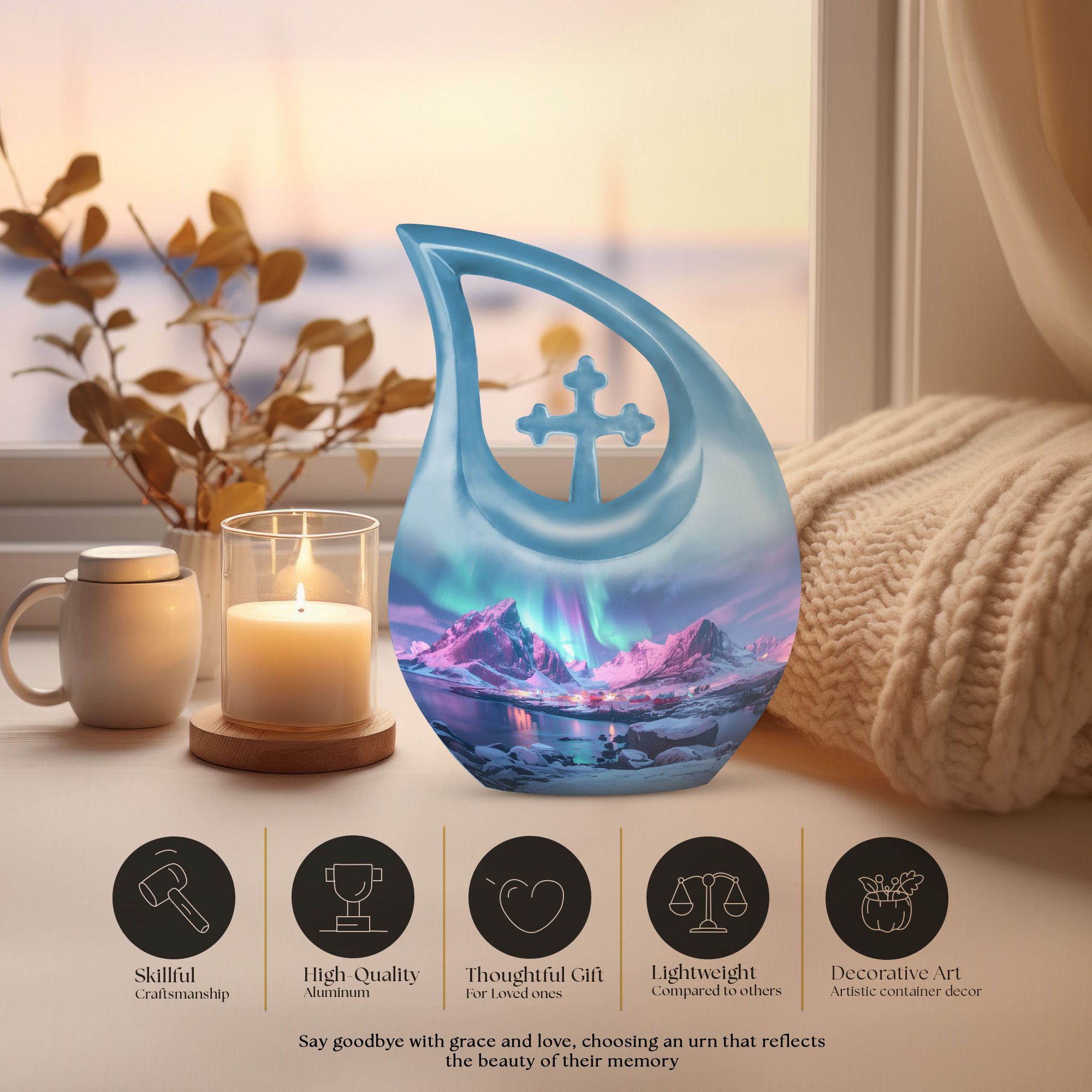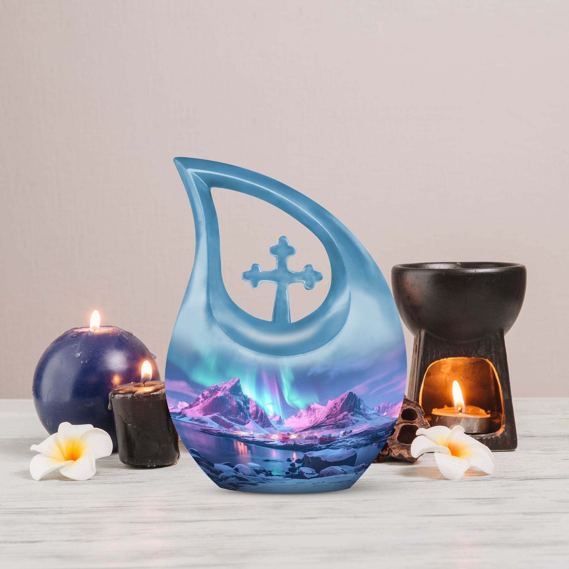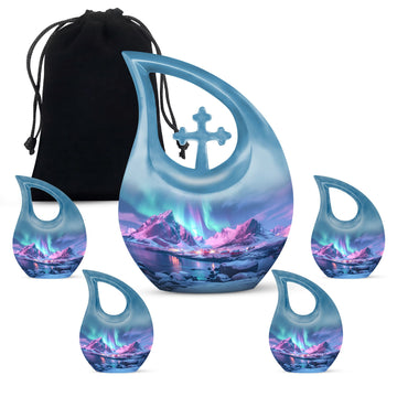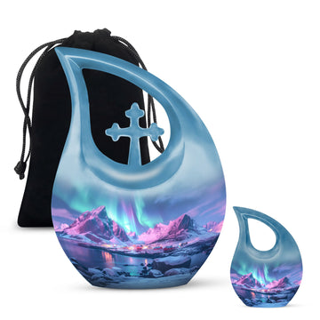Honor cherished memories with the Northern Lights Funeral Urn, a comforting tribute crafted for those seeking a peaceful resting place for their loved ones. This design is ideal for families searching for a small cremation urn, adult cremation urns, or mini cremation urns for human ashes that carry both beauty and meaning.