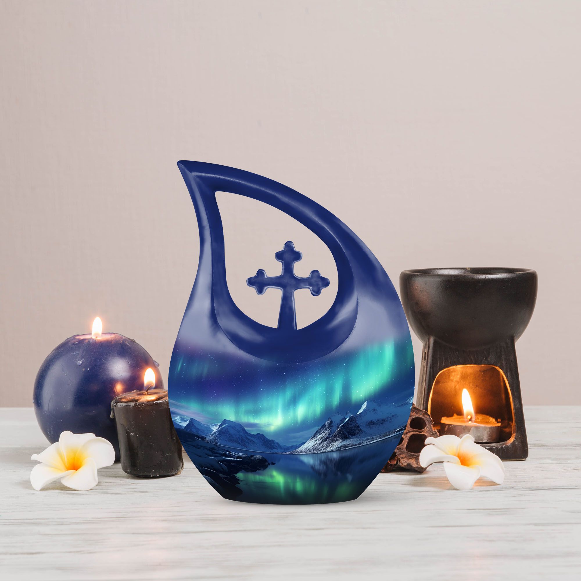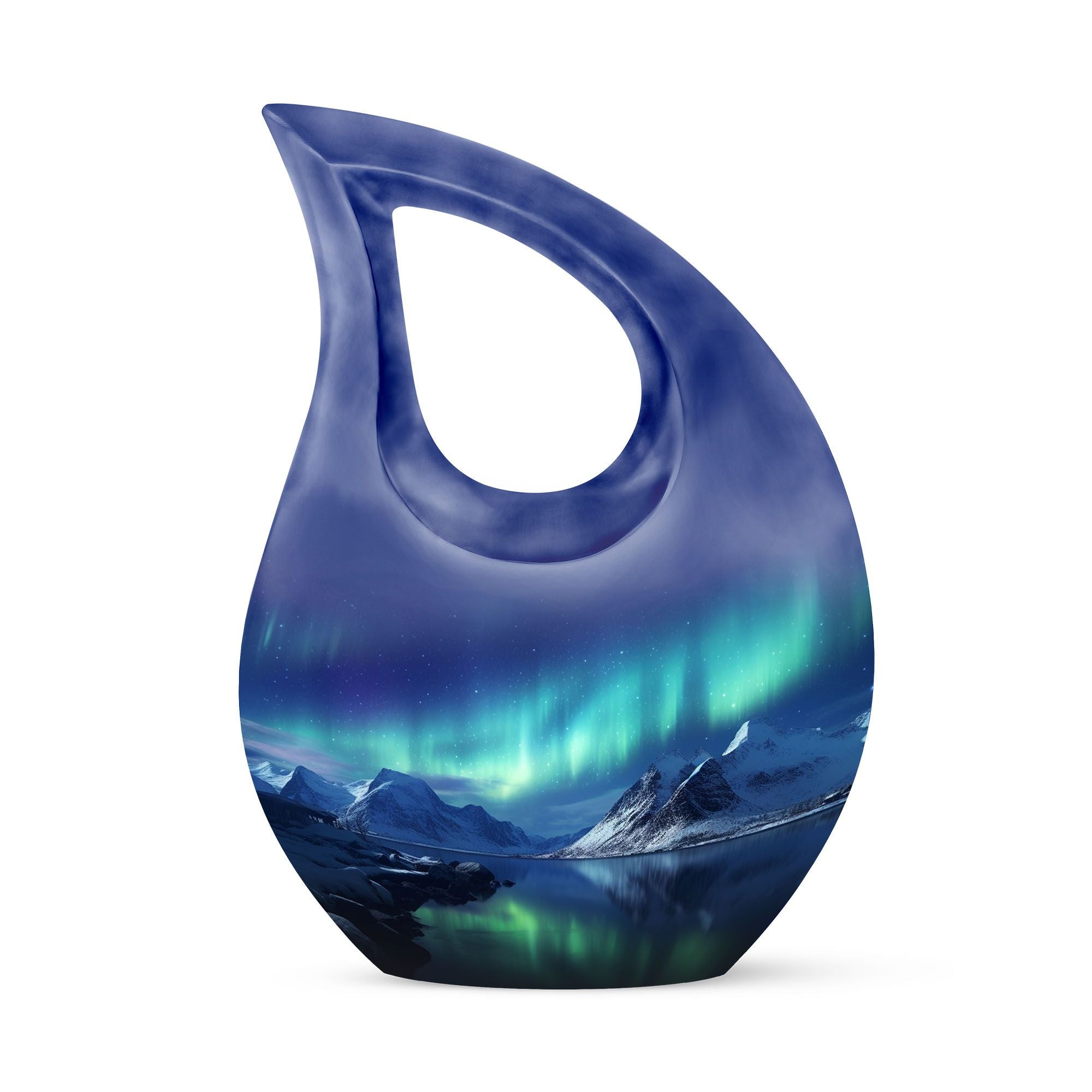 The Northern Lights Memorial Urn for Female is a breathtaking tribute that captures the tranquil beauty of the Aurora Borealis. Designed to reflect eternal peace and remembrance, this funeral urn symbolizes hope, love, and the gentle transition from this world to the next. Its calming hues and graceful form create a lasting memorial for those who brought light and serenity into life’s journey.