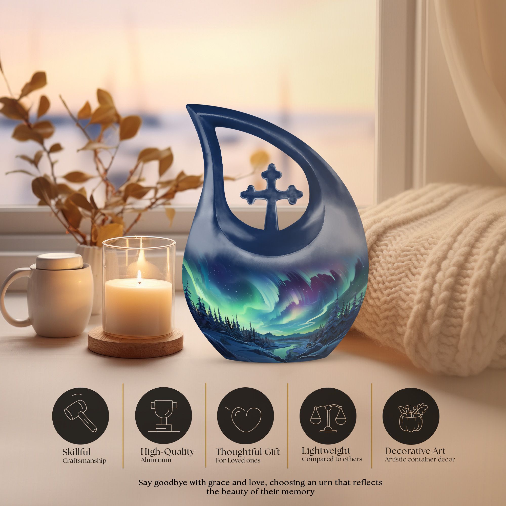 The Northern Light Snow Forest Urn is more than a vessel — it’s a timeless tribute. With its serene design and heartfelt symbolism, it serves as a lasting reminder of love that continues to shine, even beyond goodbye. A thoughtful choice among memorial keepsakes for ashes, this urn turns remembrance into art.