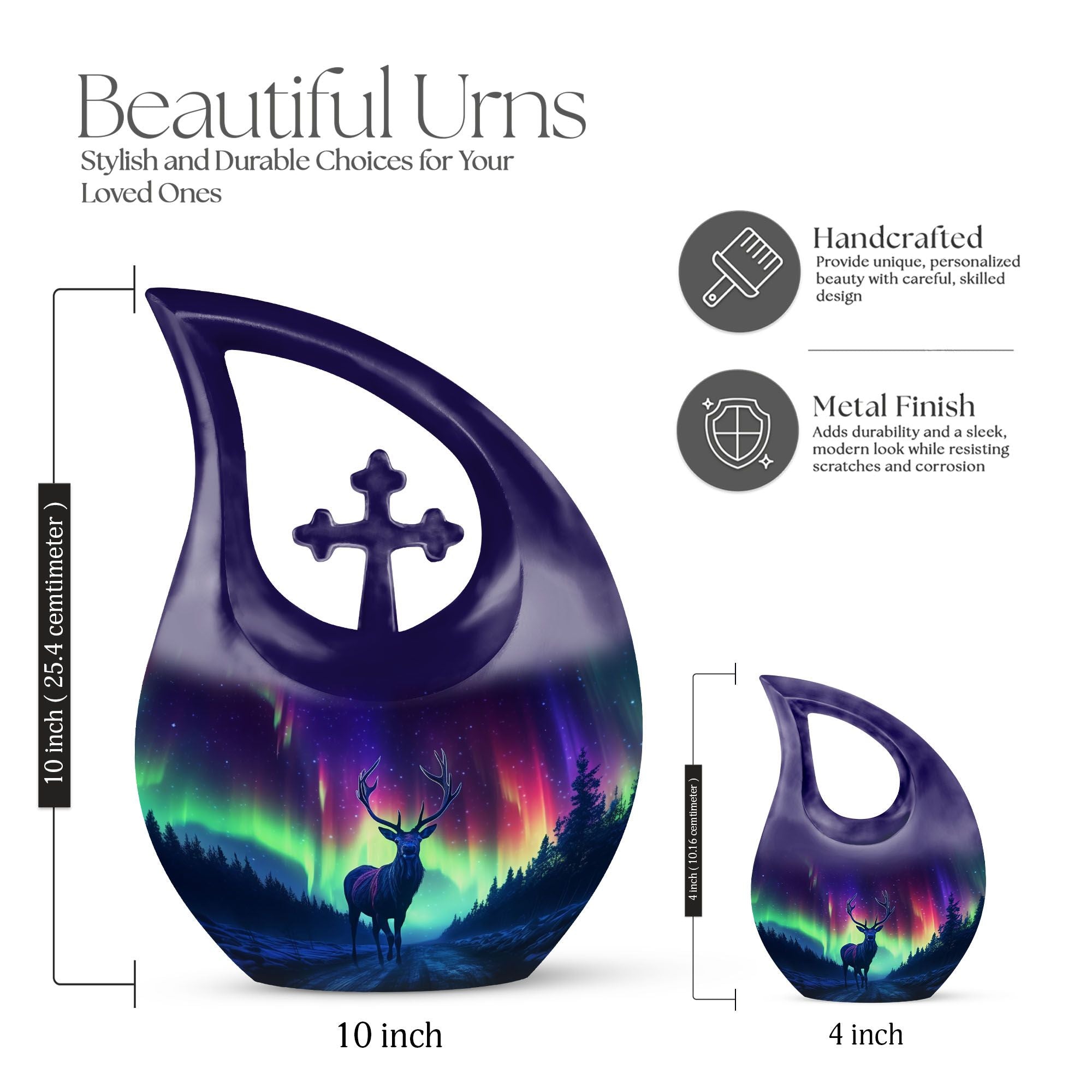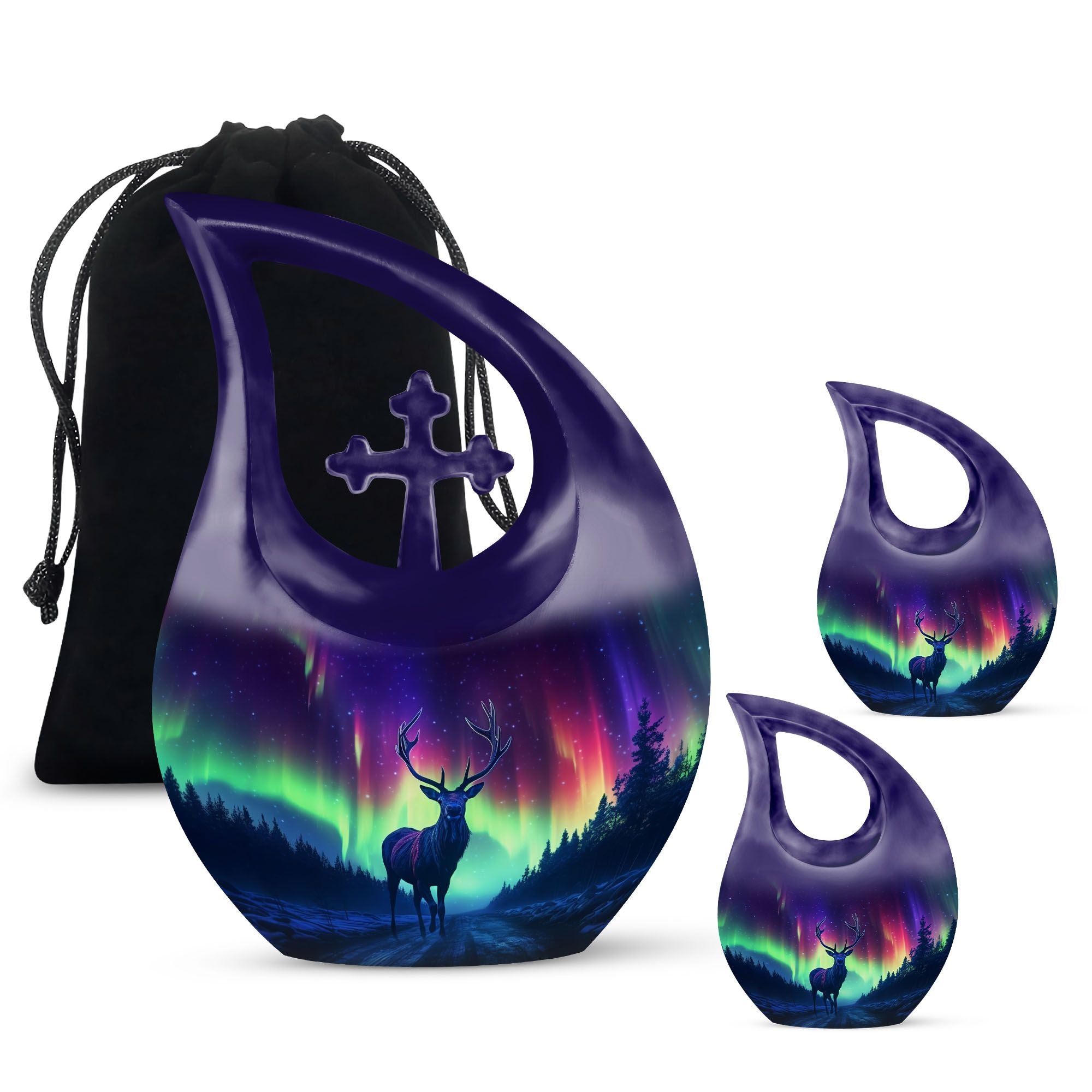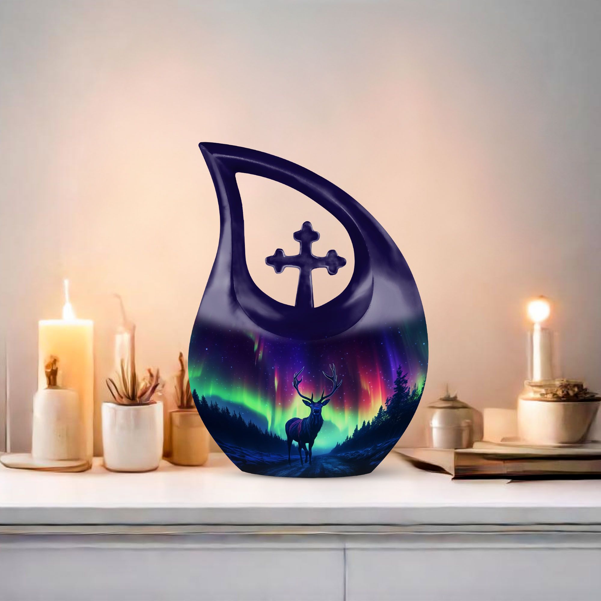 Celebrate the memory of your loved one with the Reindeer Memorial Urn, inspired by the Aurora Borealis. This beautifully designed cremation urn provides a meaningful way to honor cremation ashes, with both a full-size urn and mini keepsake options. Ideal for families seeking mini urns for human ashes mom, mini urns for human ashes dad, or mini keepsake urns for human ashes, it ensures every memory is cherished.