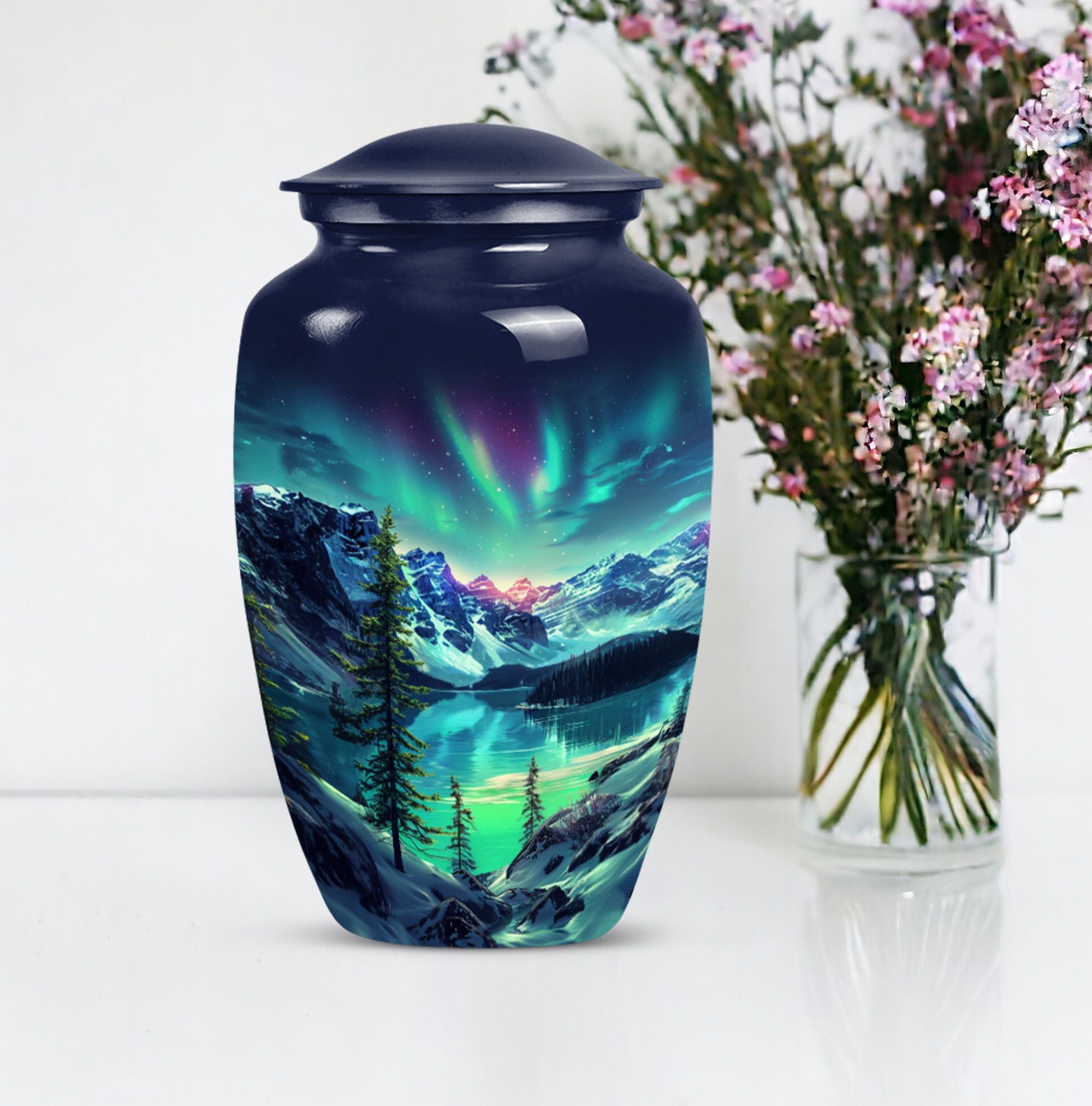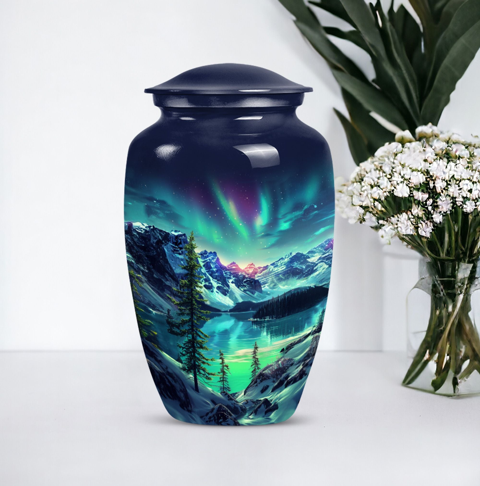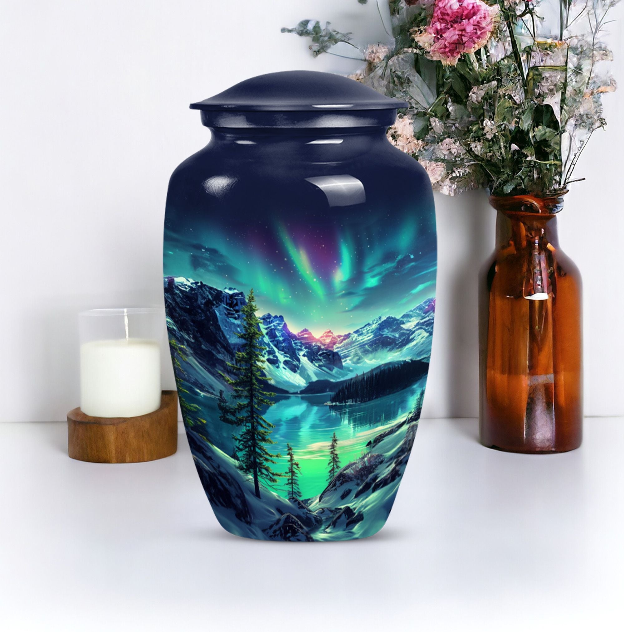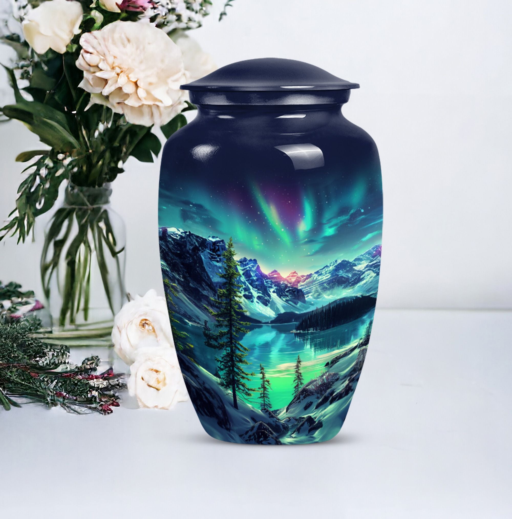 The Northern Lights Memorial Keepsake Urn captures the awe-inspiring beauty of the aurora, symbolizing peace and eternity. This radiant aurora borealis urn offers families a meaningful way to preserve memories, making it a dignified choice for honoring both men and women.