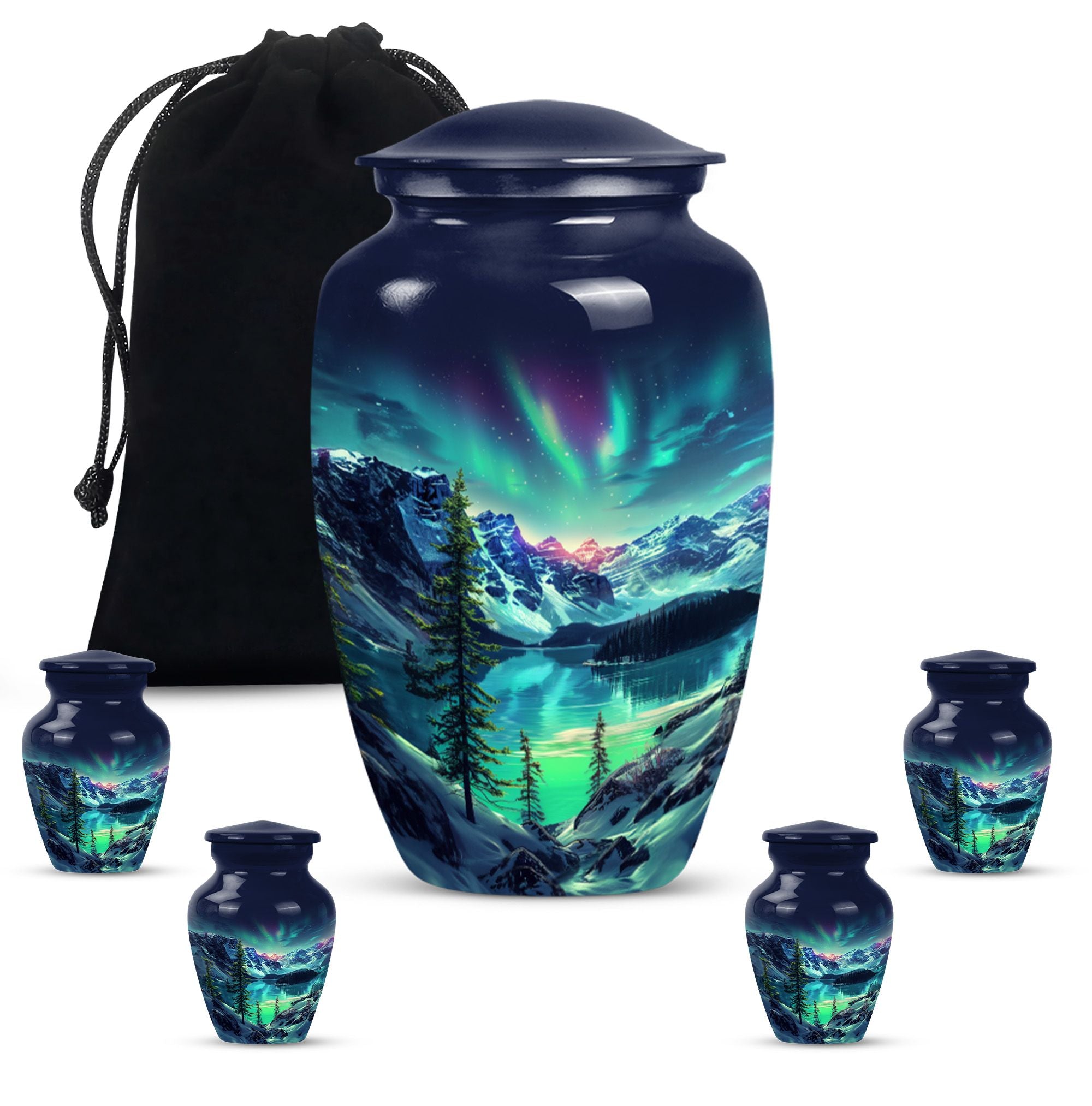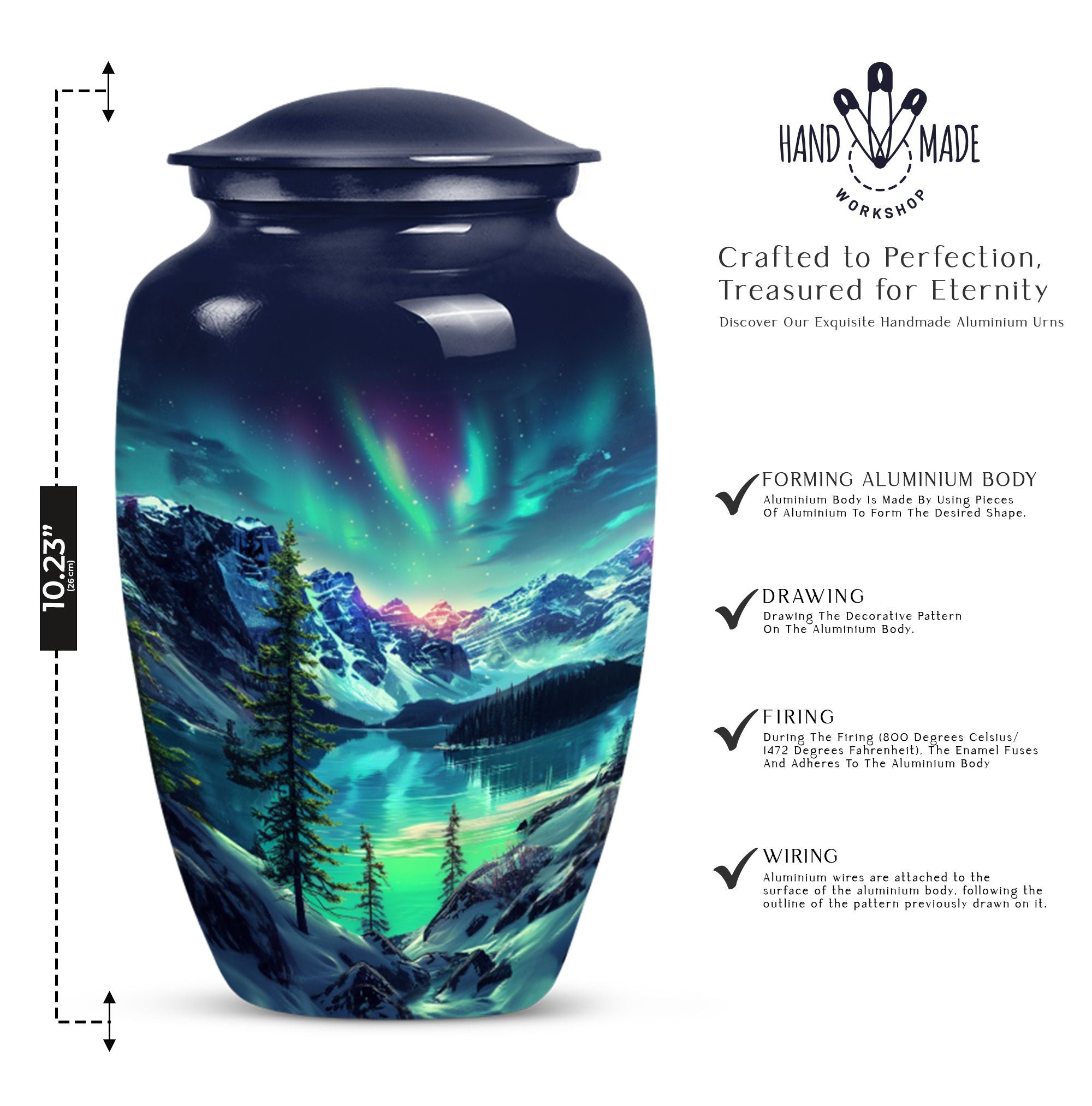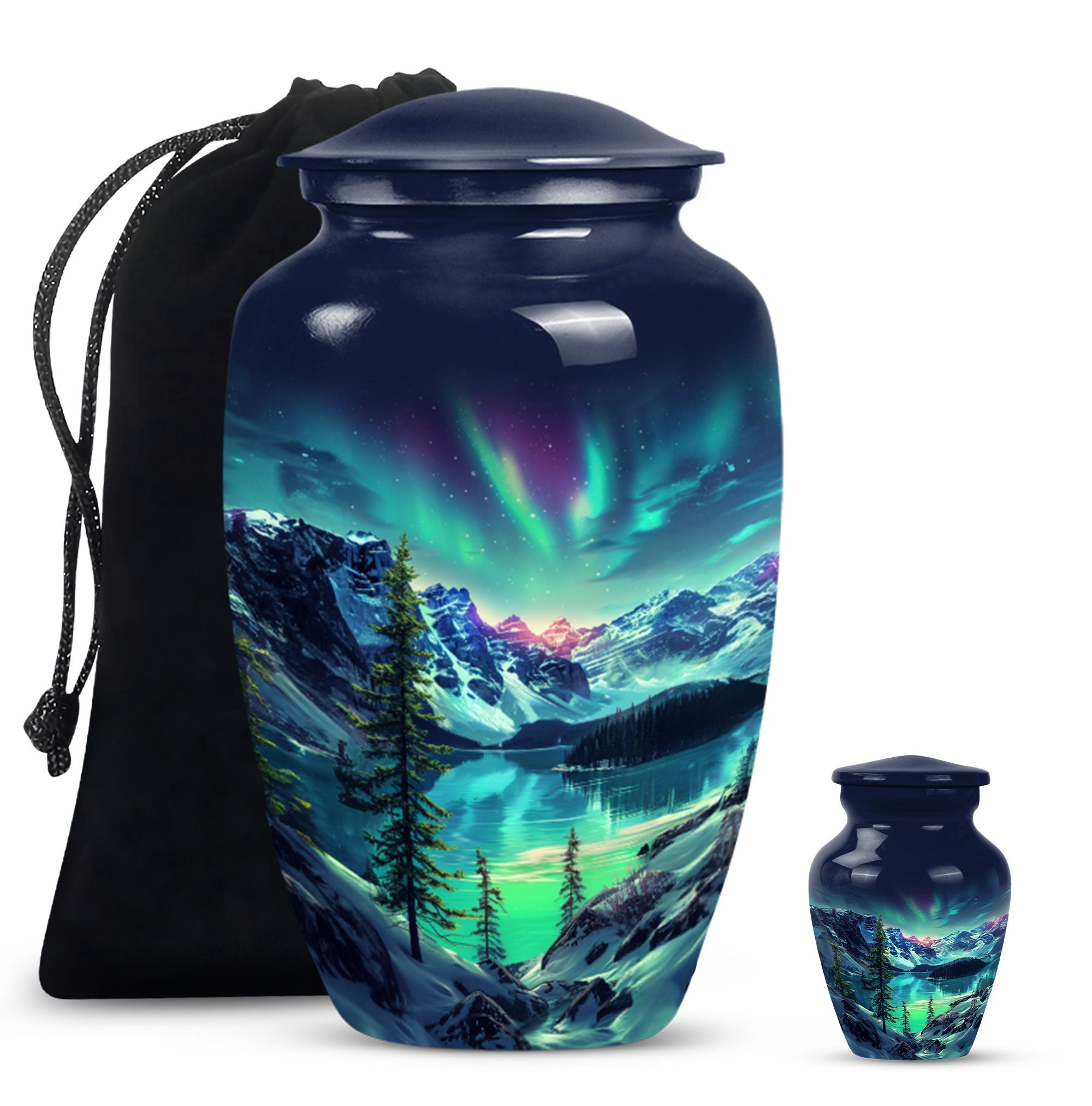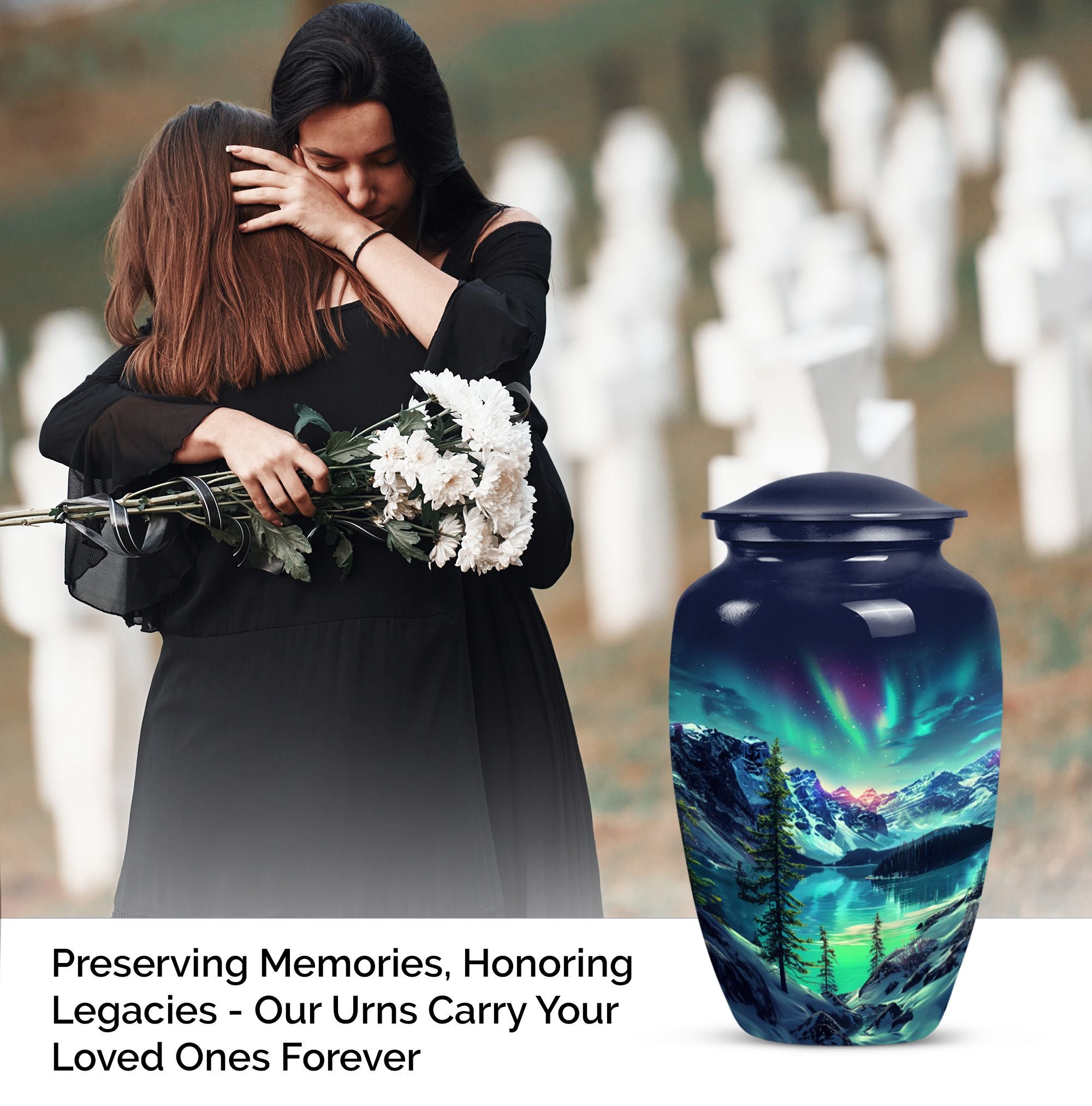 The Northern Lights Memorial Keepsake Urn captures the awe-inspiring beauty of the aurora, symbolizing peace and eternity. This radiant aurora borealis urn offers families a meaningful way to preserve memories, making it a dignified choice for honoring both men and women.