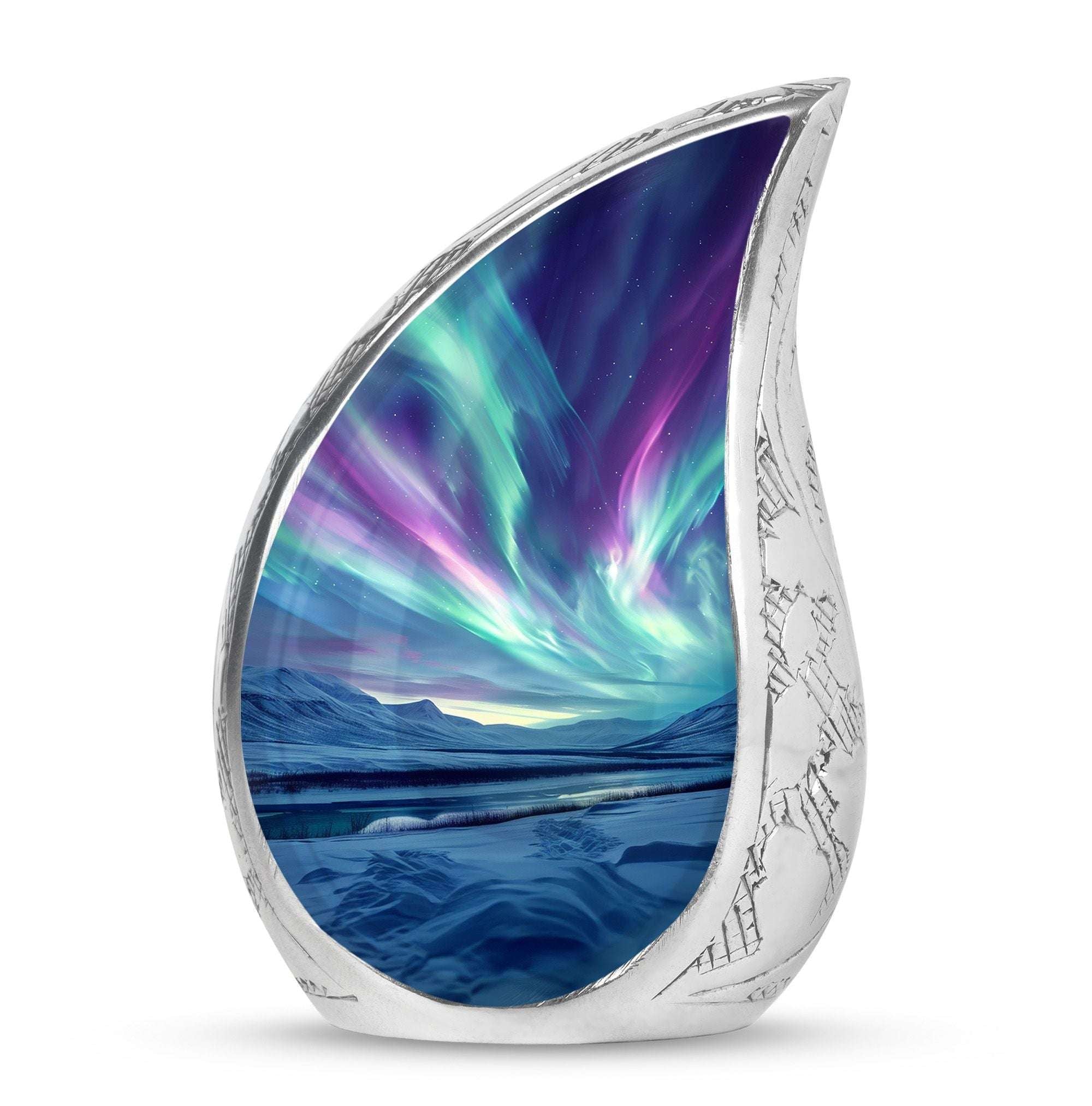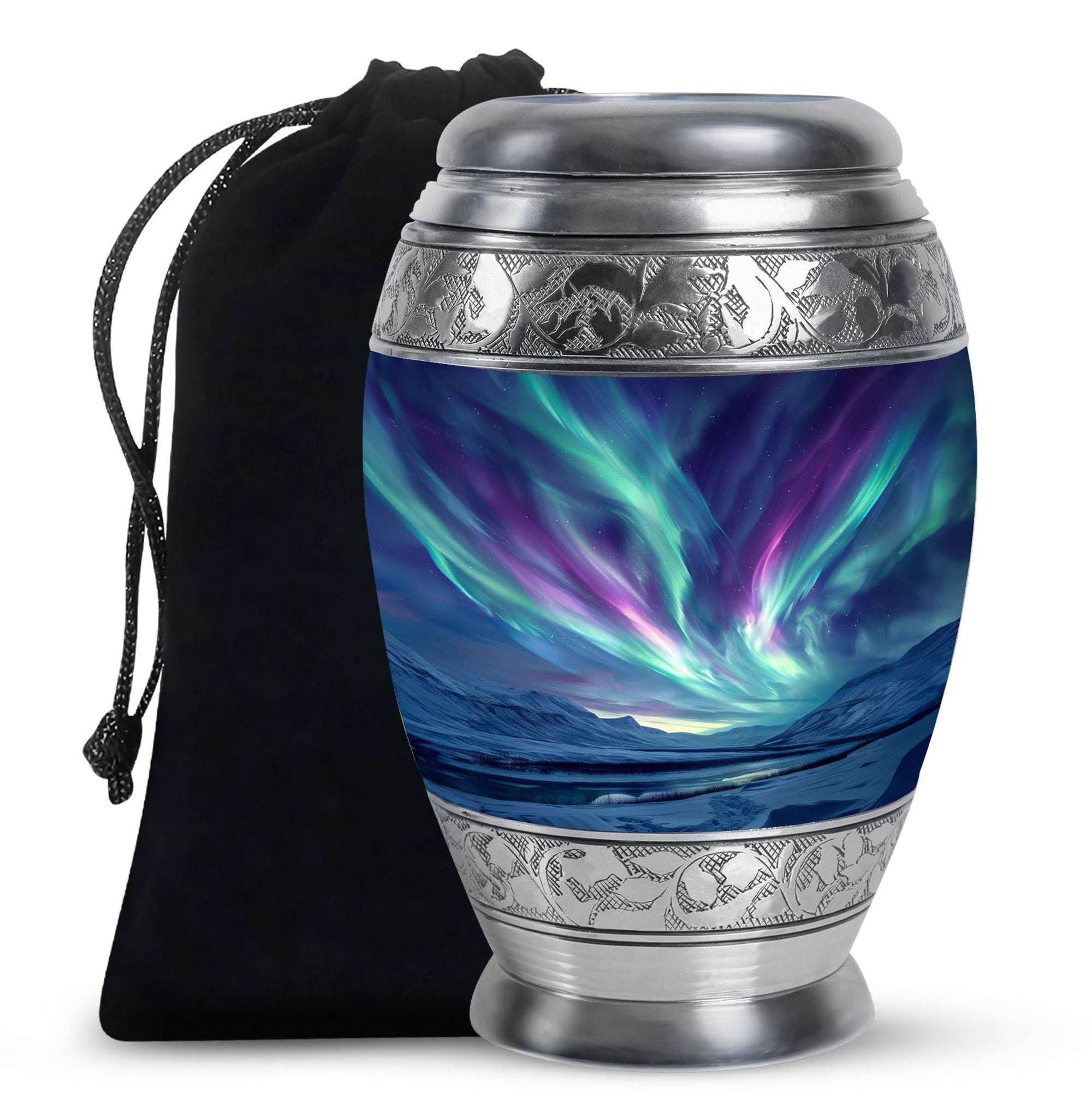 Preserve the memory of your loved one with the Northern Lights Urn for Ashes, a compassionate and dignified way to honor those who have passed. Designed as a thoughtful funeral urn for ashes, it provides a meaningful resting place while complementing larger cremation urns. This urn is ideal for families seeking both small keepsake options and large urns for human ashes adult female or adult male.
