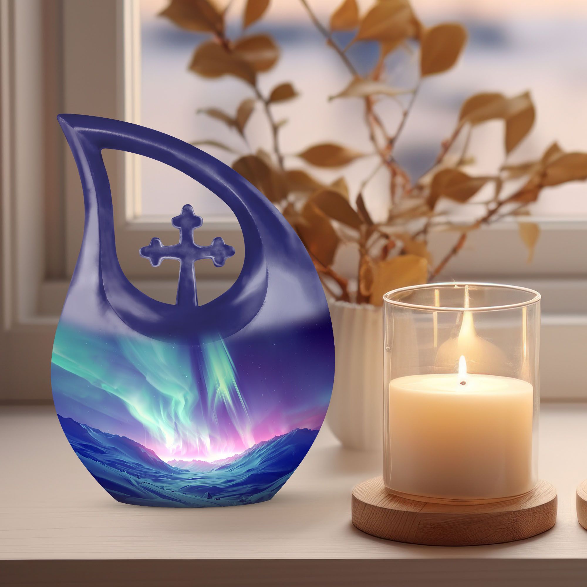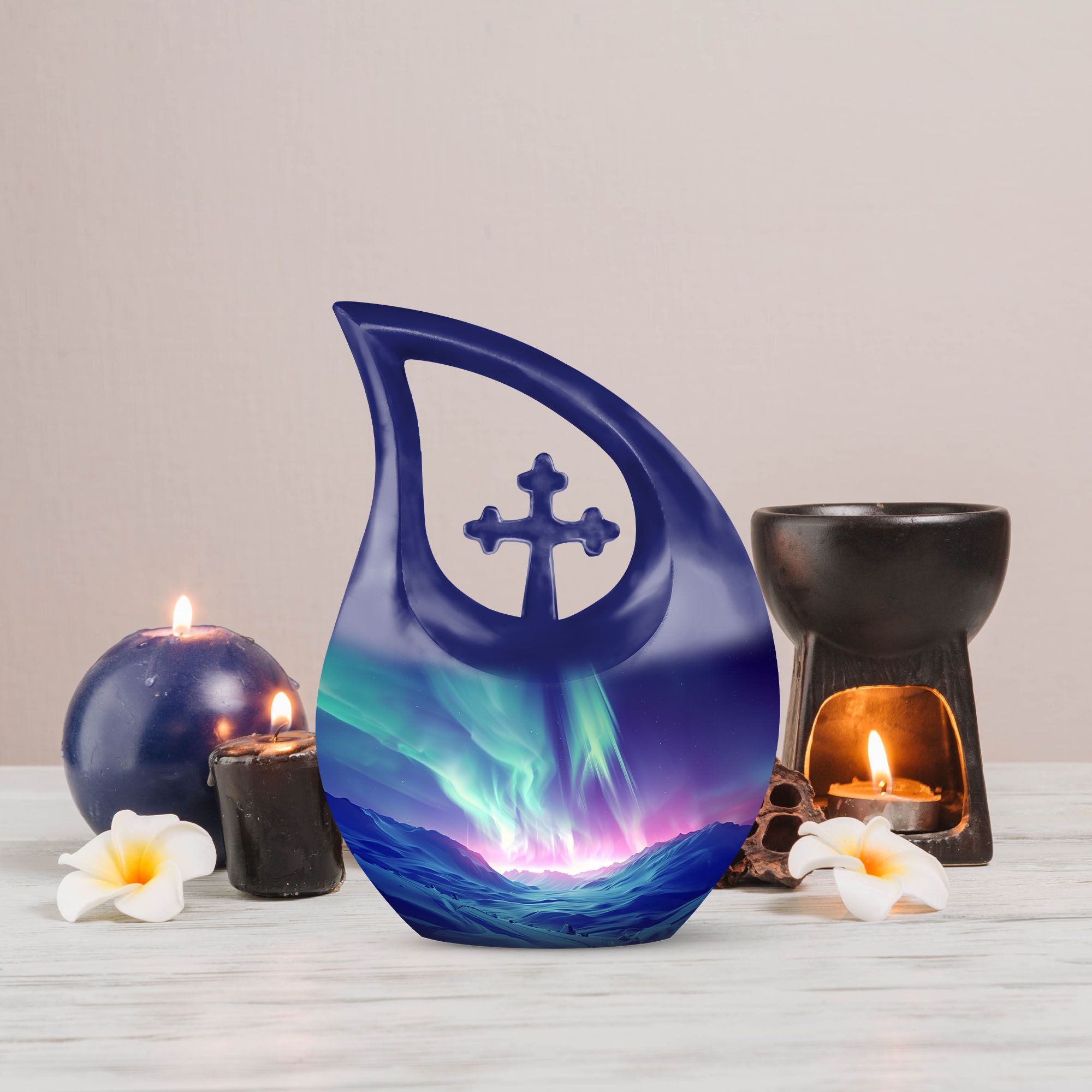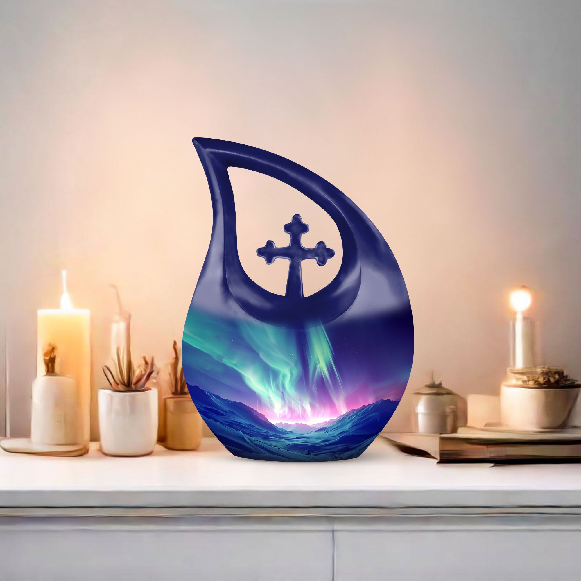 This Northern Lights Funeral Urn for Human Ashes brings celestial beauty and comforting symbolism to your remembrance space. Inspired by the gentle glow of the aurora, it offers a peaceful resting place for your loved one—ideal for families seeking a meaningful cremation memorial that brings both solace and light.
