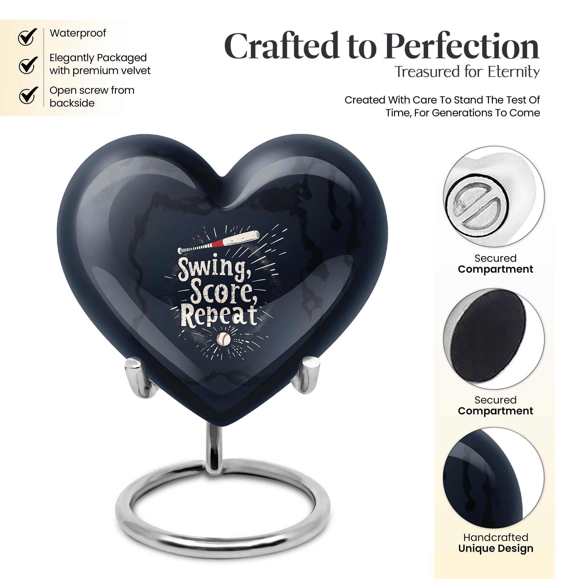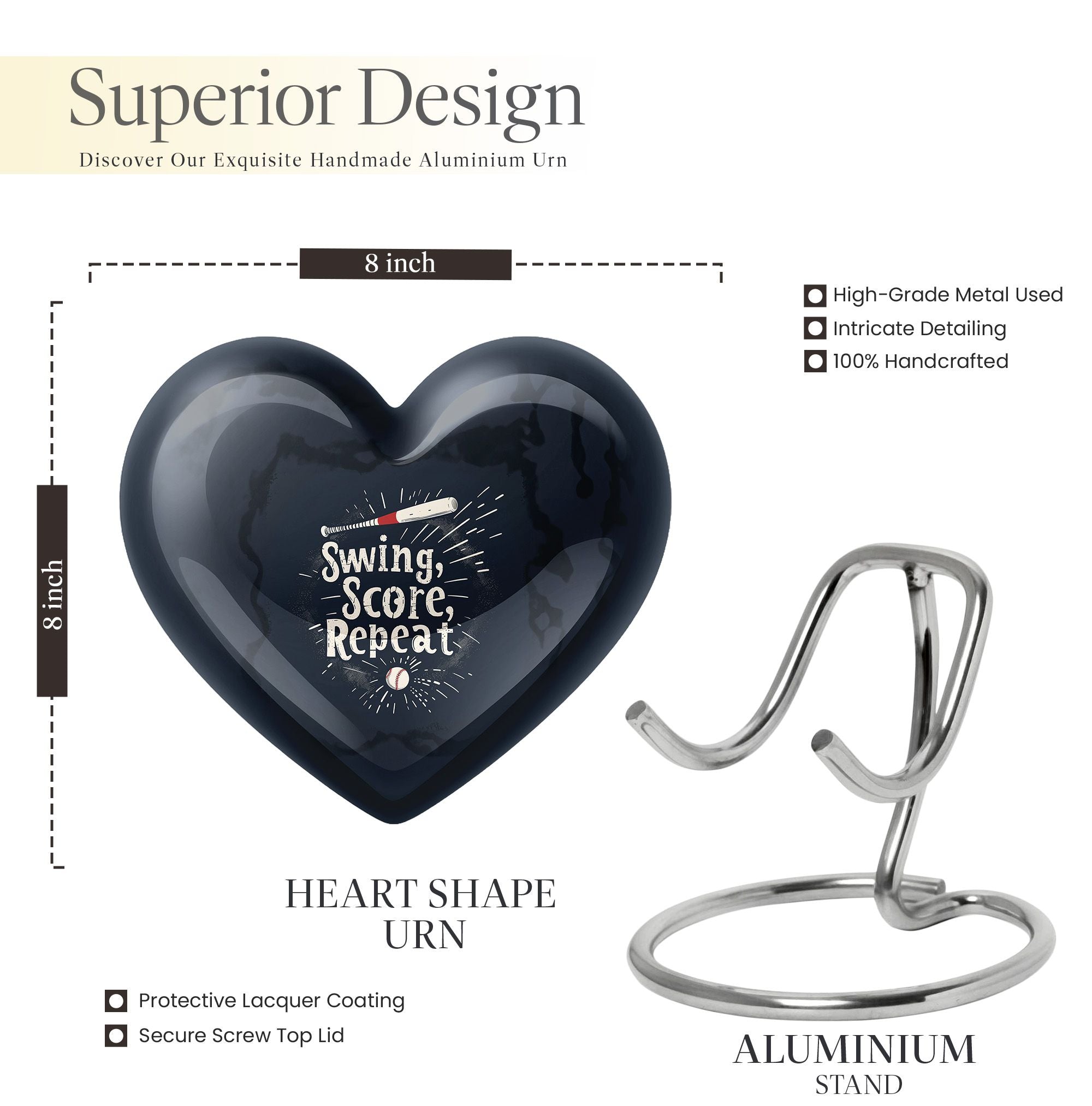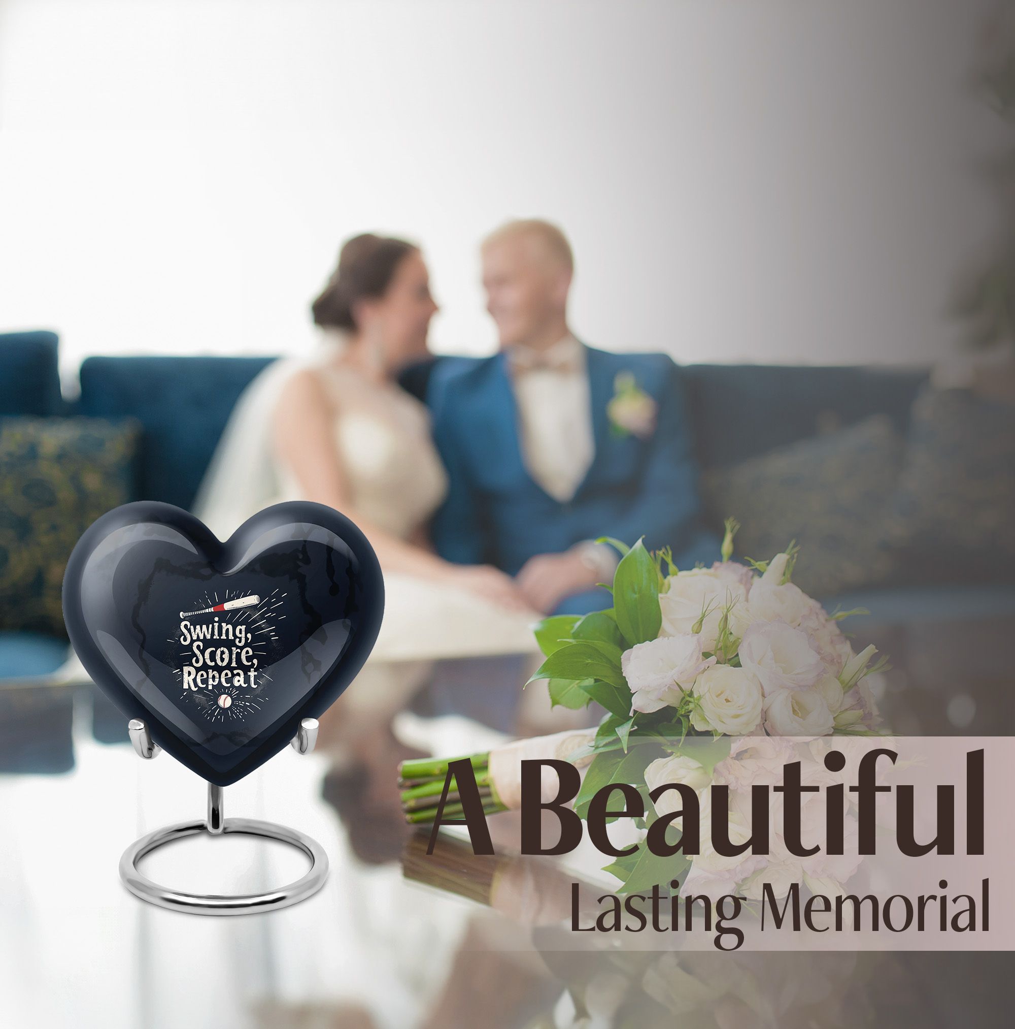 Secure a dignified final resting place with this magnificent Baseball Urn. As an adult burial urn, sporting an abstract-themed, symbolic Heart Urn design, it enshrines the love wrapped around cherished memories. Artfully crafted with sturdy aluminium, this large urn weighs merely 3.3 pounds and stands at a graceful 10 inches. The capacity of this urn is spacious, with a room for 200 cubic inches of ashes. It goes beyond just being a memorial urn, it's a testament to an unending bond. Tailor it to your loved one's memory through personalized engravings etching the bond forever. The dual urn even caters for a female adult or a male adult, affirming your love till the end of time. It discretely tucks away the ashes in the included velvet pouch, maintaining the solemnity of the moment. As a significant part of memorial ceremony supplies, this metal urn, capable of burial in the ground, encapsulates the essence of reverence and remembrance.