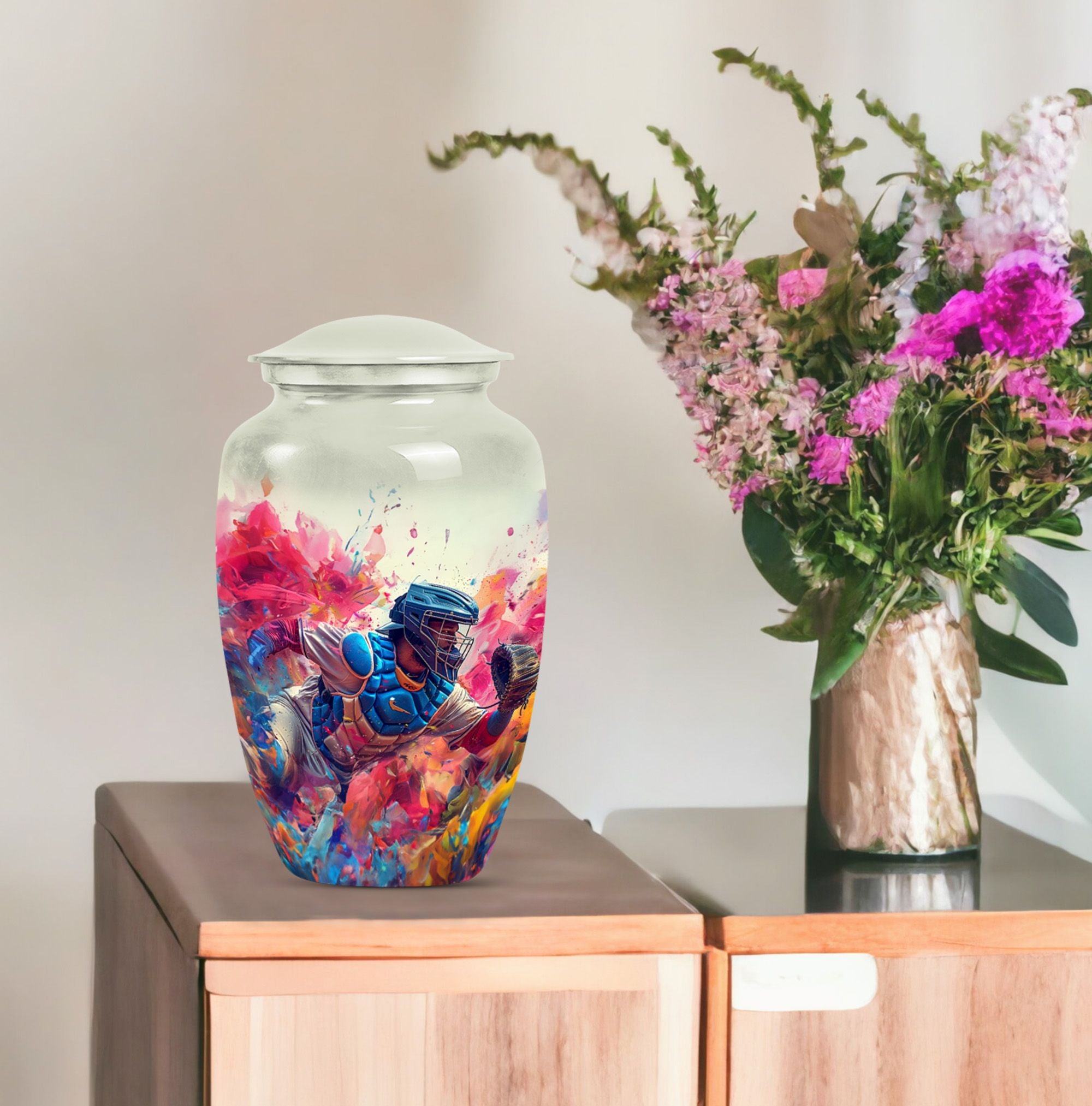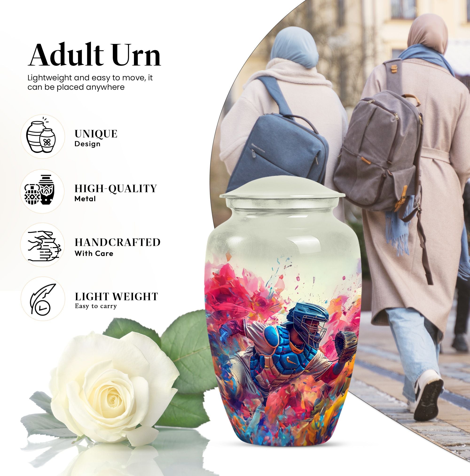 This 10-inch Large Classic Urn is an exquisite piece for preserving the cherished memories of your loved ones. Crafted from high-quality Aluminum, it weighs 3.3 pounds and offers a spacious capacity of 200 cubic inches. The sublime butterfly theme not only enhances its aesthetic appeal but also makes it an endearing tribute. For your convenience, the package includes a velvet pouch for the containment of ashes. With the ability to personalize it with engraved names, this memorial funeral urn serves as a heartfelt remembrance. As a refined choice from our collection of large urns, this baseball urn rightly caters to the sentiment of homage as well as the decor aesthetics. This item can be searched using various keywords such as 'memorial urns', 'funeral unique urns for human ashes', 'urn human ash human ash', or 'decorative urns'. This beautifully crafted urn enshrines the subtle message of eternity and love and makes an excellent item under the Memorial Ceremony Supplies.