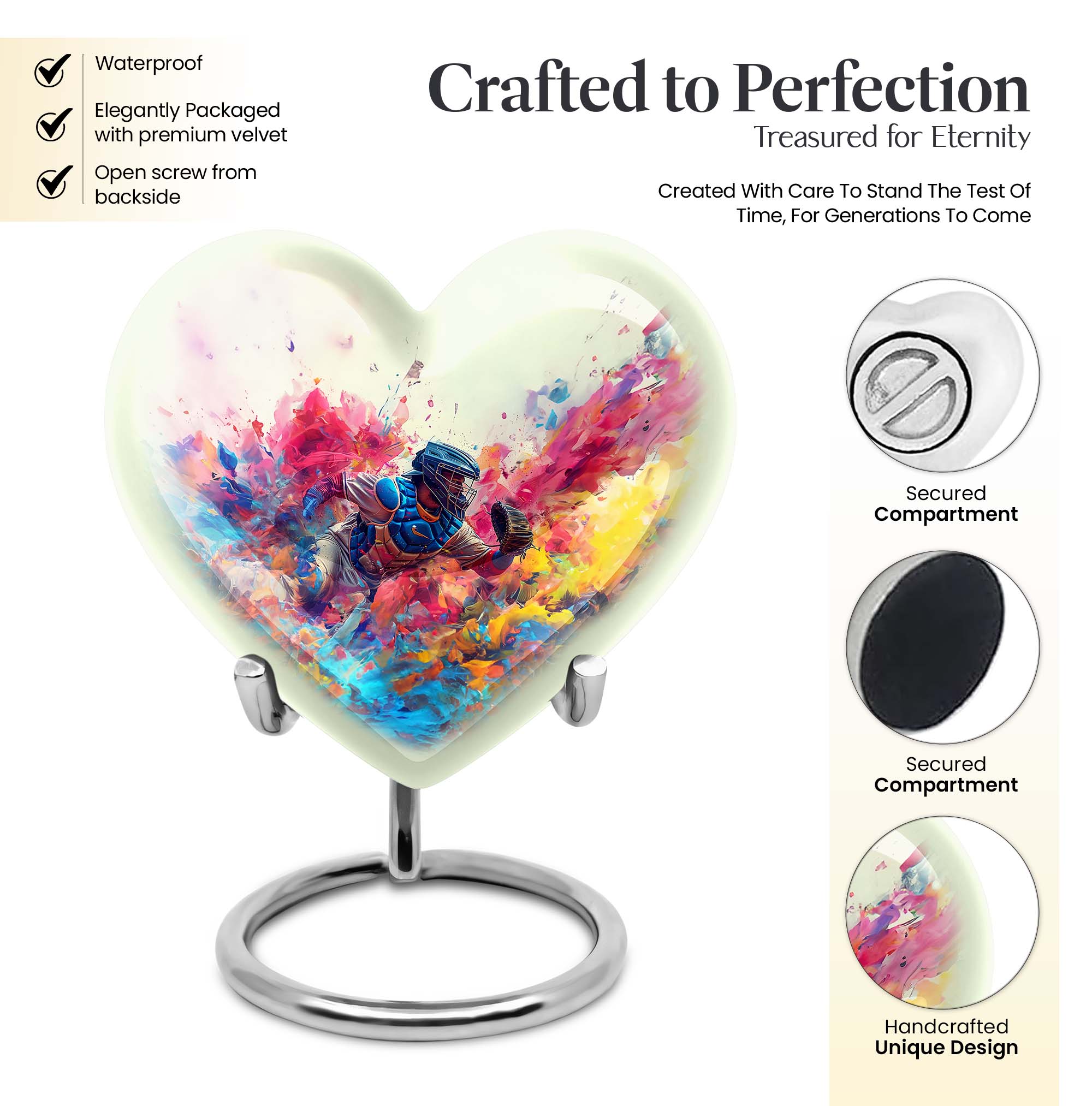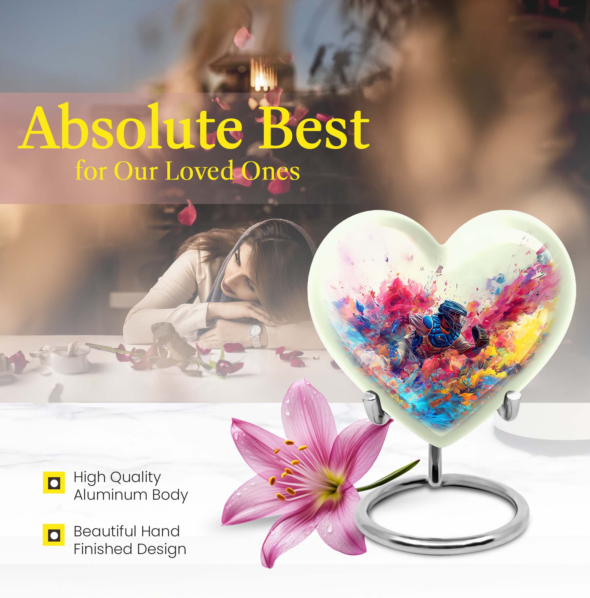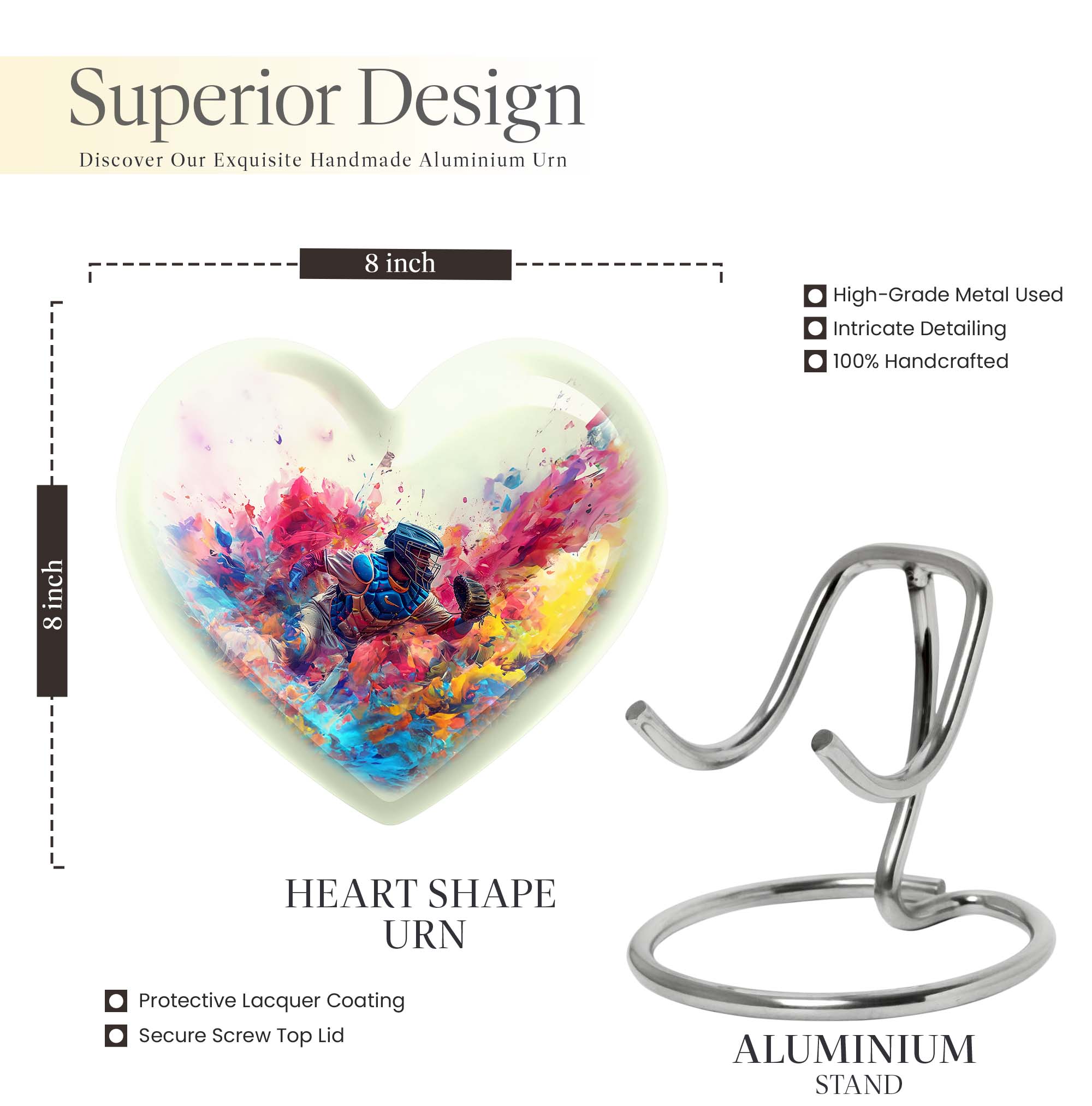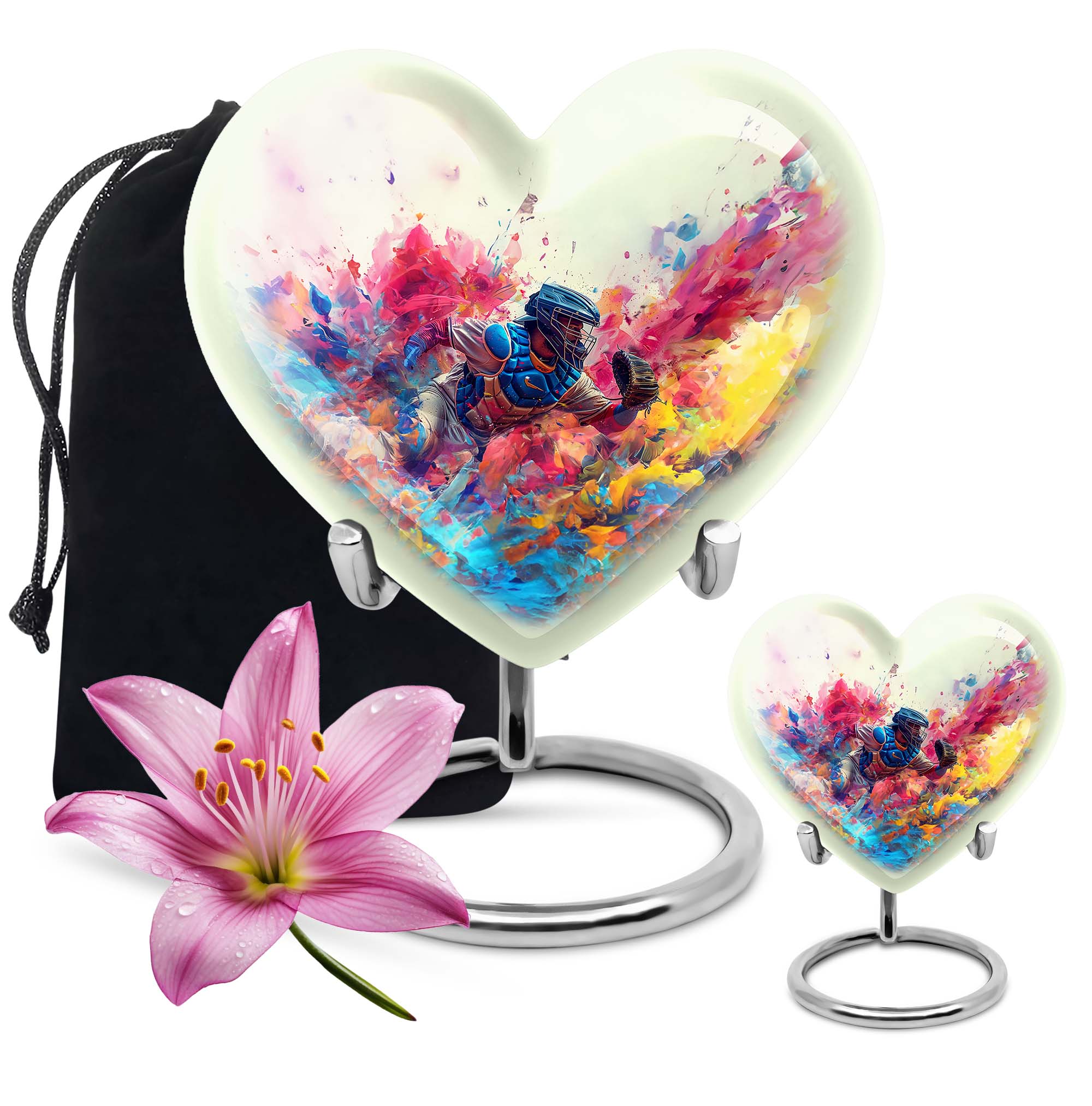Honor your loved one with our unique, Aluminum-made Butterfly-themed Large Urn. This 10-inch heart-shaped memorial urn stands out with its elegant design, offering you a compassionate way to remember those who have moved on from our lives. The urn comes in a generous 200-cubic inch capacity, thoughtfully accommodating the ashes of both mother and father, its 3.3 pounds weight affirming its substantial presence. The package further accompanies a velvet pouch, providing a sophisticated and protective cover for the remains. Celebrate the resident spirit of the departed by personalizing the urn with engraved names, adding a touching sentiment to the memento. Ideal for baseball enthusiasts, the Urn merges the lighthearted energy of the game with the sensitivity of the moment. Popular keywords associated with this product include 'baseball urn', 'memorial funeral urns for ashes', 'funeral unique urns for human ashes', and 'urns for cremation ashes'. Let the winds of remembrance gently stir the silence with our Butterfly-themed Large Urn, a soulful goodbye echoing love, loss, and longing.