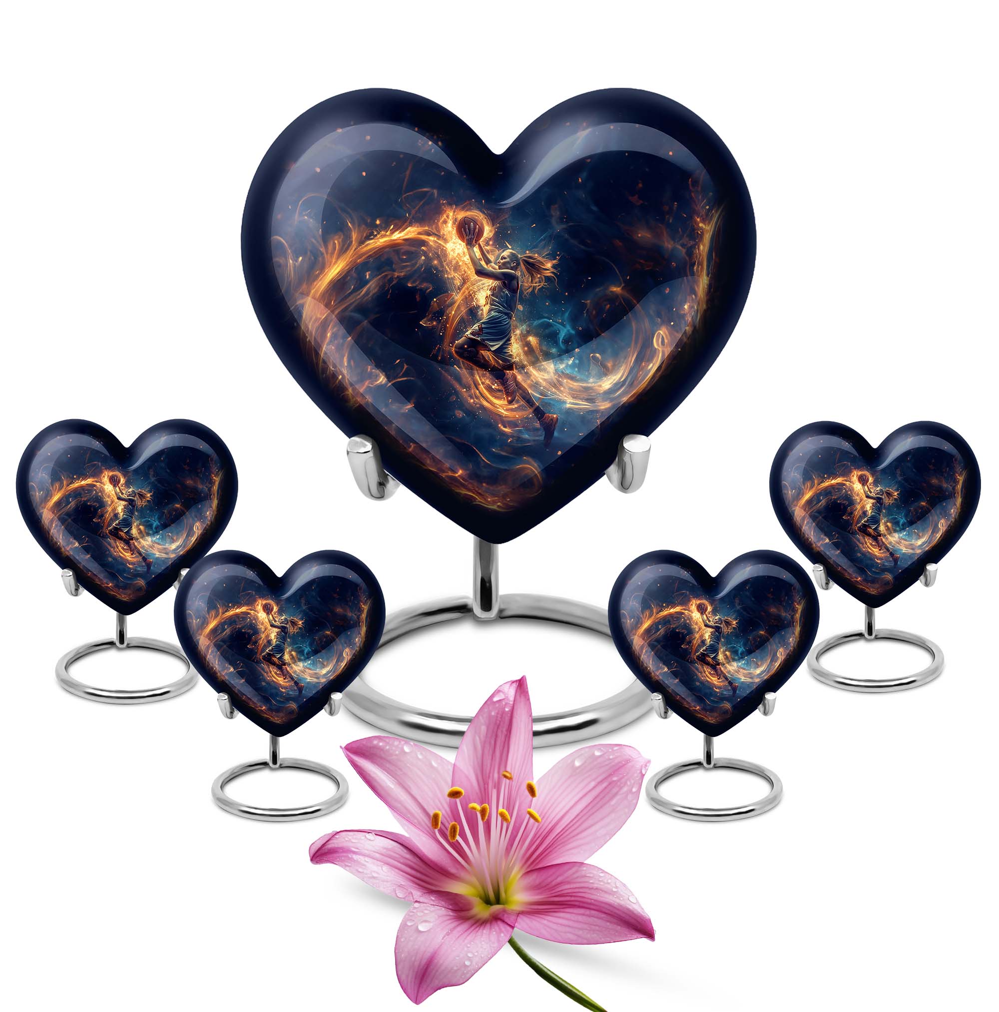 Experience the harmonious blend of tradition and present-day design with our unique, basketball cremation urn. An epitome of love and respect symbolizing the heart urn, this piece showcases the class and elegance a funeral memorial deserves. Measuring 10 inches in height and weighing about 3.3 pounds, this adult urn carries with it a capacity of 200 cubic inches of human ashes, making it an ample containment for beloved ones' remains. Crafted meticulously from high-quality aluminium, this large urn captures beauty in simplicity, yet exemplifies durability. Each purchase includes a velvet pouch for thoughtful containment, exemplifying care and respect. Add a personal touch to this memorial urn by engraving names, cherishing memories for a lifetime. This urn is perfect for tokenizing love for your beloved mom, manifesting forever memorials, and implying a unique theme through a stylish gramophone design. This offers a tranquil sanctuary to memorialize loved ones with a perfect consolidation of style, grace, and spirituality.