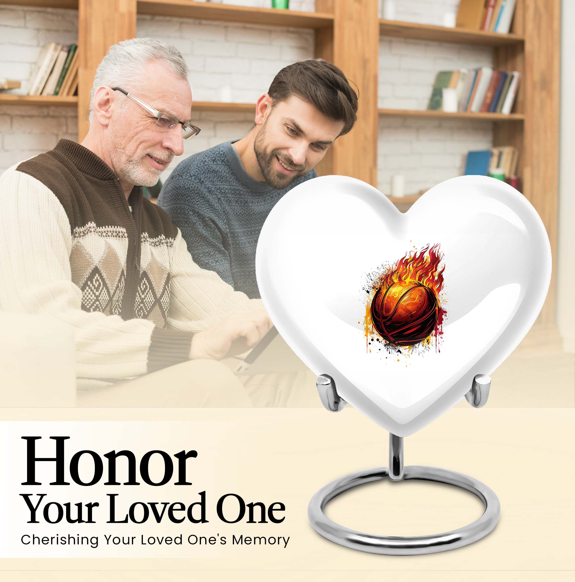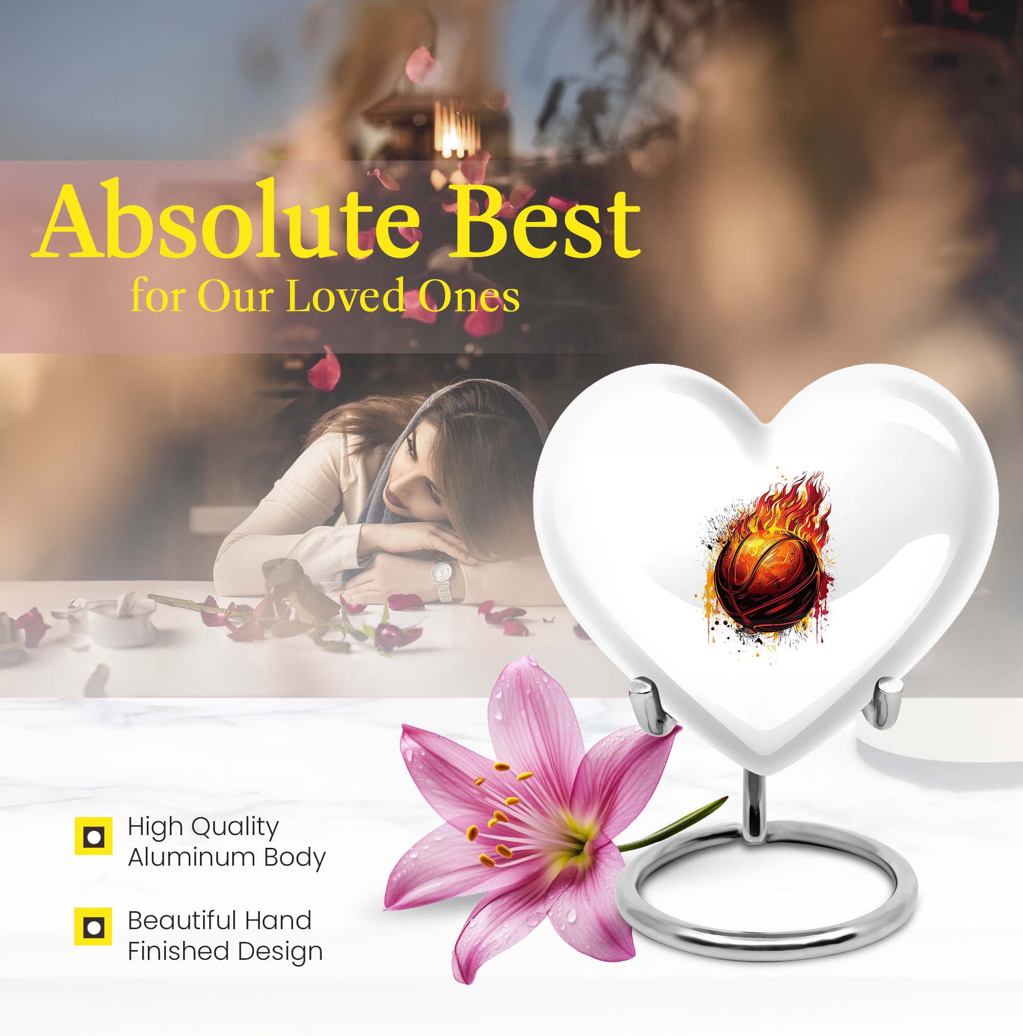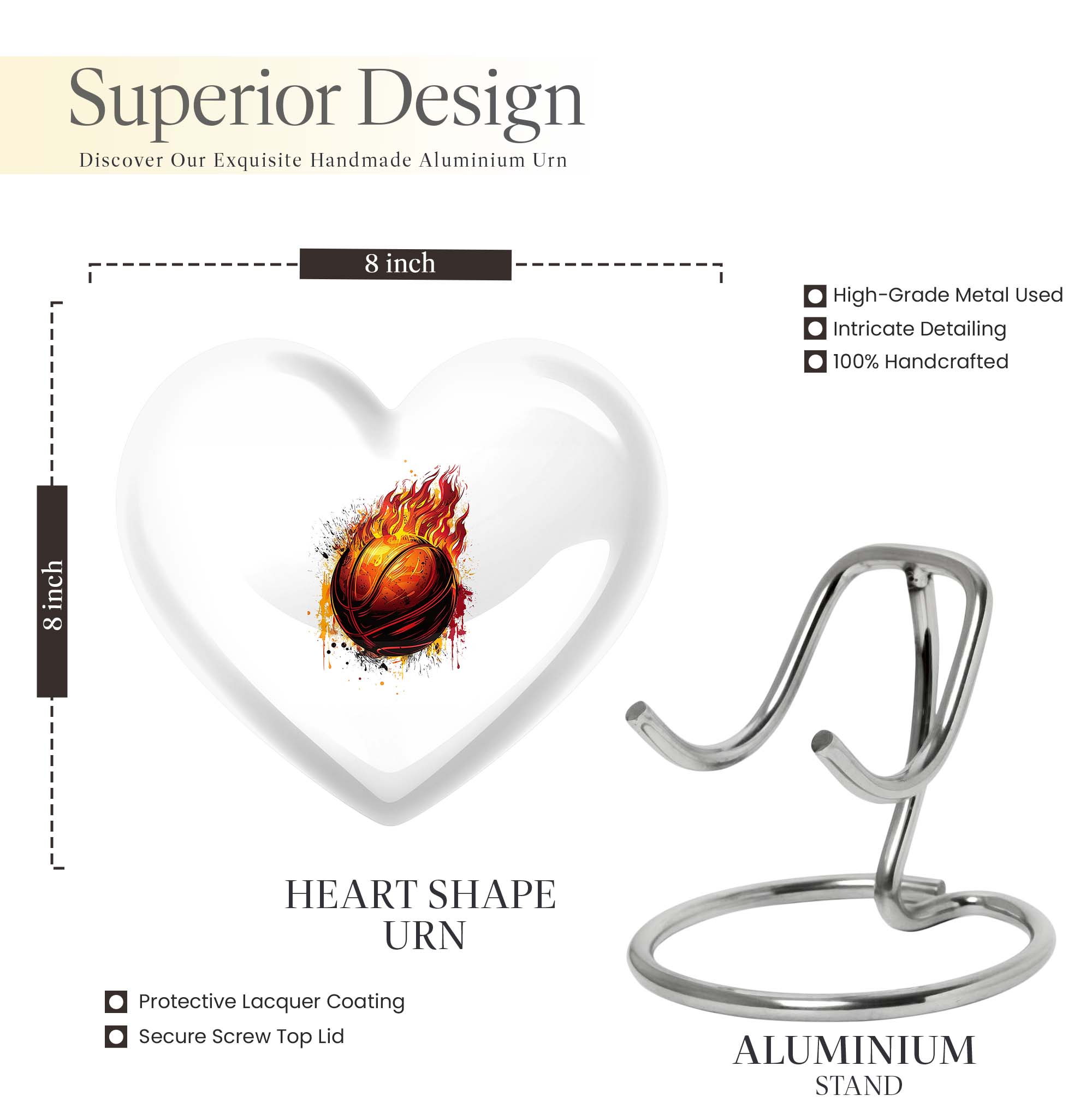 Designed especially for those close to your heart, our basketball urn is a touching tribute to your departed loved ones. Crafted from high-grade aluminium, this large 10-inch urn has a weight of 3.3 pounds. Decked out with an appealing heart model that symbolizes boundless love, this resting place for your beloved one's ashes is compatible with the idea of eternal affection. Its substantial capacity of 200 cubic inches exemplifies the ample amount of space for secure preservation of ashes. The package also includes a soft velvet pouch that ensures an additional layer of containment and care for your loved ones' remains. One of the unique points about this memorial urn is the ability to personalize it with engraved names, adding a personal touch to the eternal memory. In line with keywords 'cremation dad urn' and 'burial urns for adult men ashes', this large-sized urn reflects the concept of a magnificent and affordable memorial, serving as an enduring connection between you and your dearly departed ones.
