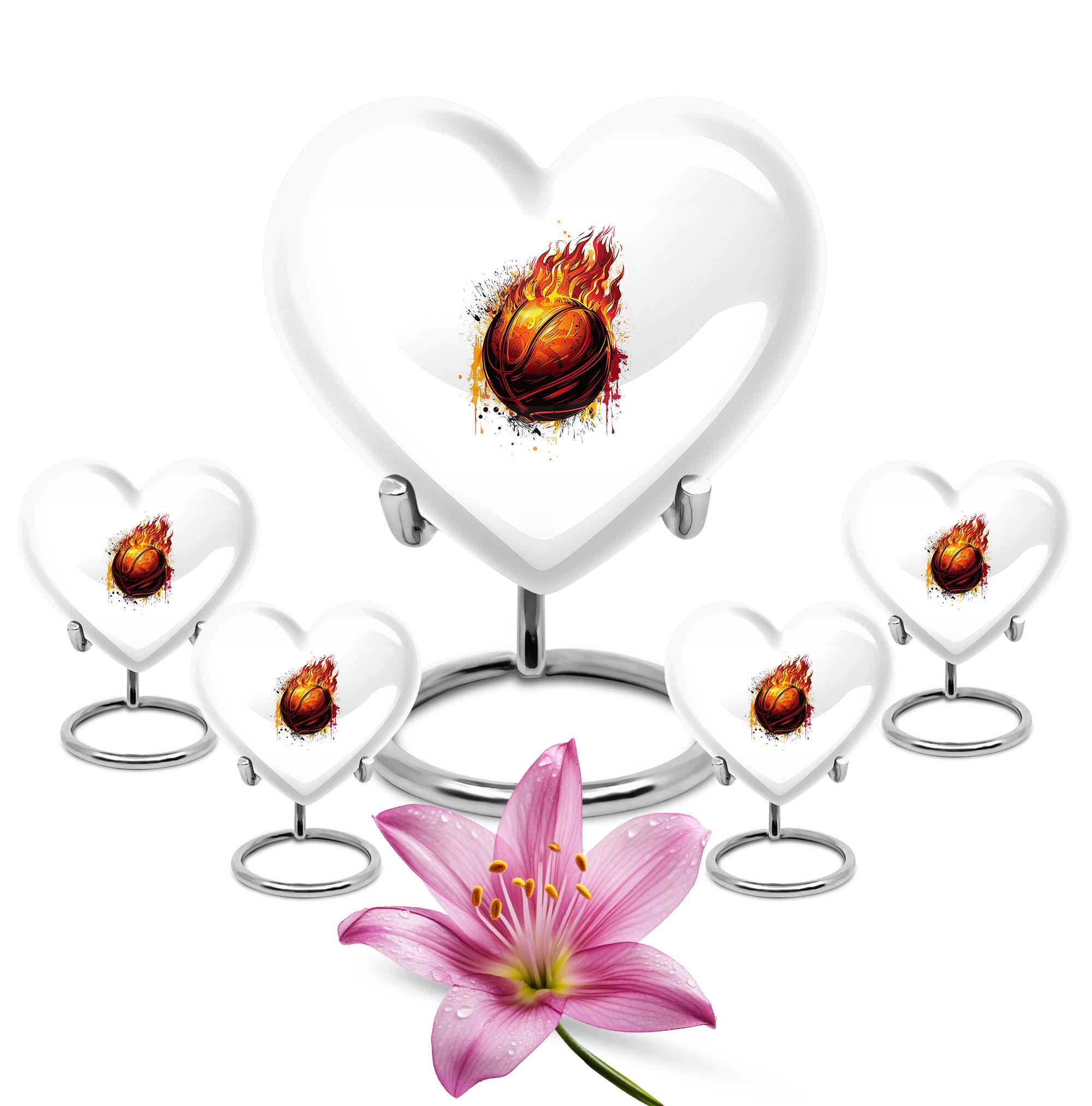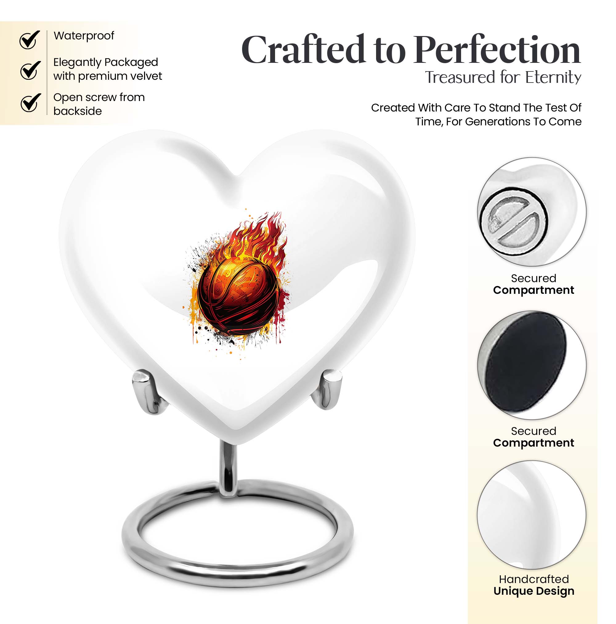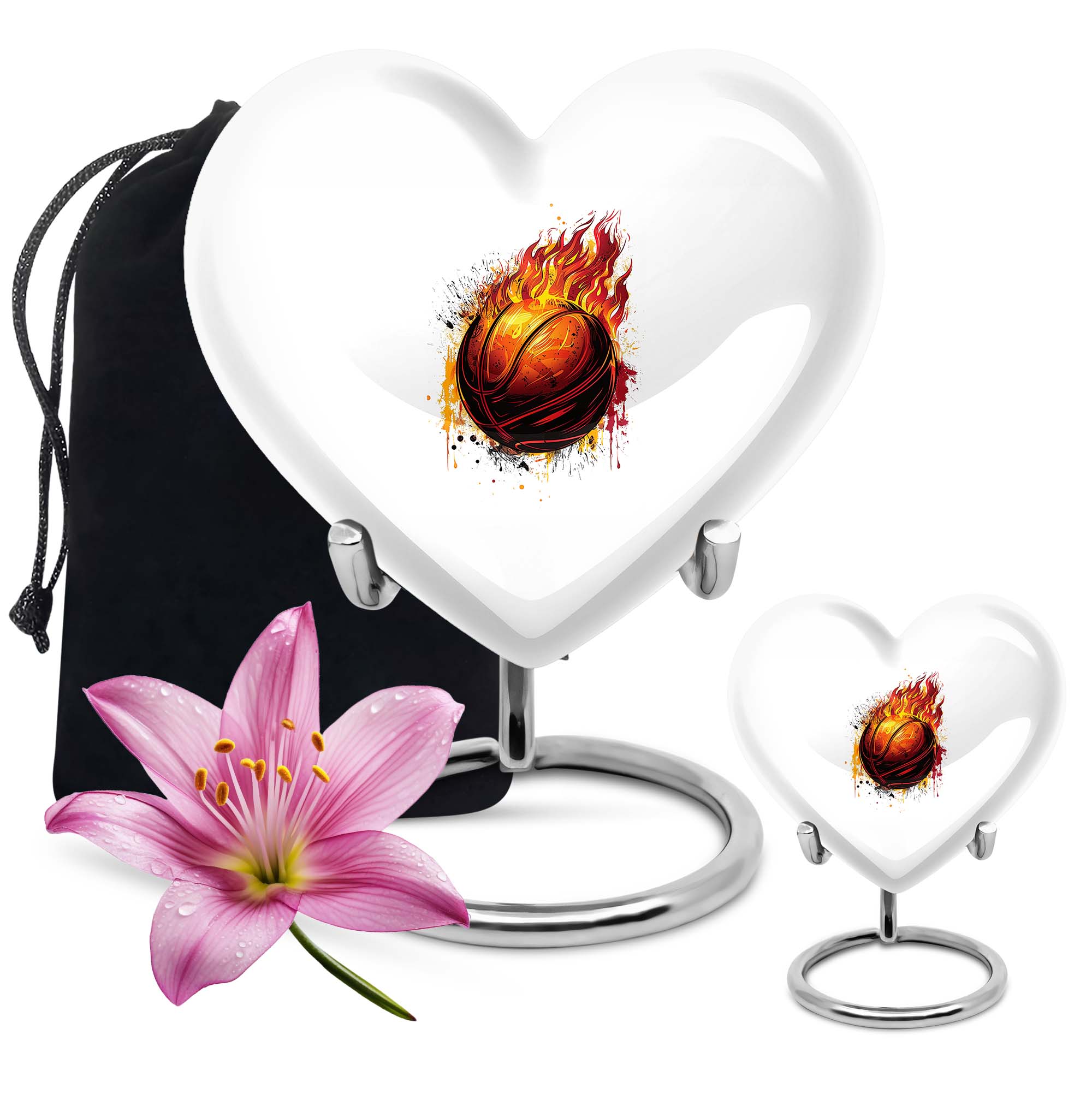 Designed especially for those close to your heart, our basketball urn is a touching tribute to your departed loved ones. Crafted from high-grade aluminium, this large 10-inch urn has a weight of 3.3 pounds. Decked out with an appealing heart model that symbolizes boundless love, this resting place for your beloved one's ashes is compatible with the idea of eternal affection. Its substantial capacity of 200 cubic inches exemplifies the ample amount of space for secure preservation of ashes. The package also includes a soft velvet pouch that ensures an additional layer of containment and care for your loved ones' remains. One of the unique points about this memorial urn is the ability to personalize it with engraved names, adding a personal touch to the eternal memory. In line with keywords 'cremation dad urn' and 'burial urns for adult men ashes', this large-sized urn reflects the concept of a magnificent and affordable memorial, serving as an enduring connection between you and your dearly departed ones.