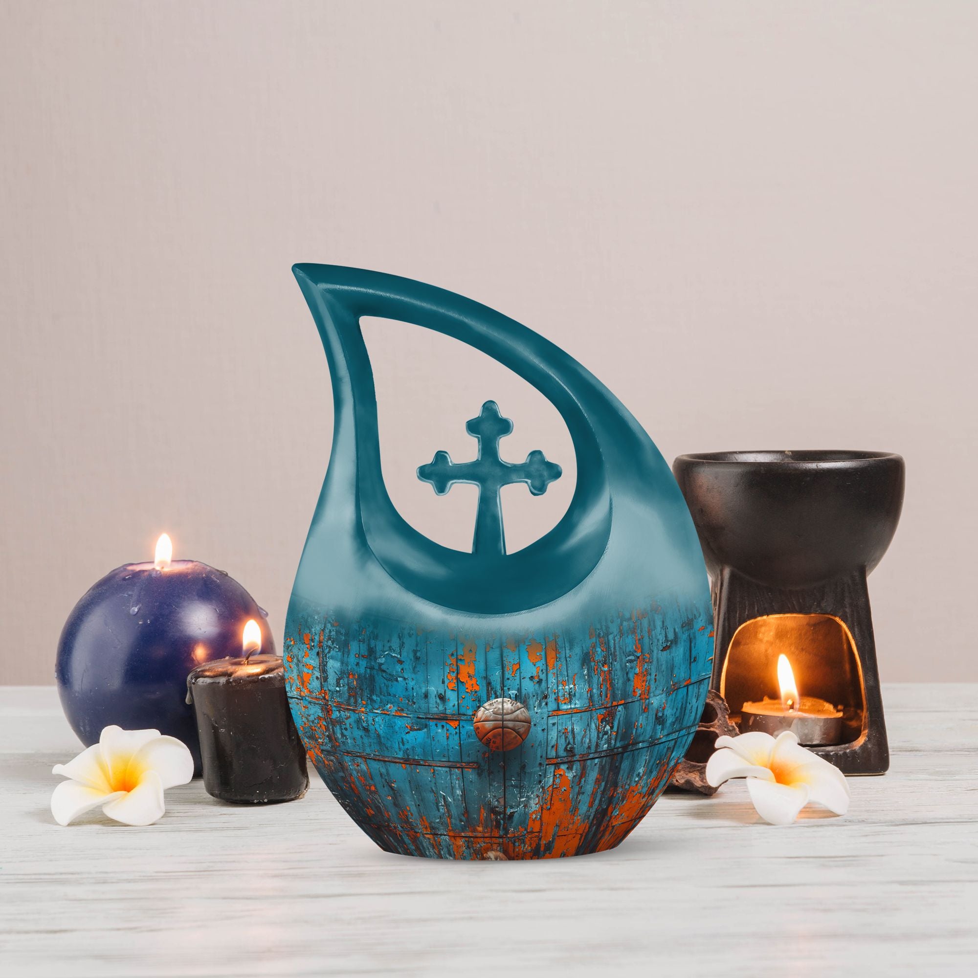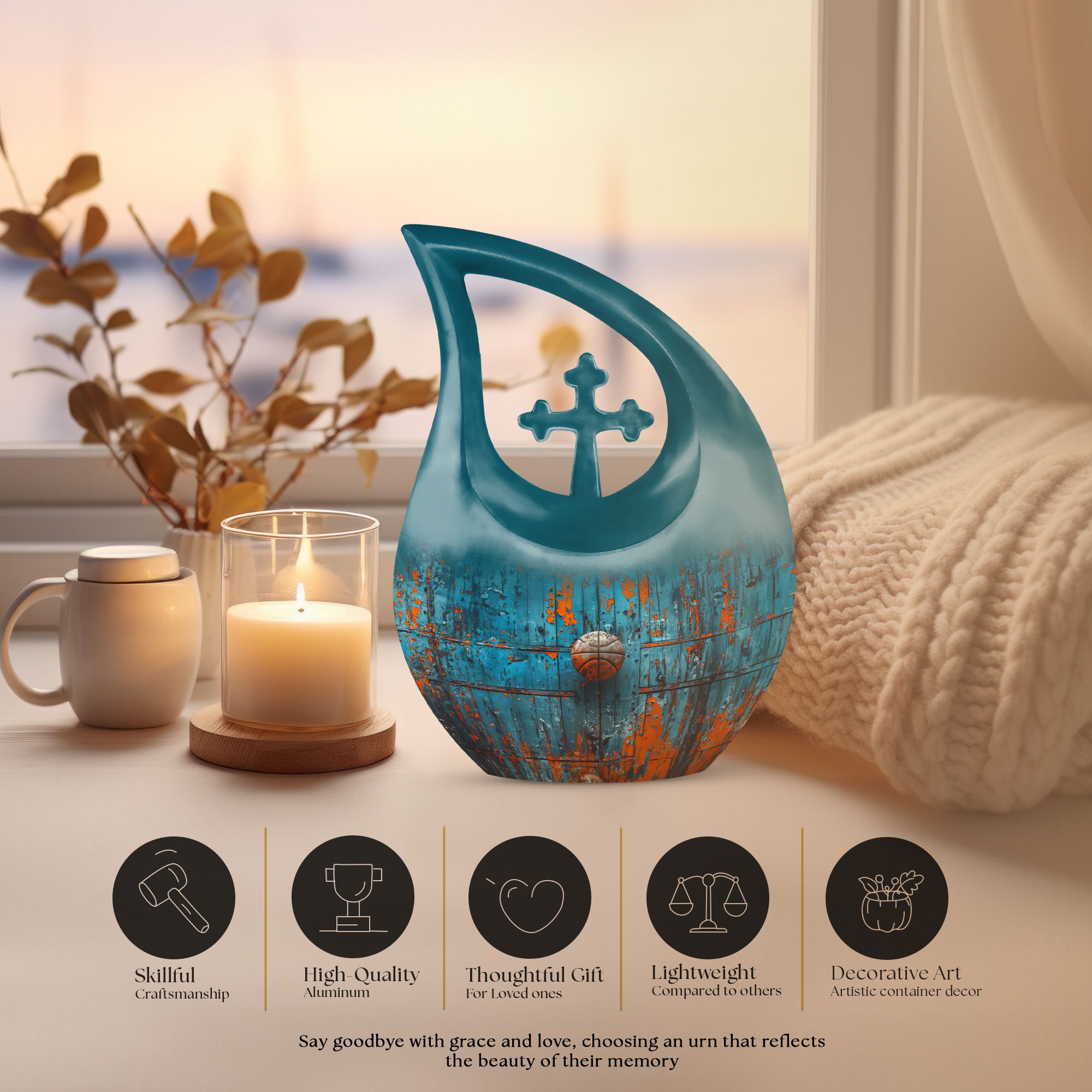Honoring your dearly departed's love for basketball and the Christian faith has never been more dignified with our Cross Drop Basketball Urn. This stately memorial urn is handcrafted from high-quality aluminium and stands at 10 inches tall, embodying a refined balance of elegance and strength. It possesses an impressive 200 cubic inches capacity, making it suitable for large urn needs. Included in your purchase is a sumptuous velvet pouch, providing a respectful containment for ashes. Despite the impeccable quality, this urn remains affordable, adhering to our belief that commemorating a loved one should not weigh heavily on your budget. In addition, we offer the ability to personalize this urn with engraved names, allowing you to add that much-needed touch of intimacy and remembrance. Whether you are seeking a basketball urn or simply require a cost-effective solution, our Cross Drop urn is an ideal choice that promises not to disappoint.