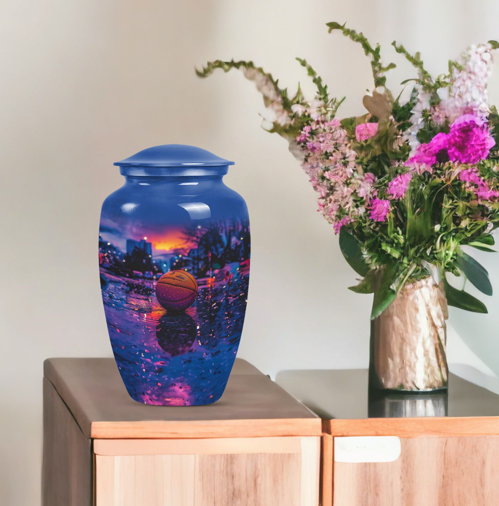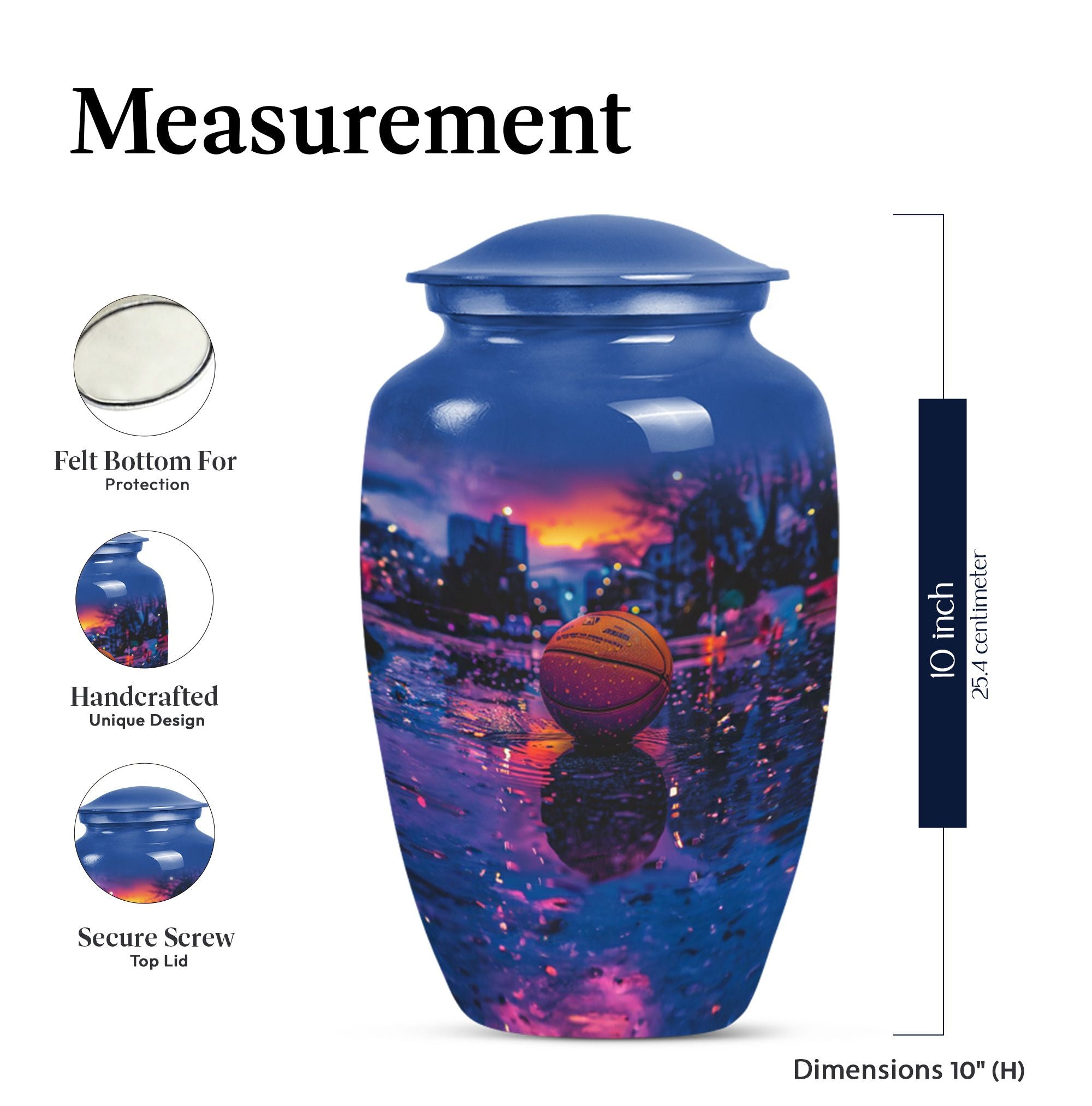 Honor your departed loved one with our elegant 10-Inch large urn, an exemplary choice for burial or an everlasting home memorial. Crafted from sturdy, lightweight Aluminium, this cremation urn weighs a mere 3.3 pounds, making it easy to handle. The svelte 10-inch height conveniently houses up to 200 cubic inches of ashes, ideal for cremation urns aimed at adult female ashes. This ethereal urn highlights a captivating butterfly theme, imparting an aura of tranquility and rebirth. With a nod towards customization, you can personalize it with engraved names, making it a unique tribute to one's life. Every urn arrives with a velvet pouch, ensuring the ashes are contained respectfully. Not just a cremation ashes container, but it's a heartfelt token of remembrance. Consider this basketball urn from our collection, as our offerings rise above generic urn ash adult urn human ash options, enhancing your memorial ceremony supplies. Utilize this urn for ashes, making memorial ceremonies more significant.