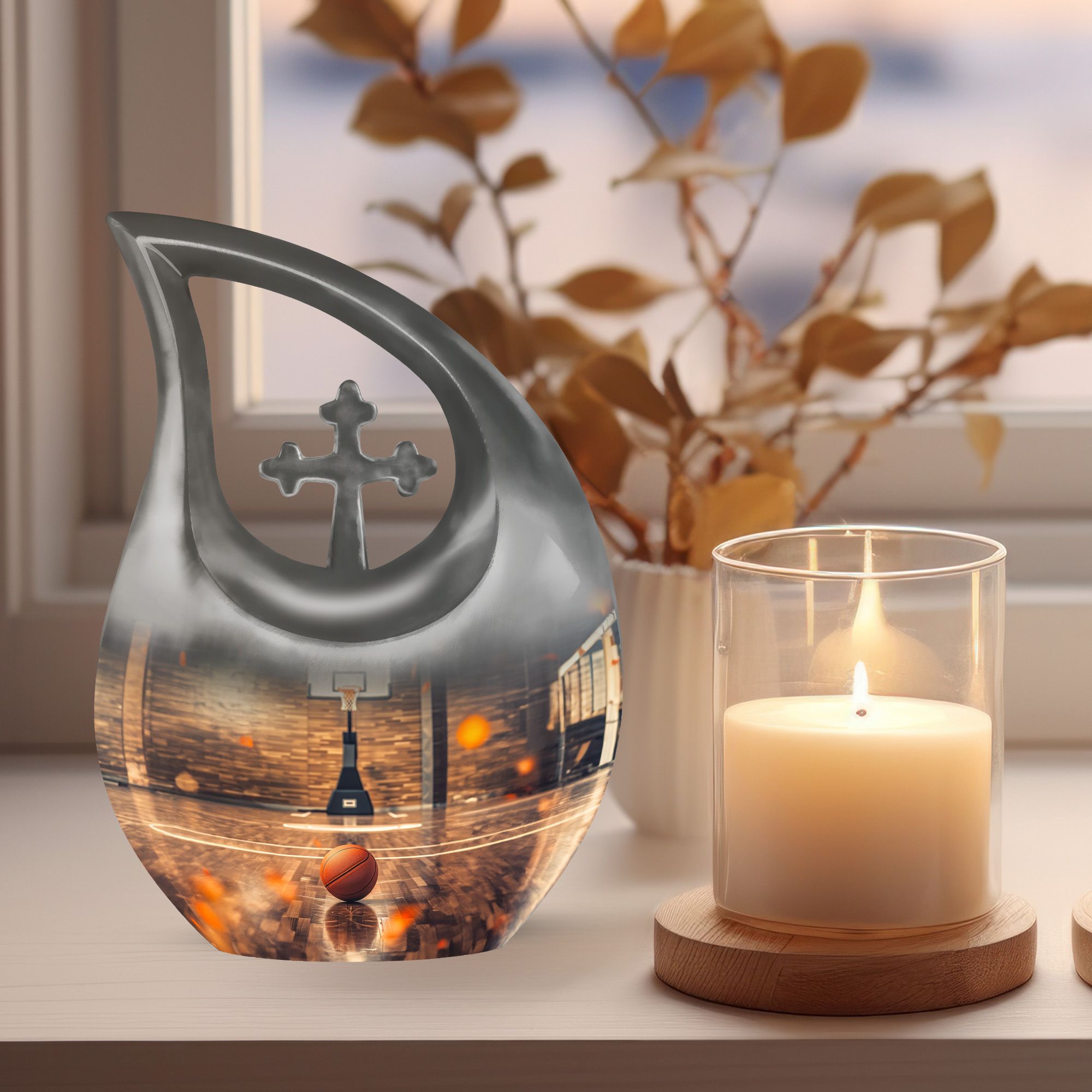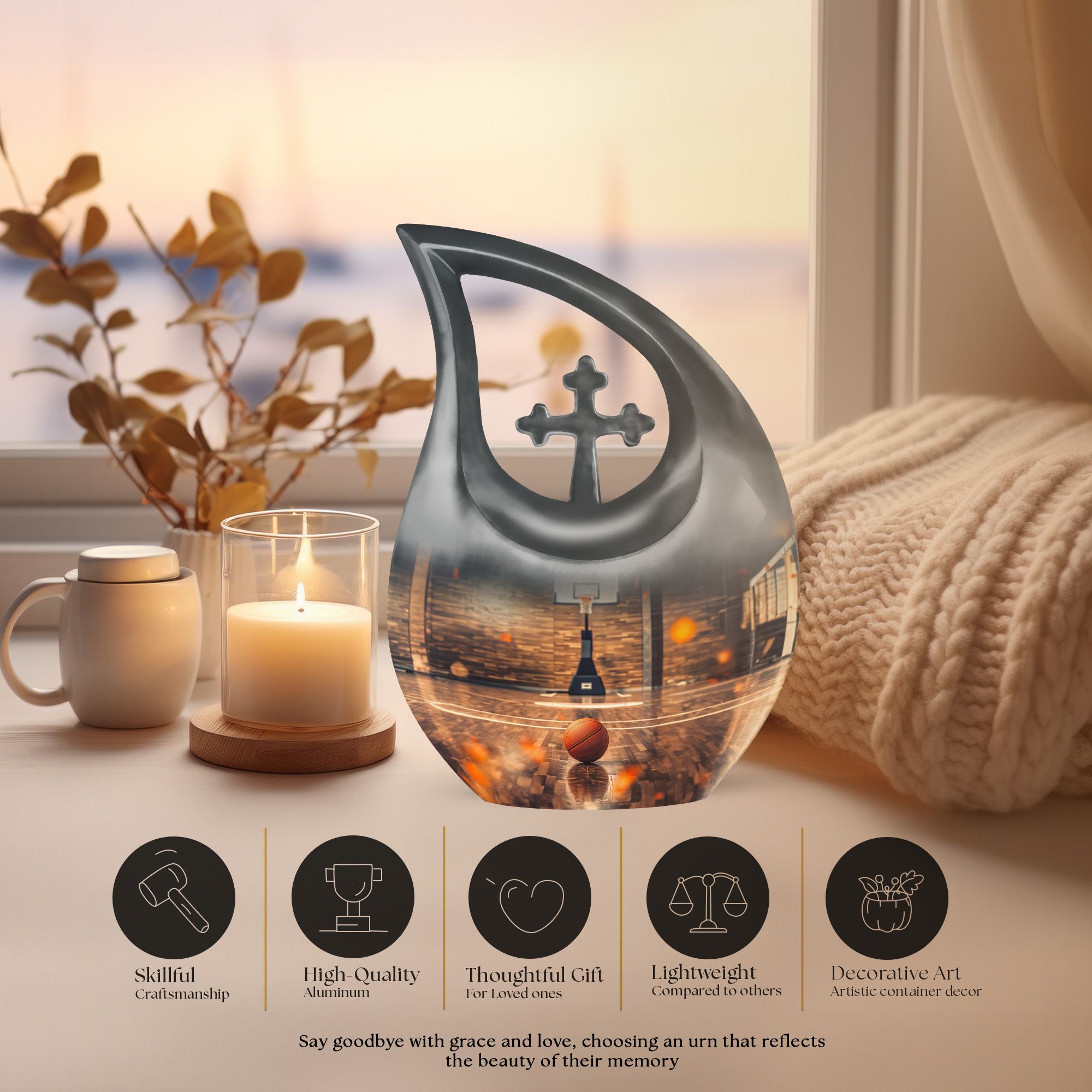 Crafted from durable aluminium, this urn features a vibrant basketball-inspired design symbolizing dedication, teamwork, and strength. Though described as a small cremation urn, its 10-inch height and 200-cubic-inch capacity ensure it functions securely as a Cremation Urn Large, Cremation Urn Adult Large, or any full-size memorial. The secure screw-top lid provides dependable protection for families needing Large Cremation Urns for Human Ashes, Cremation Urns for Large Human Ashes Adult, or a well-crafted Large Cremation Urn that honors both men and women. Its sleek finish makes it ideal for home display, burial, or remembrance ceremonies.