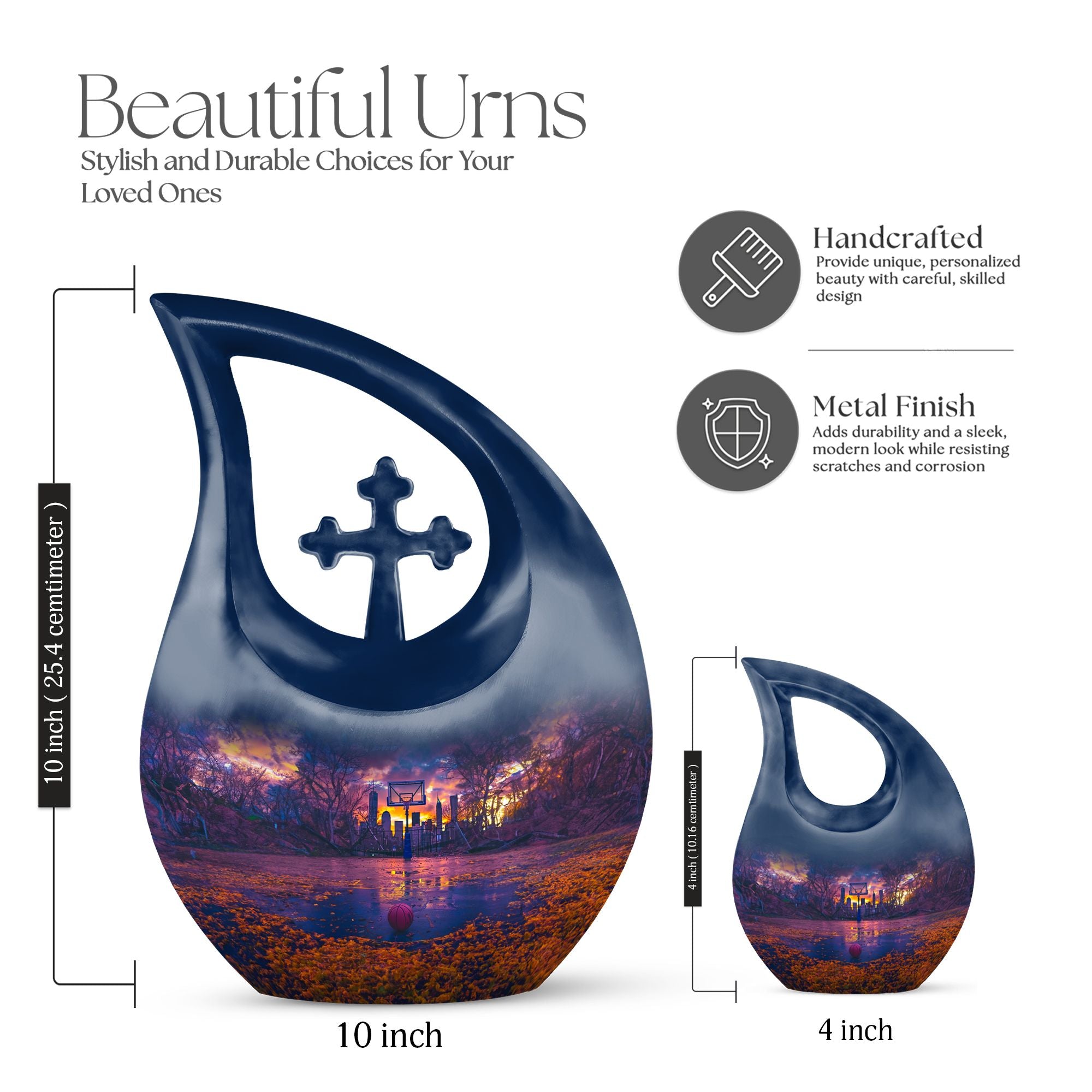 Celebrate the unique life of a loved one who was passionate about basketball with our 10-inch Basketball Urn. This substantial ashes keepsake, with a weight of 3.3 pounds, stands out with its detailed 'Cross Drop' design, perfectly encapsulating the spirit of your beloved. The urn is made from resilient aluminium, guaranteeing longevity. Its sizable capacity allows for the holding of 200 cubic inches of remains. Extra attention to detail is added with the option to personalize the urn with engraved names, adding a touch of individuality and meaning to this memorial piece. Packaged with a velvet pouch for the secure containment of ashes, this large urn offers a touching tribute to your loved one. While ideal for basketball enthusiasts, its elegant design makes it a respectful commemoration for all. Among companion urns and cremation keepsakes, its affordability and functionality make it stand out. If you seek butterfly urns for ashes or other innovative cremation solutions, our collection caters to diverse preferences.