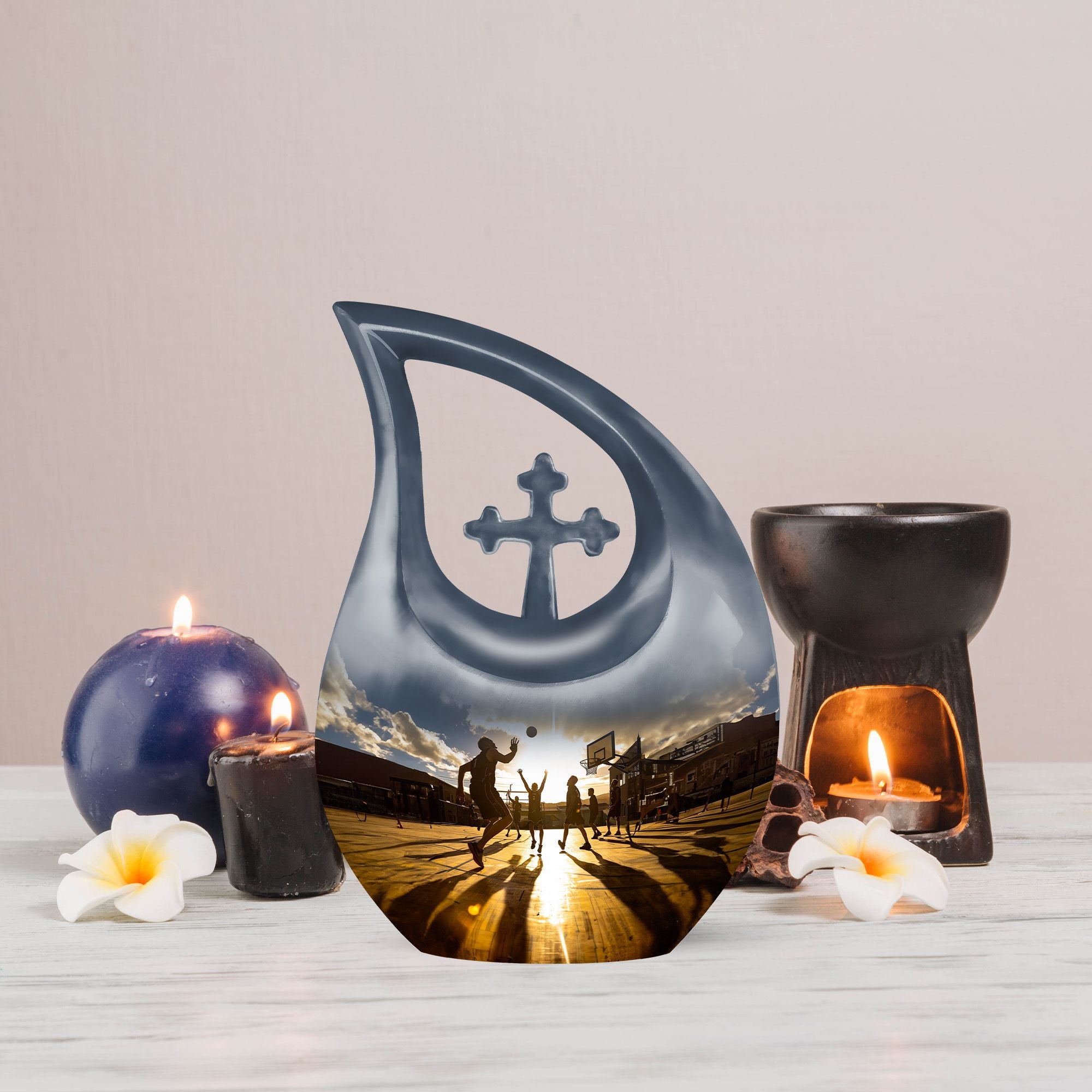 This Basketball Inspired Memorial Urn offers a meaningful way to honor a cherished life, designed with care for families seeking a large urn for ashes adult male or a large urn for ashes for women. Its athletic-inspired artwork serves as a heartfelt tribute, bringing comfort and remembrance to those saying goodbye.