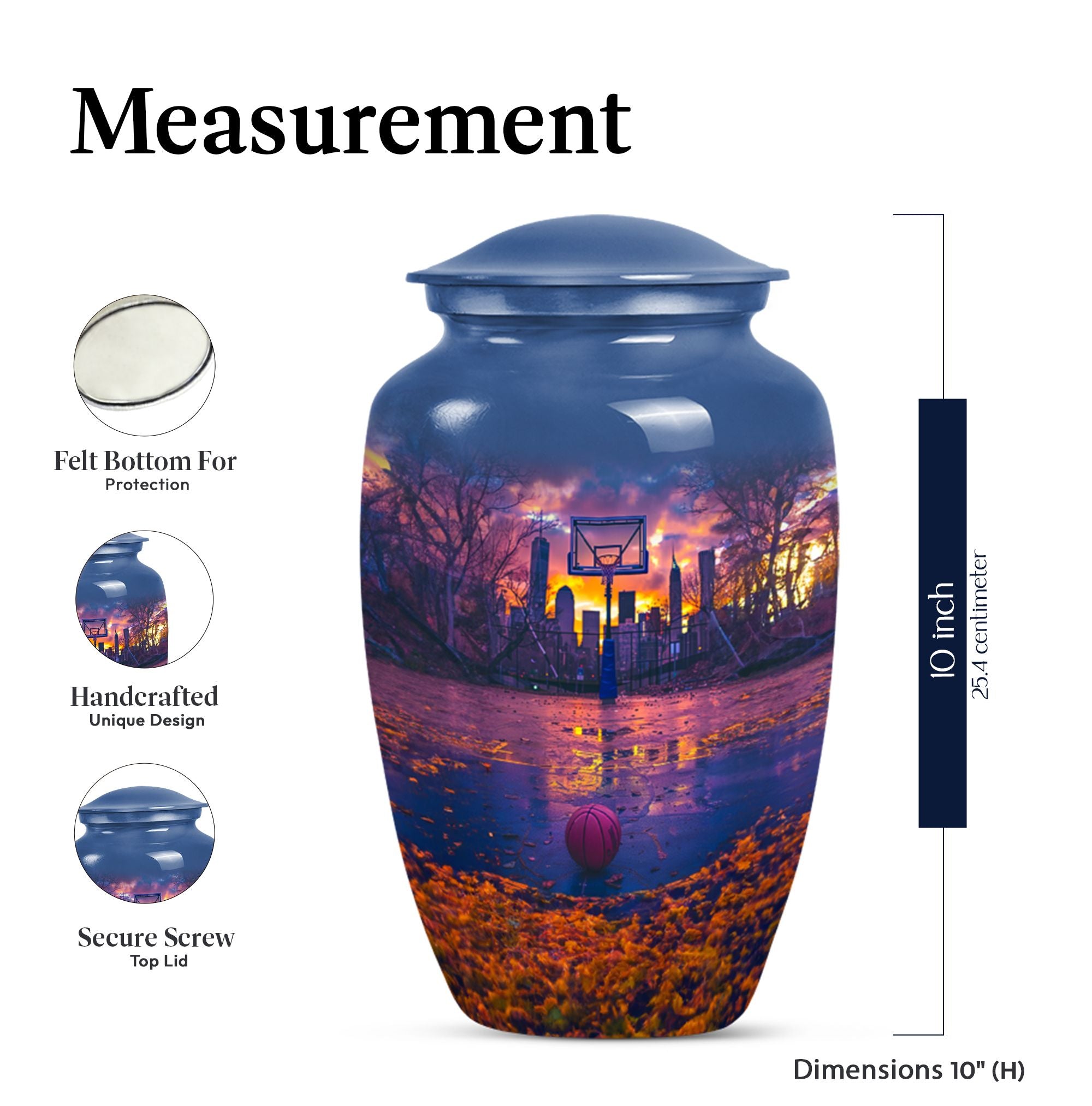 If you're in search of a dignified, respectful way to memorialize your loved one, consider the elegant 'Basketball Urn,' a crucial theme within our Memorial Ceremony Supplies. This tribute is vividly exclusive. Not just any cremation urn, but intricately crafted from high-quality aluminium, exuding strength and longevity. Its broad size dimensions, standing proudly at 10 inches, makes it an ideal memorial medium urn. Weighing judiciously at 3.3 pounds, this funeral burial urn can securely enclose up to 200 cubic inches of human ashes. Each urn is accompanied by a velvet pouch for careful containment of ashes, ensuring utmost reverence to your dear departed. With the potential to personalize with engraved names, this large urn provides a uniquely treasured homage. Delicately skillful, its classic urn shape is enhanced by a tender butterfly theme, making it much more than an ash burial urn, but a poignant reflection of a life beautifully lived.