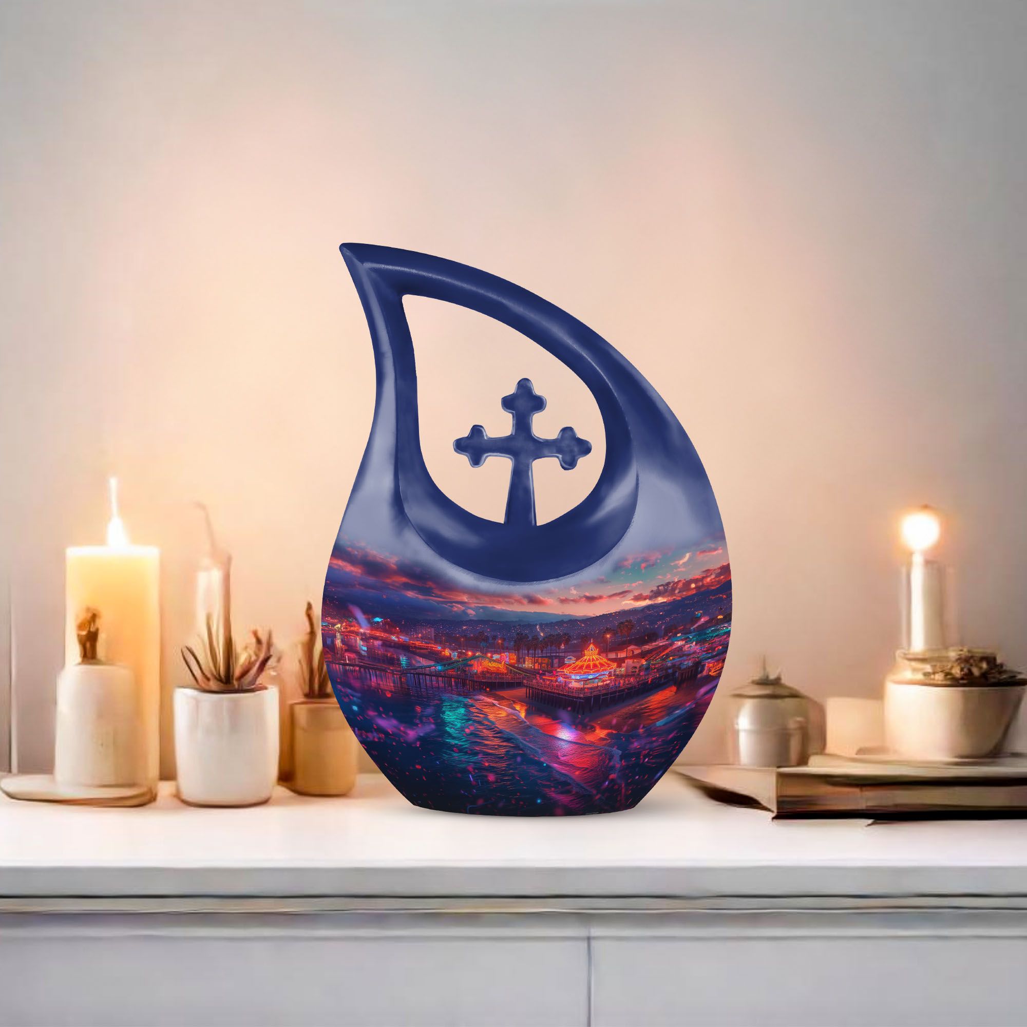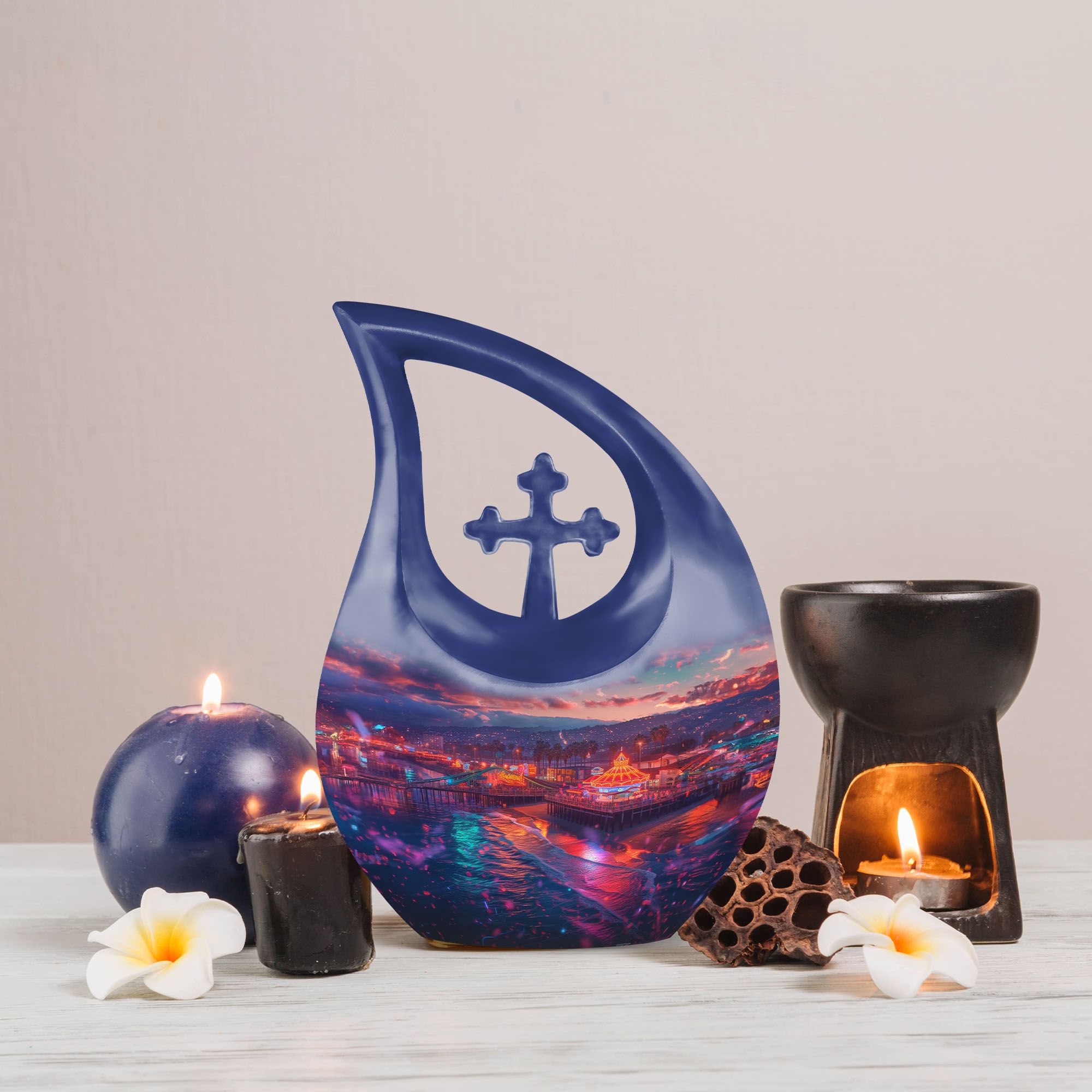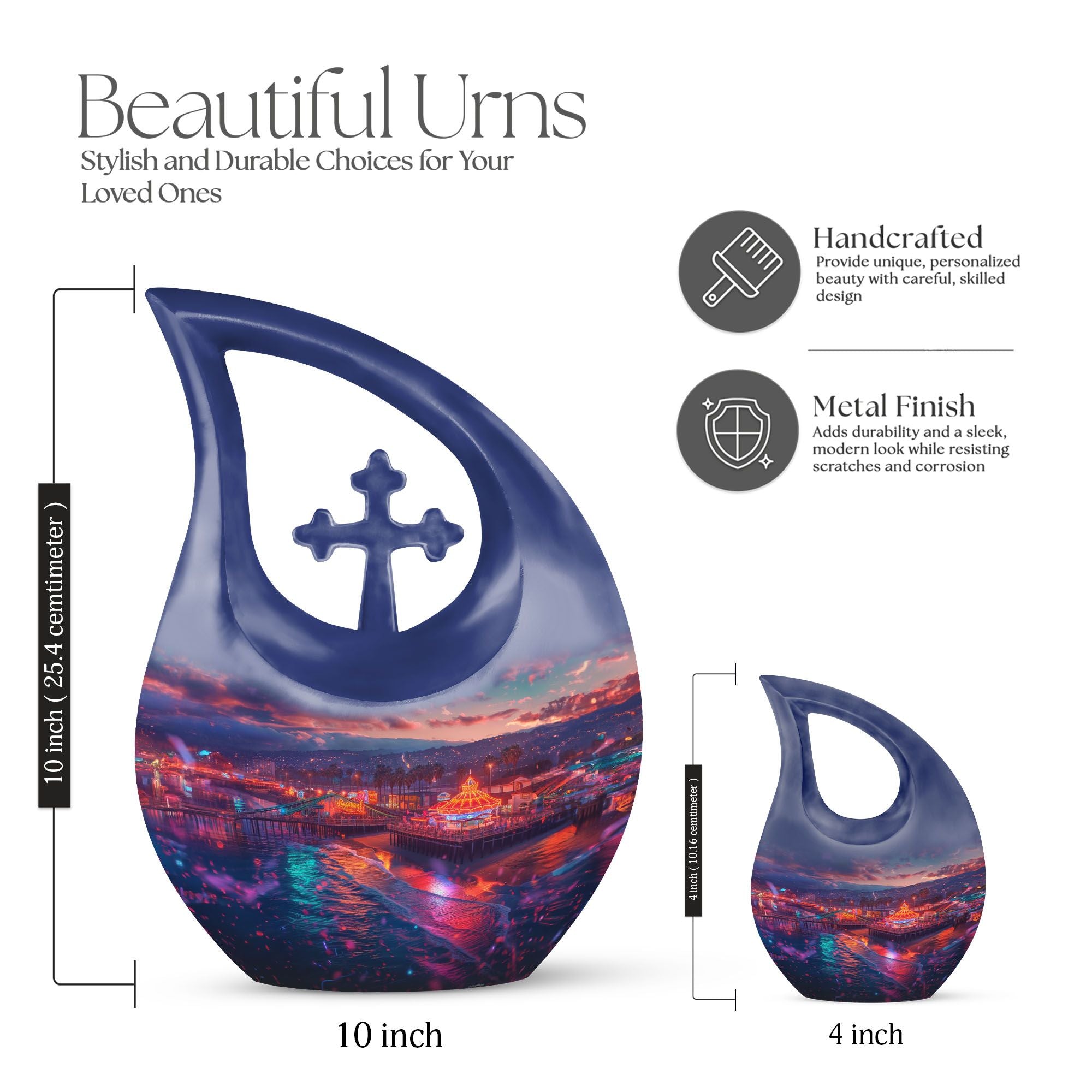 Discover a uniquely crafted item to commemorate your loved ones - an aluminium Beach Urn, an ideal solution in our collection of memorial urns suited for human ashes. This 200 cubic inch large urn, weighing mere 3.3 pounds, features an elegant Cross Drop motif, encapsulating a tranquil beach theme. Sized gracefully at 10 inches, our urn is more than an eternal resting piece; it's a personal tribute to a life well lived. The urn comes ready for customization, allowing for engraved names to make this item undoubtedly yours. Along with this urn, each package carries a velvet pouch, providing an exquisite containment for the ashes. Our Beach Urn offers a rare tribute to those cherished, encapsulating memories with an essence of serenity. Exploring keywords like Extra Large Urns, Cremation Monuments, Unique Urns For Dad, or Custom Made Urns For Ashes might lead you to discover more such personal mementos to celebrate your loved ones.