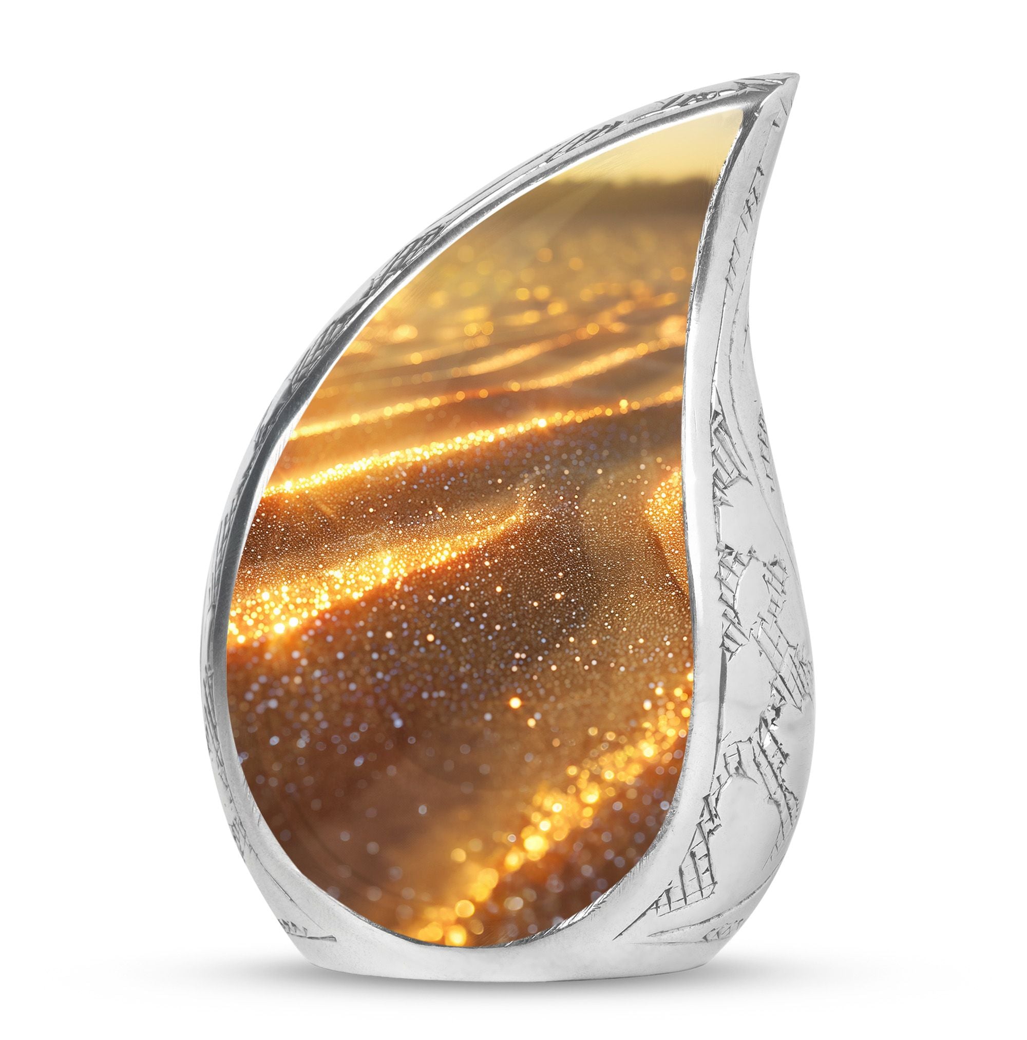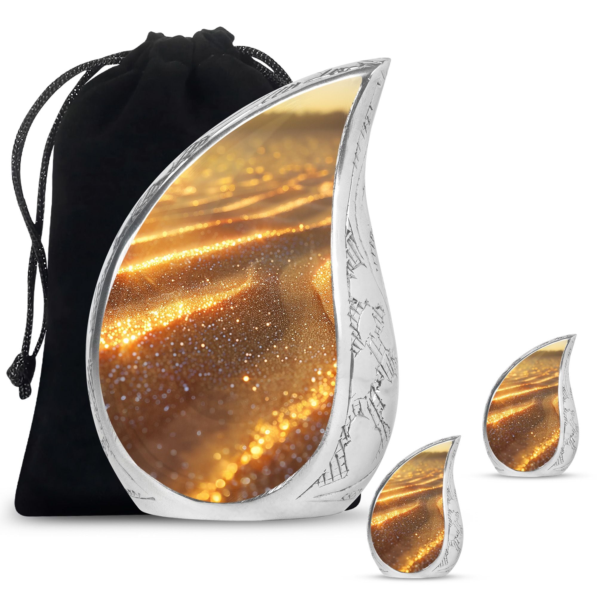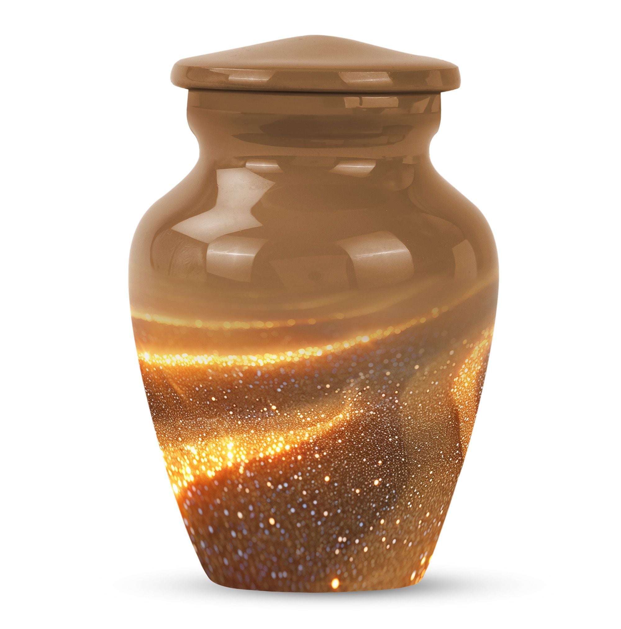 Crafted from durable aluminium, this urn features a soothing sand-inspired finish, reflecting peace and remembrance. Its versatile size makes it ideal as a mini urn for ashes adult male, small urns for ashes adult male, or small urns for human ashes adult male, while also serving as an elegant urns for cremation ashes female or urn for adult female. The secure screw-top lid ensures ashes remain safe, making it suitable for display or burial.