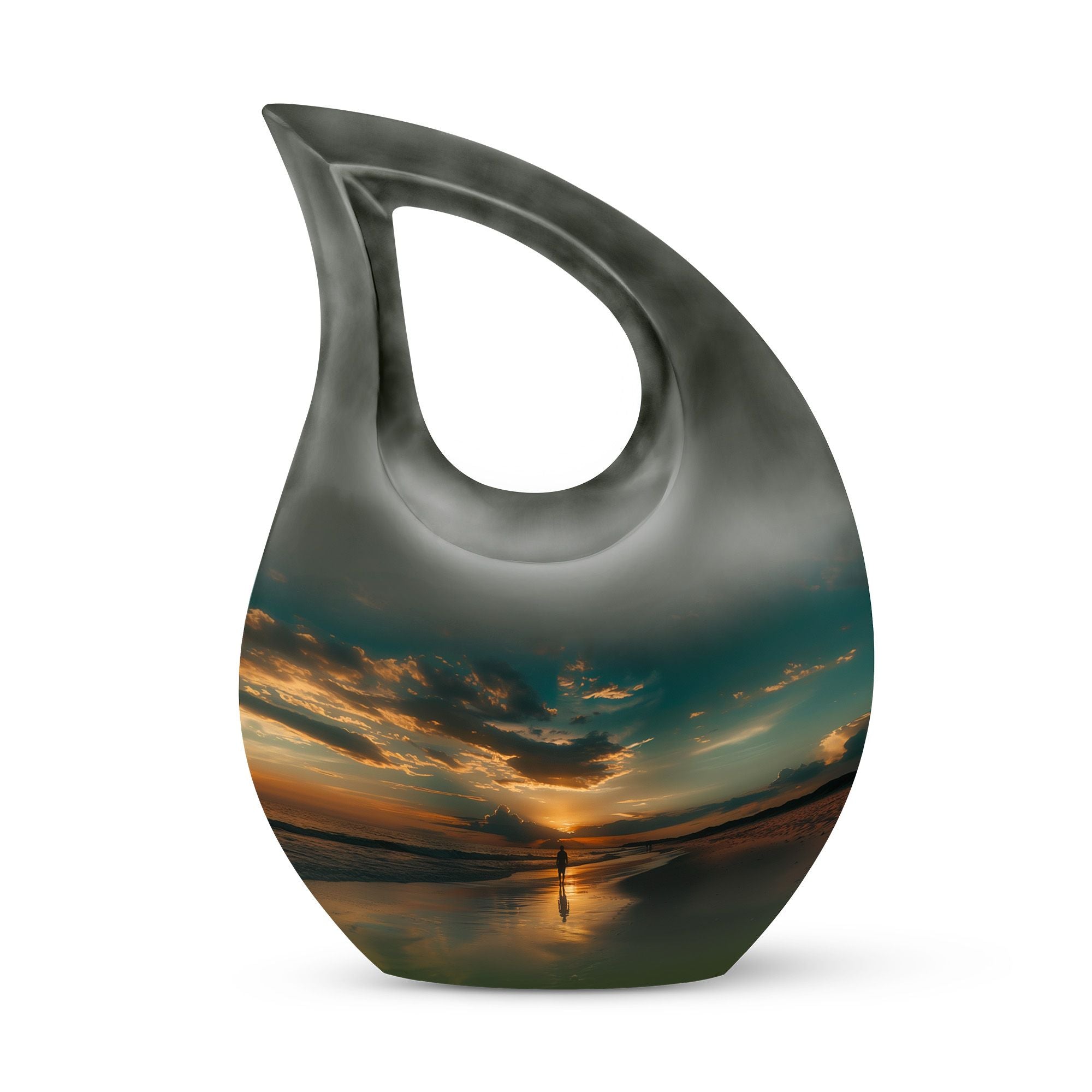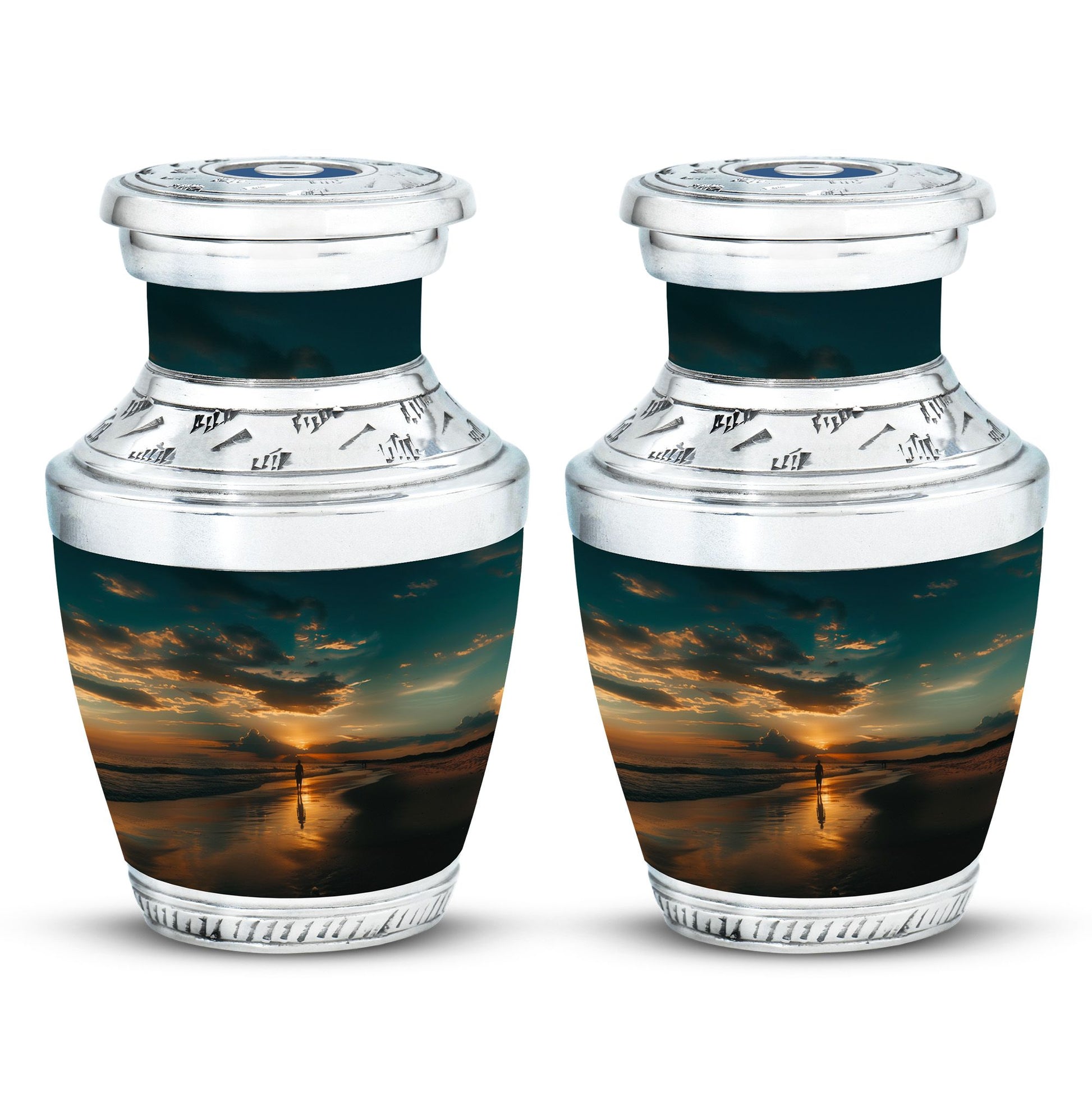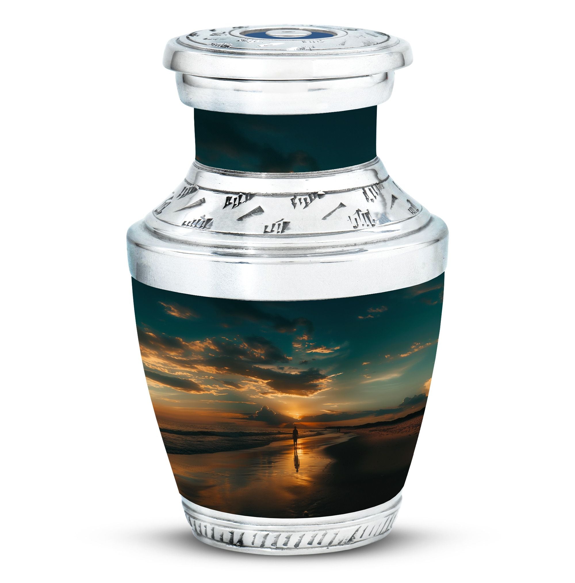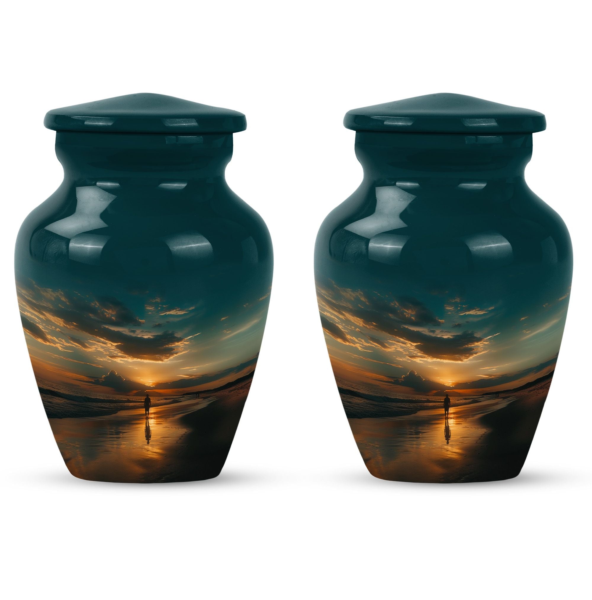 The Sunrise Beach Memorial Urn embodies love, peace, and eternal remembrance, making it a fitting choice for families seeking tiny urns for women & men or full-sized memorials for adults.