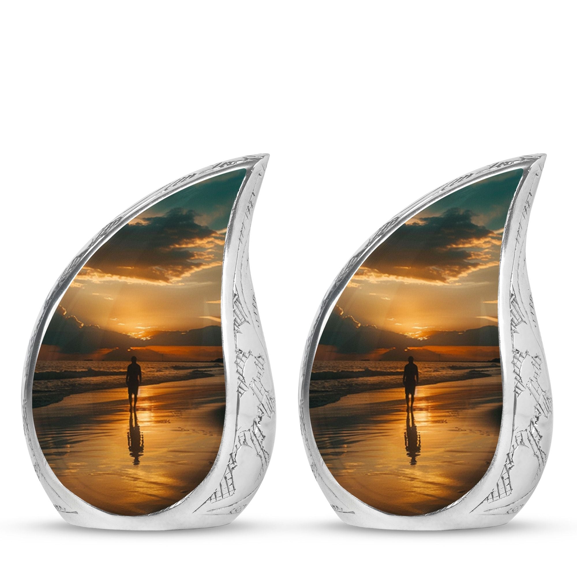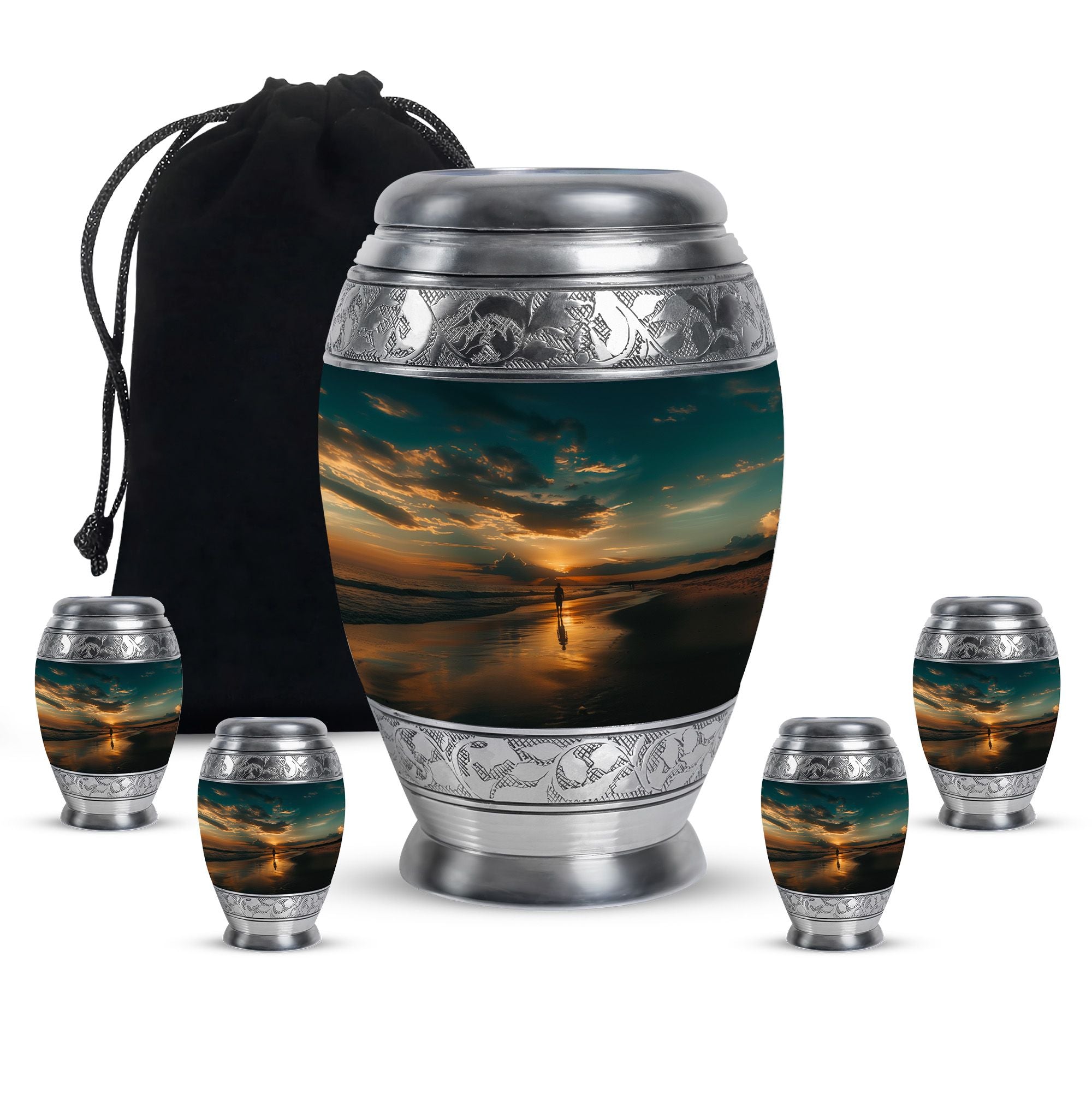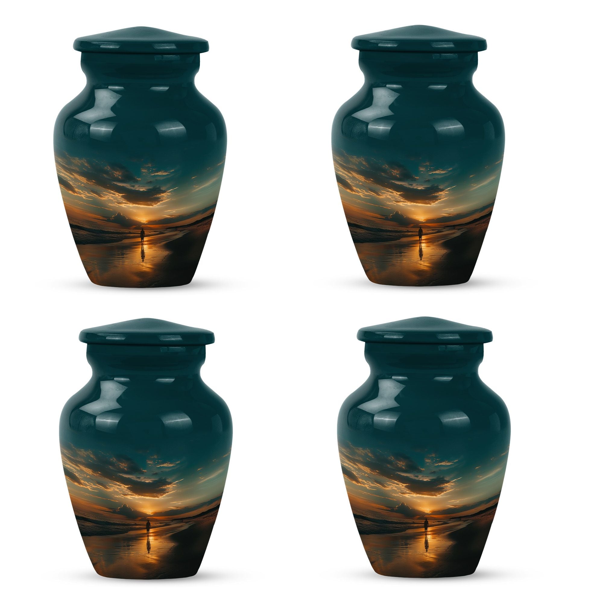 The Sunrise Beach Memorial Urn embodies love, peace, and eternal remembrance, making it a fitting choice for families seeking tiny urns for women & men or full-sized memorials for adults.