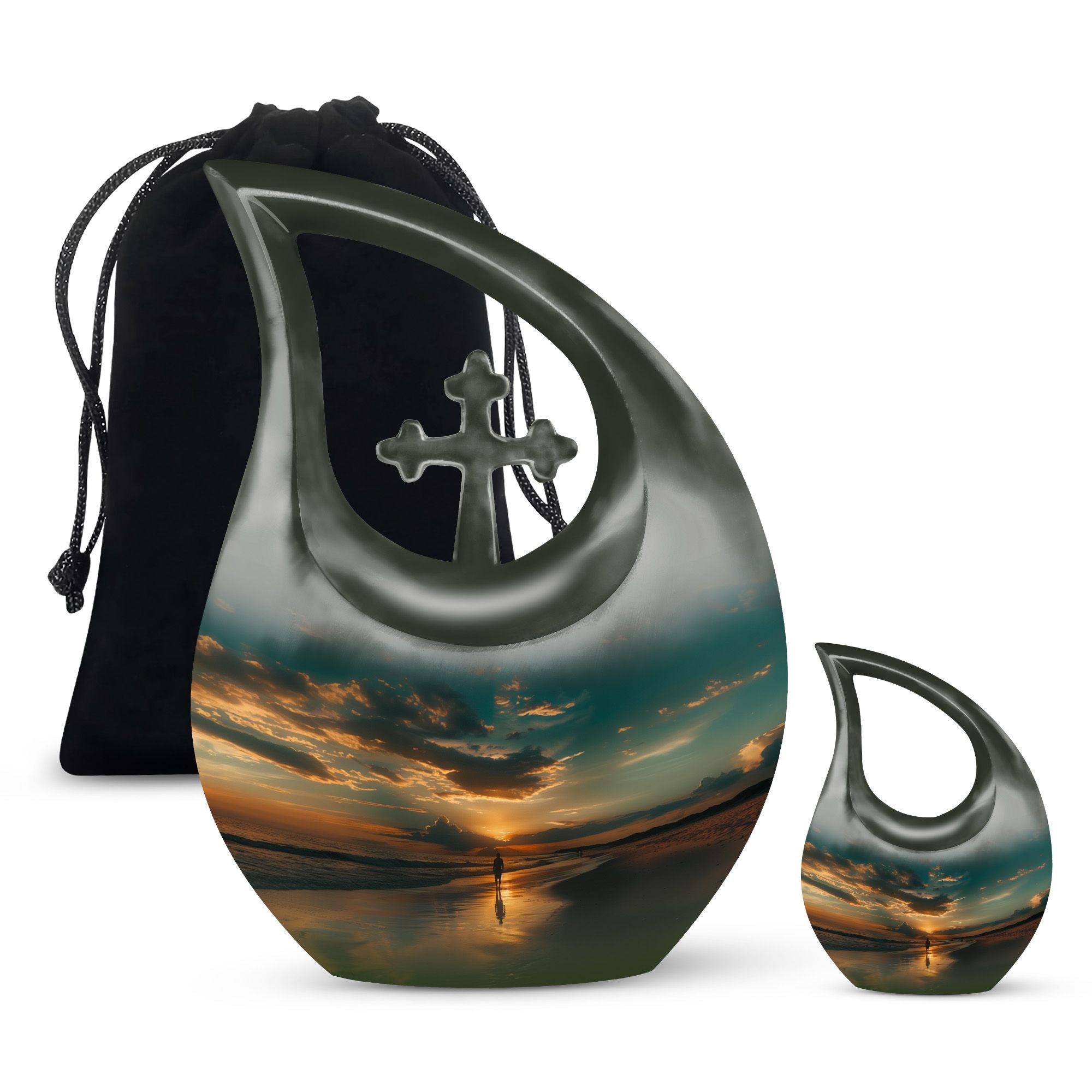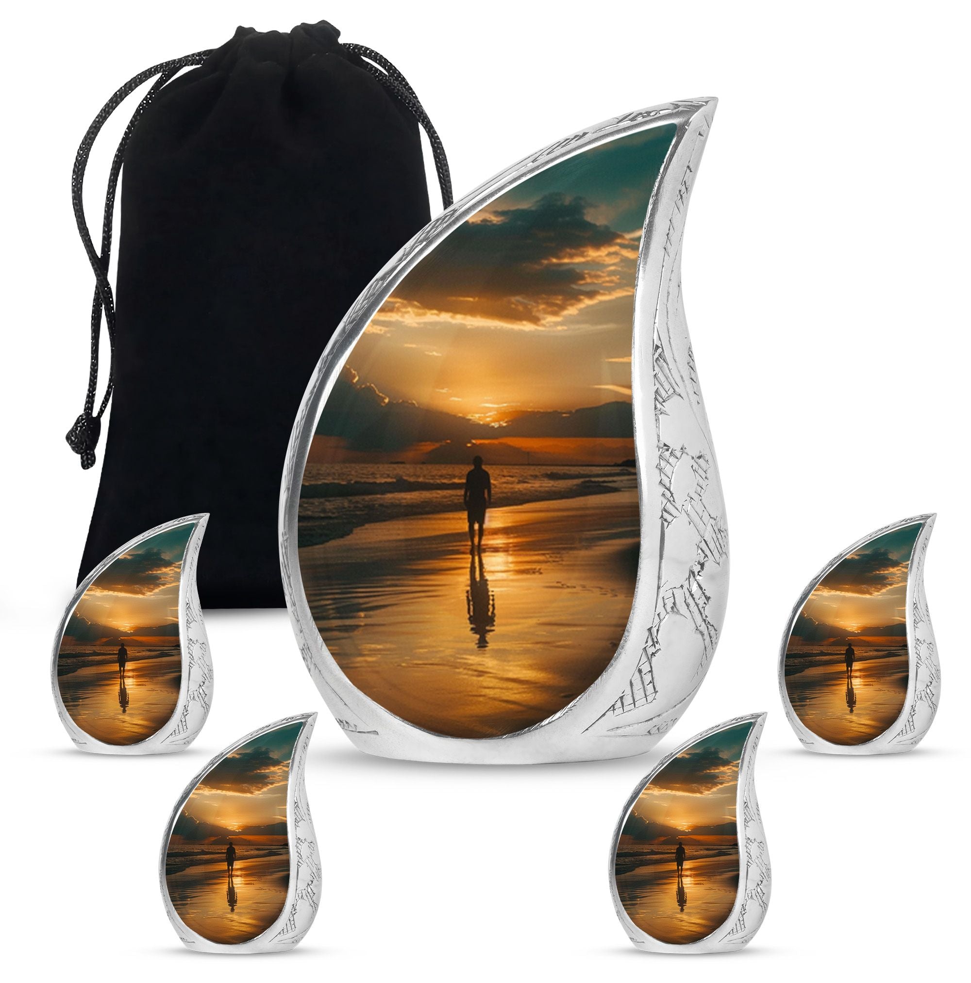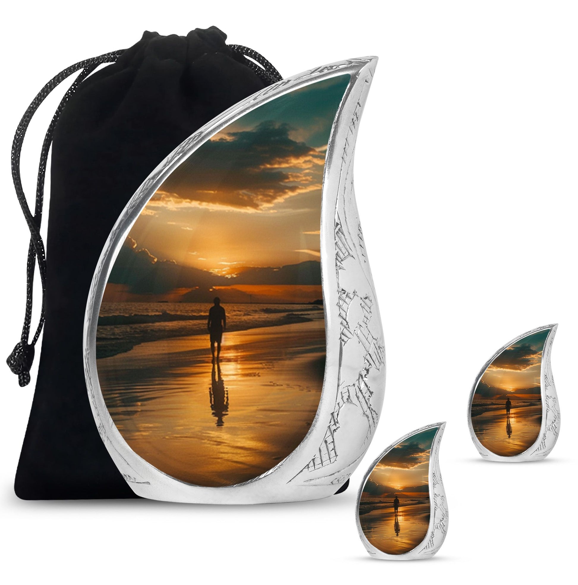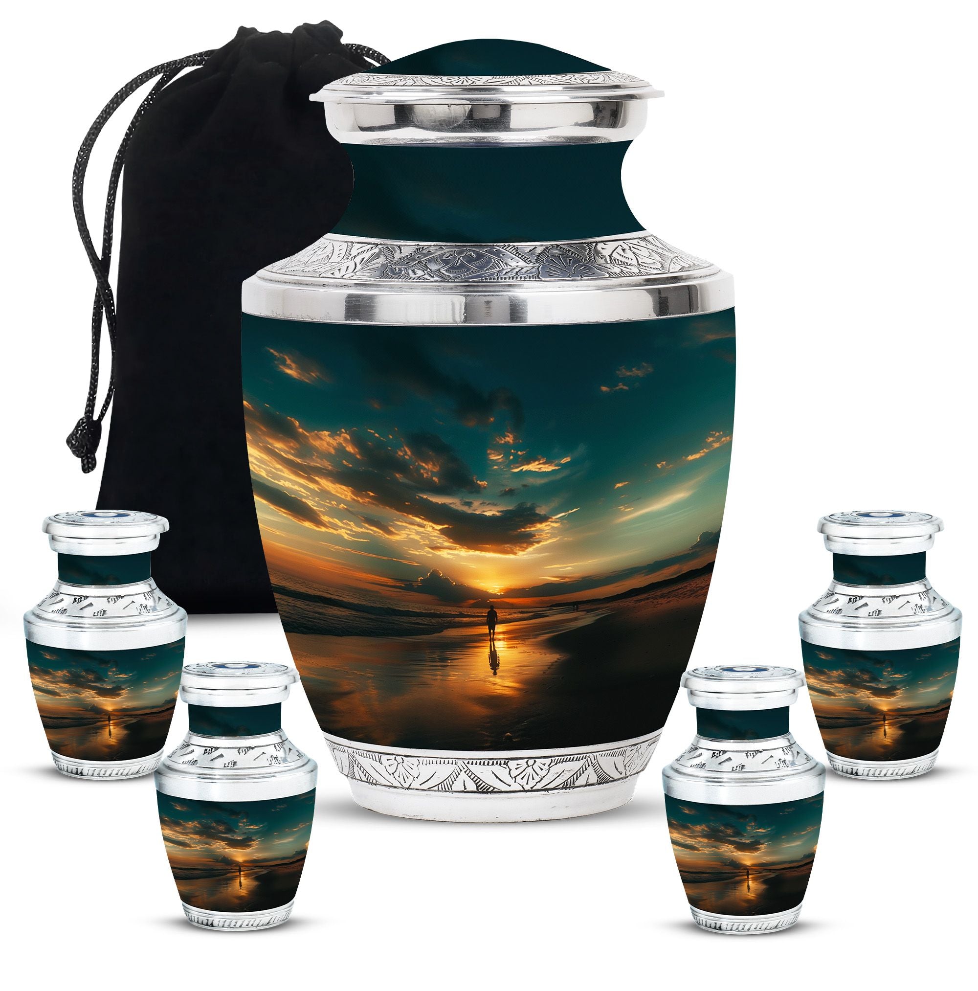 The Sunrise Beach Memorial Urn embodies love, peace, and eternal remembrance, making it a fitting choice for families seeking tiny urns for women & men or full-sized memorials for adults.