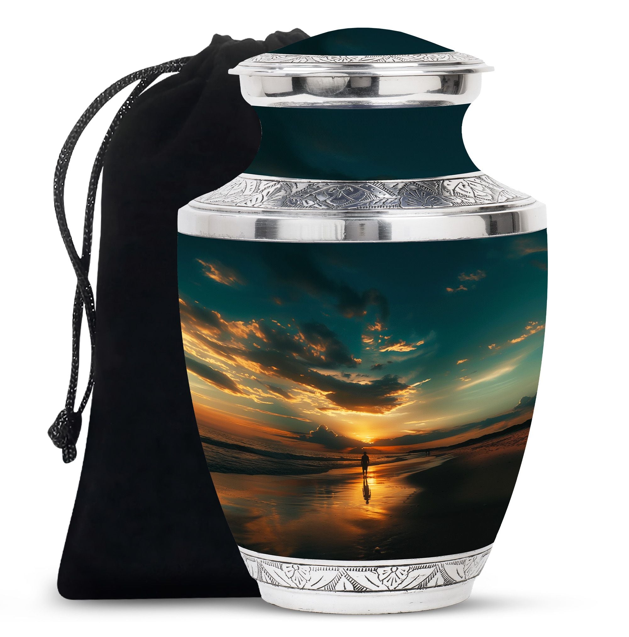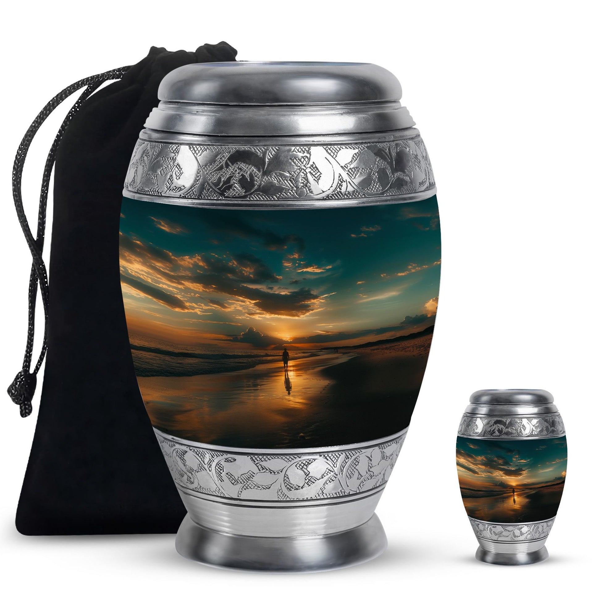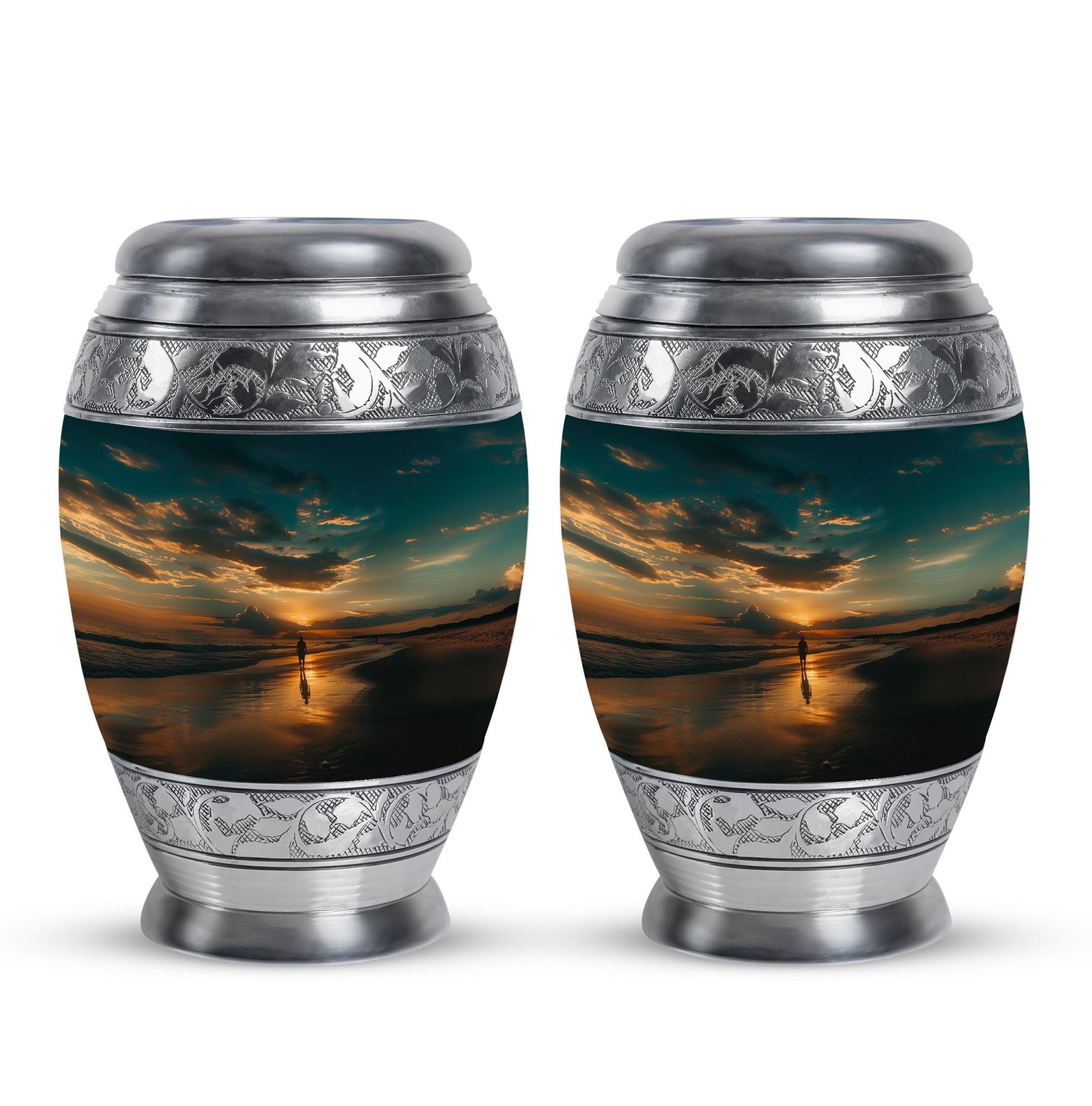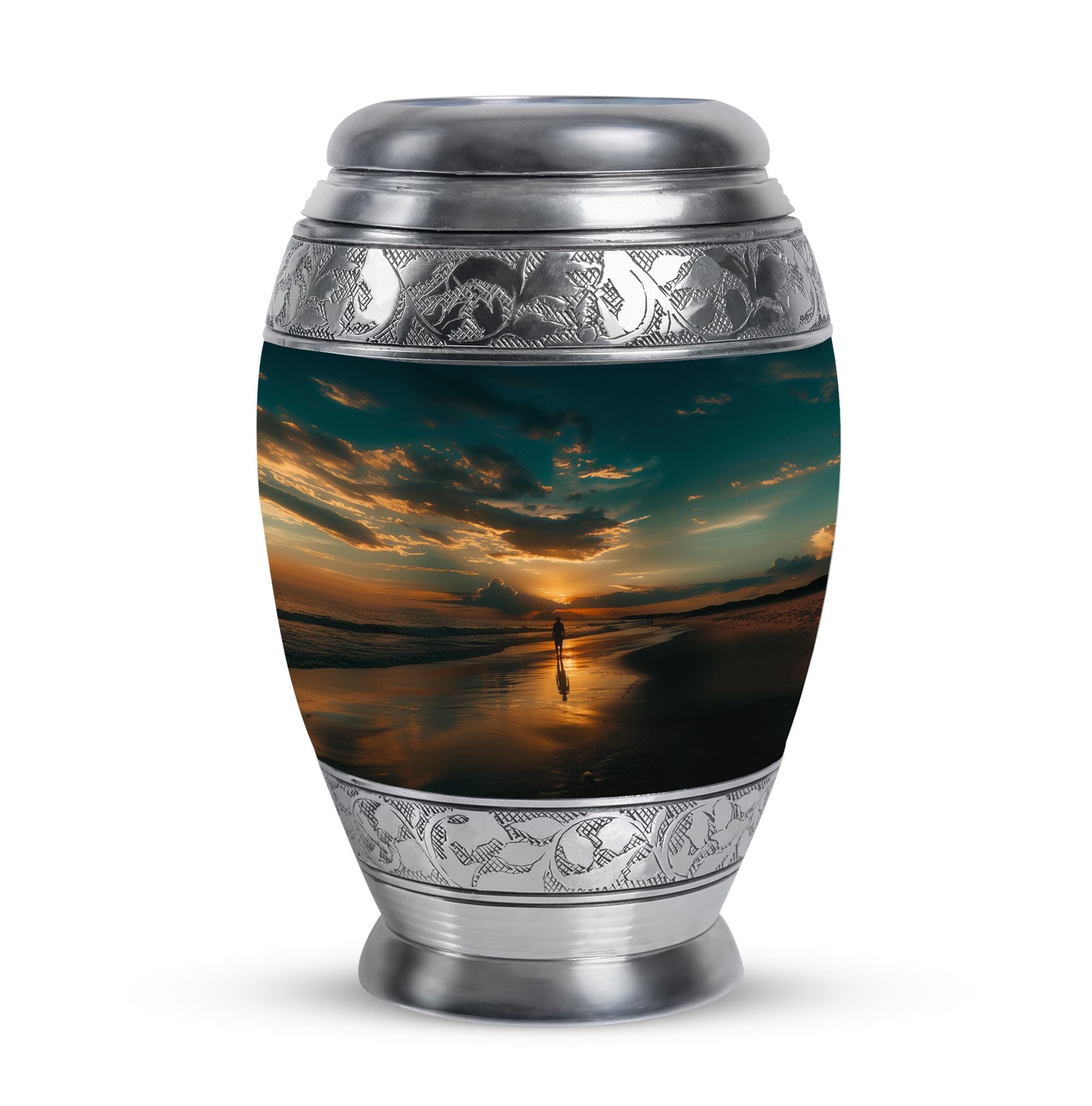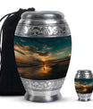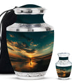Crafted from high-quality aluminium, this urn features a warm sunrise-inspired beach design, symbolizing hope and renewal. Its versatile design suits mens urns for human ashes, funeral urns men, and funeral urns women, while also serving as a beautiful cremation urn women or cremation urn men. The secure screw-top lid ensures ashes remain protected, making it a practical and meaningful choice for memorials at home or burial. Families searching for cremation urns women or a reliable burial urn men will find this piece a comforting tribute.