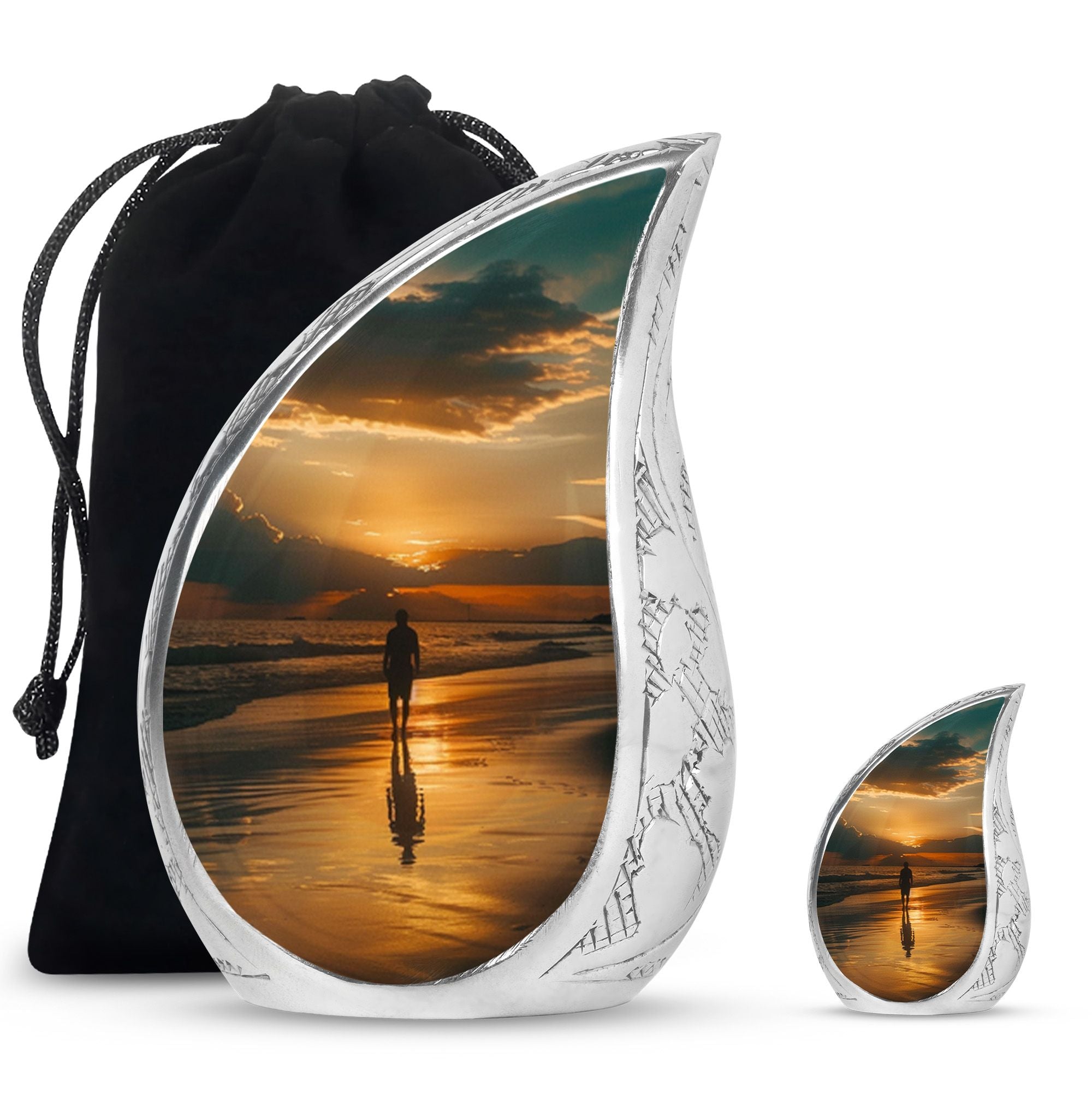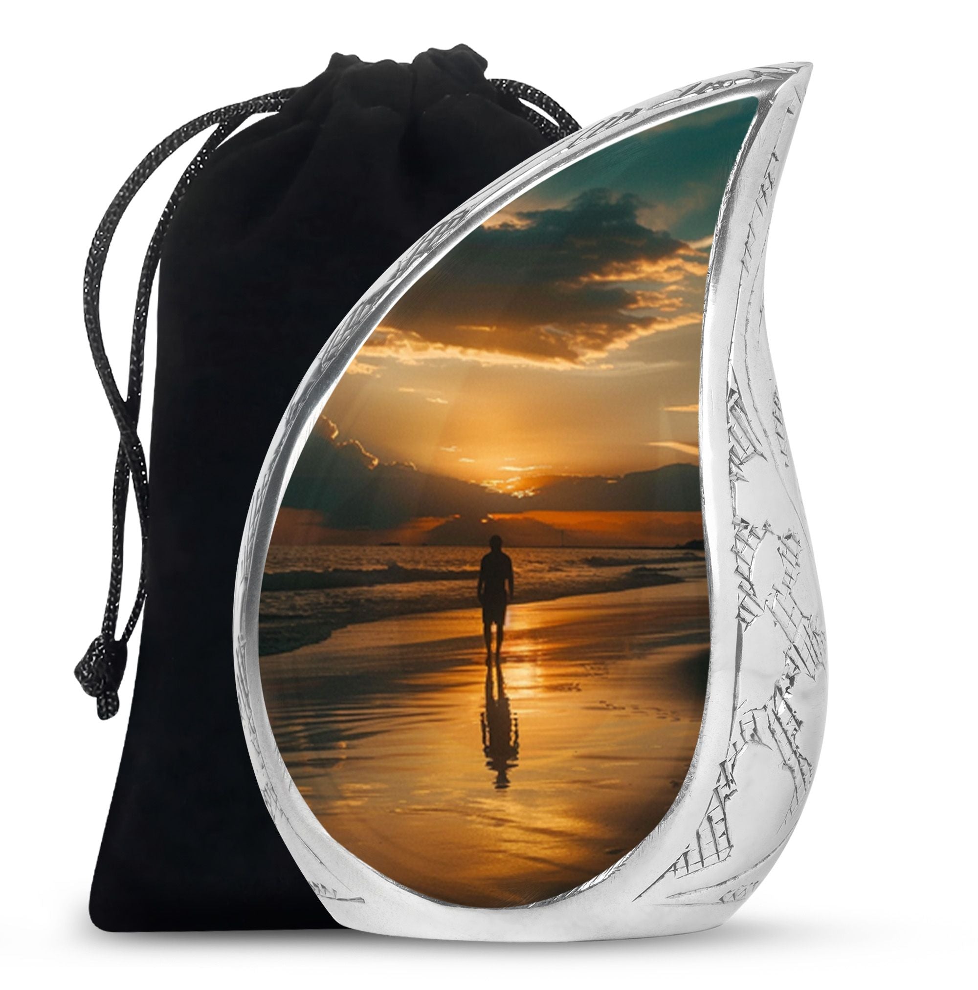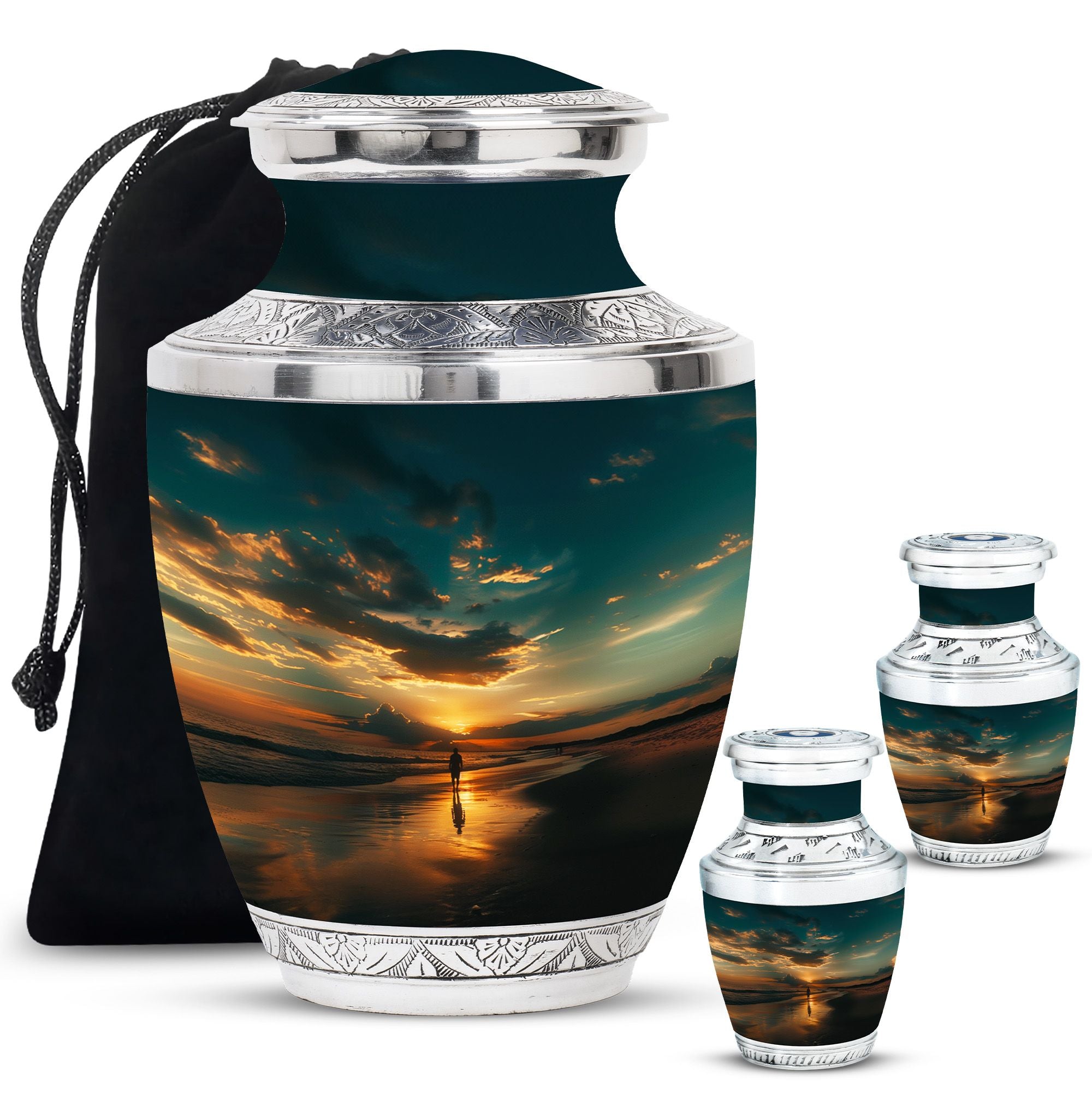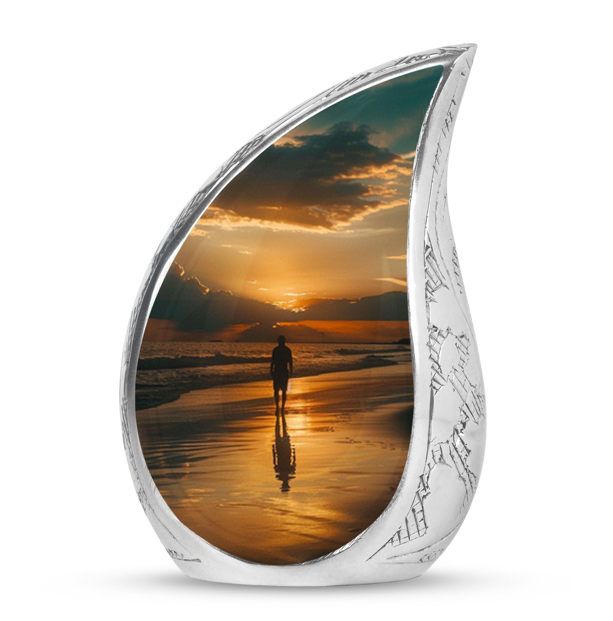 Crafted from high-quality aluminium, this urn features a warm sunrise-inspired beach design, symbolizing hope and renewal. Its versatile design suits mens urns for human ashes, funeral urns men, and funeral urns women, while also serving as a beautiful cremation urn women or cremation urn men. The secure screw-top lid ensures ashes remain protected, making it a practical and meaningful choice for memorials at home or burial. Families searching for cremation urns women or a reliable burial urn men will find this piece a comforting tribute.