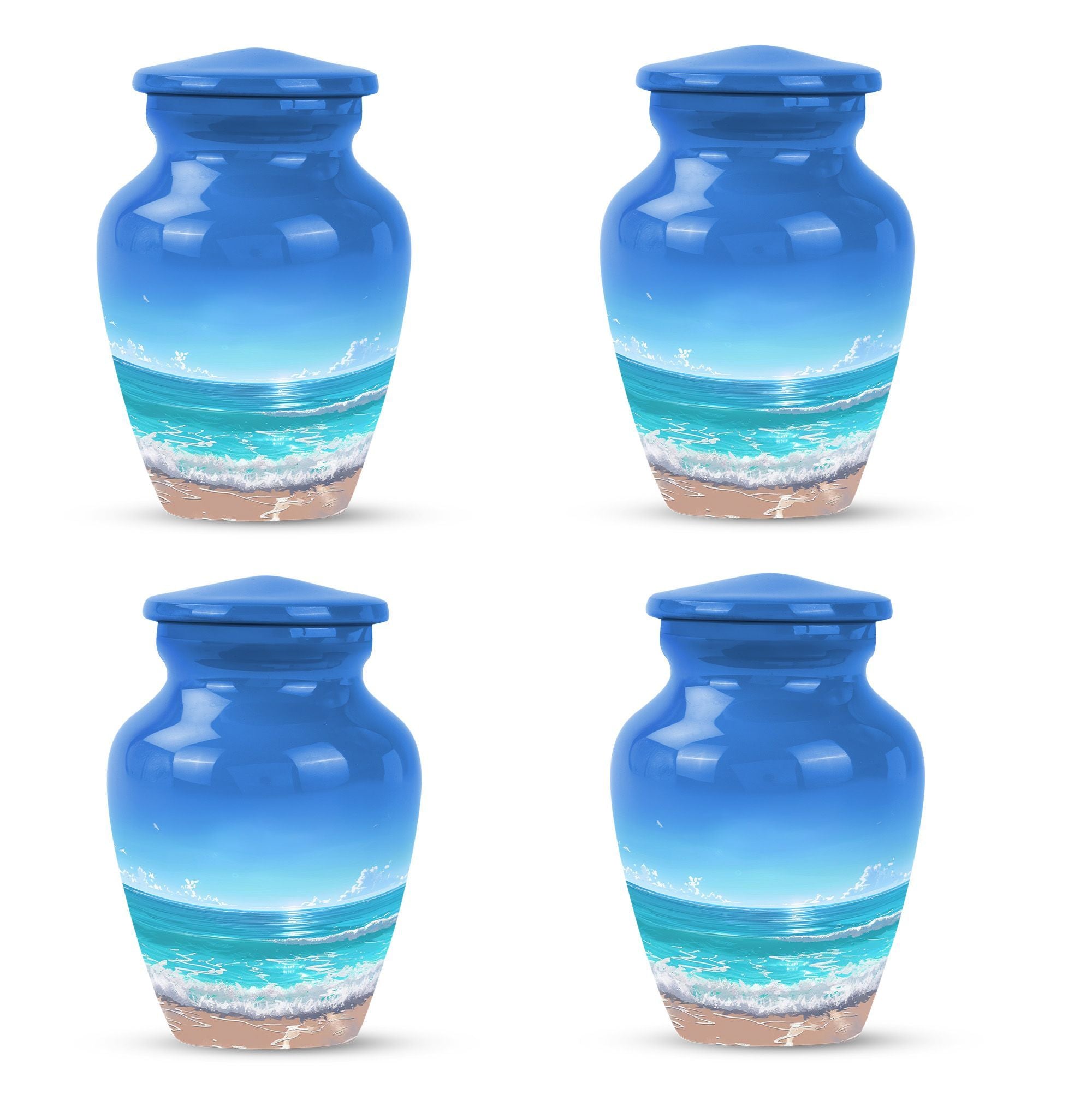 Unveiling the classic Beach Urn, carefully crafted for keeping the precious ashes of loved ones. Embodying an ageless appeal with its elegant 'Flowers' theme and constructed with high-quality Aluminium, this 10-inch urn ensures a long-lasting tribute to the departed soul. This Burial Urn for Ashes Adult, weighing just 3.3 pounds, effortlessly complements the brushed and polished finish of the urn. Fitting up to 200 cubic inches, it is designed for adults, remaining a visible reminder of the memories shared. For a more heartfelt touch, you can personalize this urn with engraved names. Furthermore, it comes with a graceful velvet pouch which aids in the safekeeping of the ashes, making the whole process of containment manageable. Our beach urn notably stands out as a unique memorial urn, resonating significantly with the bereaved. Witness a harmonious blend of style and sentiment in this cremation urn, a timeless companion in your journey of remembrance.
