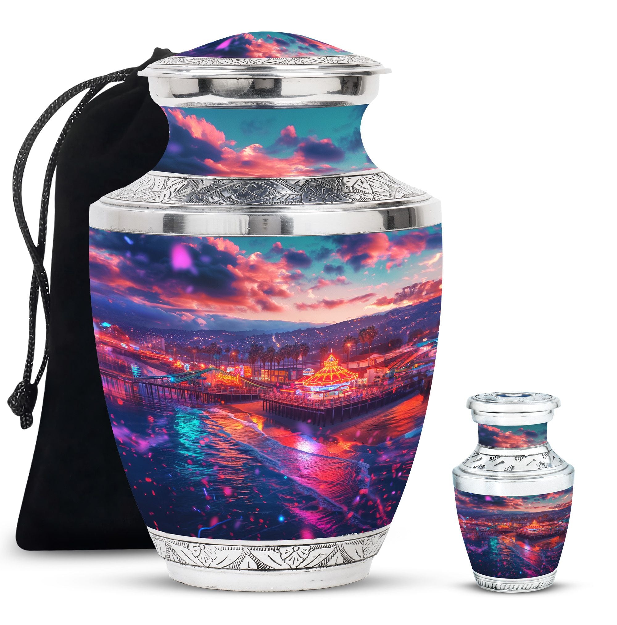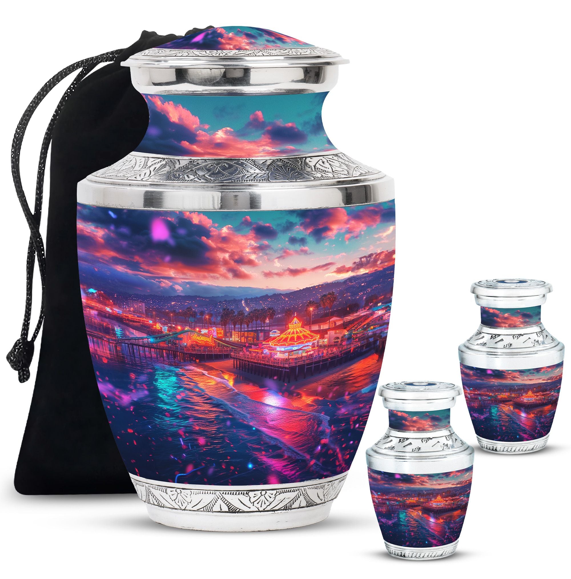 The calming waves and serene beauty of the ocean bring peace to many hearts. This beach cremation urn keepsake set offers families a meaningful way to honor loved ones, whether you need a large urn for ashes adult male or a large urn for ashes for women. The coastal theme symbolizes tranquility and eternal rest, making it a fitting tribute.