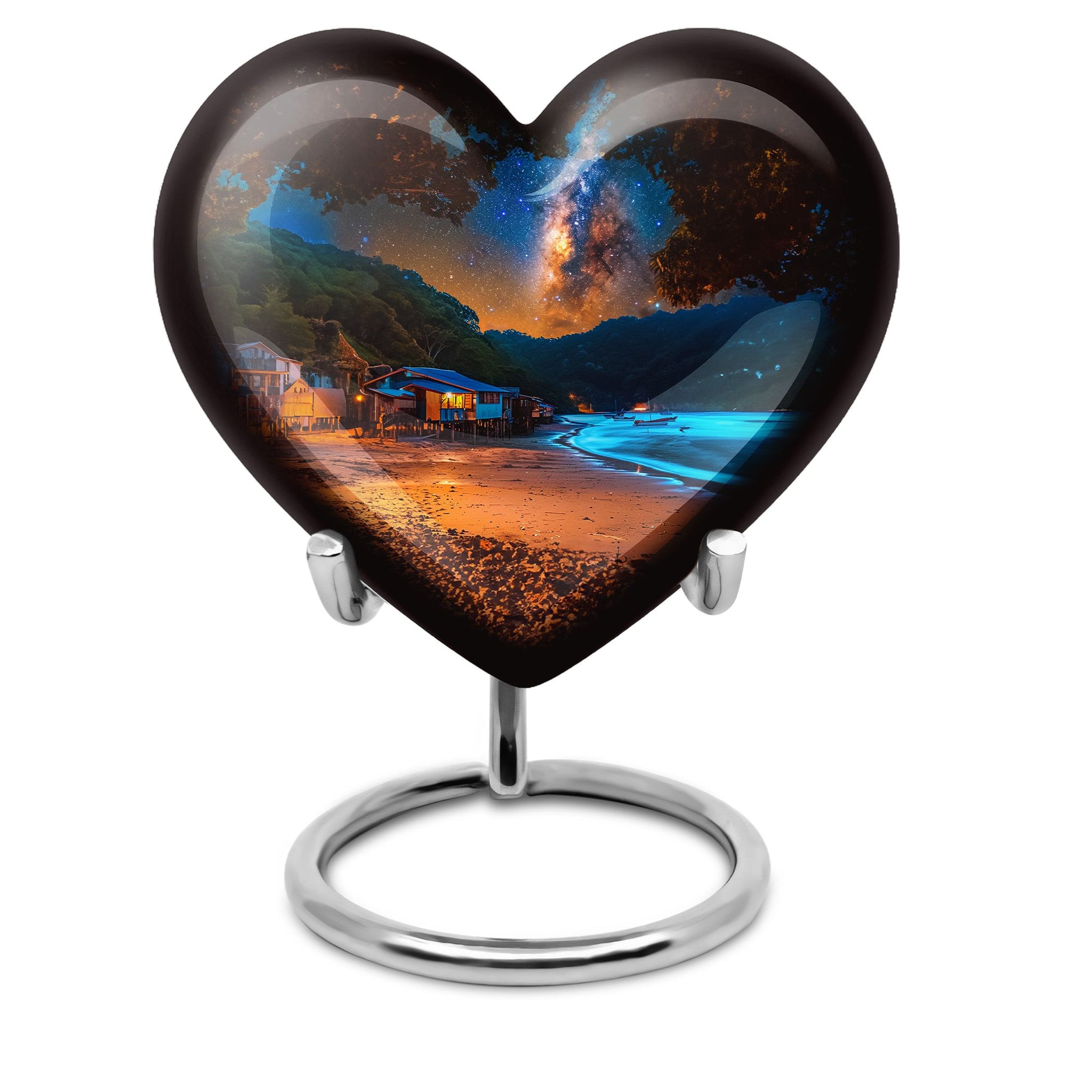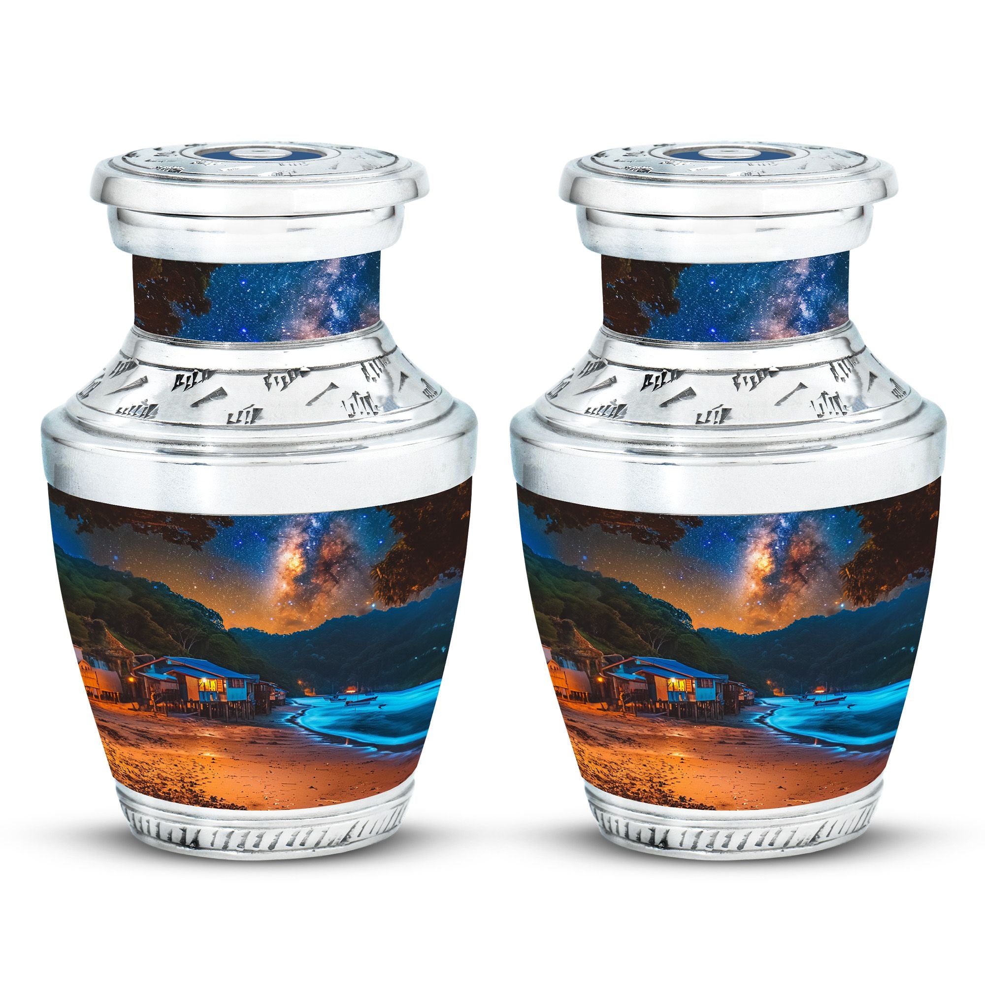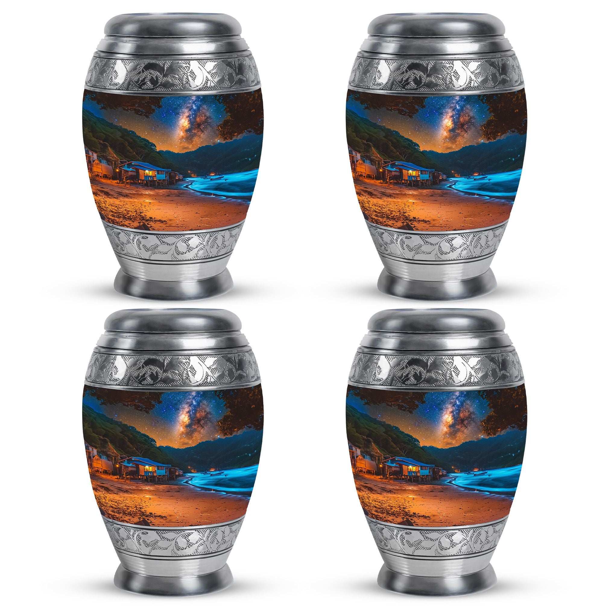 Crafted with care from durable aluminum, this cremation urn large is built to stand the test of time. Its starry beach motif blends calming colors and elegant artistry, creating a large decorative urn that is as beautiful as it is functional. Designed for adult large urns, it ensures a secure and lasting resting place for your loved one. Families often choose it when searching for cremation urns large adult, funeral urns for human ashes adult, or large funeral urn options.